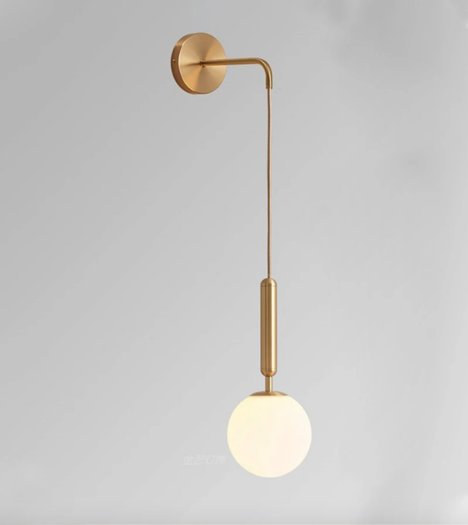 A twist to the classic milky glass ball inspired by mid-century designs in Europe, this dangling sconce with brushed brass fixture adds a modern touch to your space. Whether it is used as a bedside lamp, or a living room, bathroom or dining room sconce, this decorative wall light will light up your room with elegance.