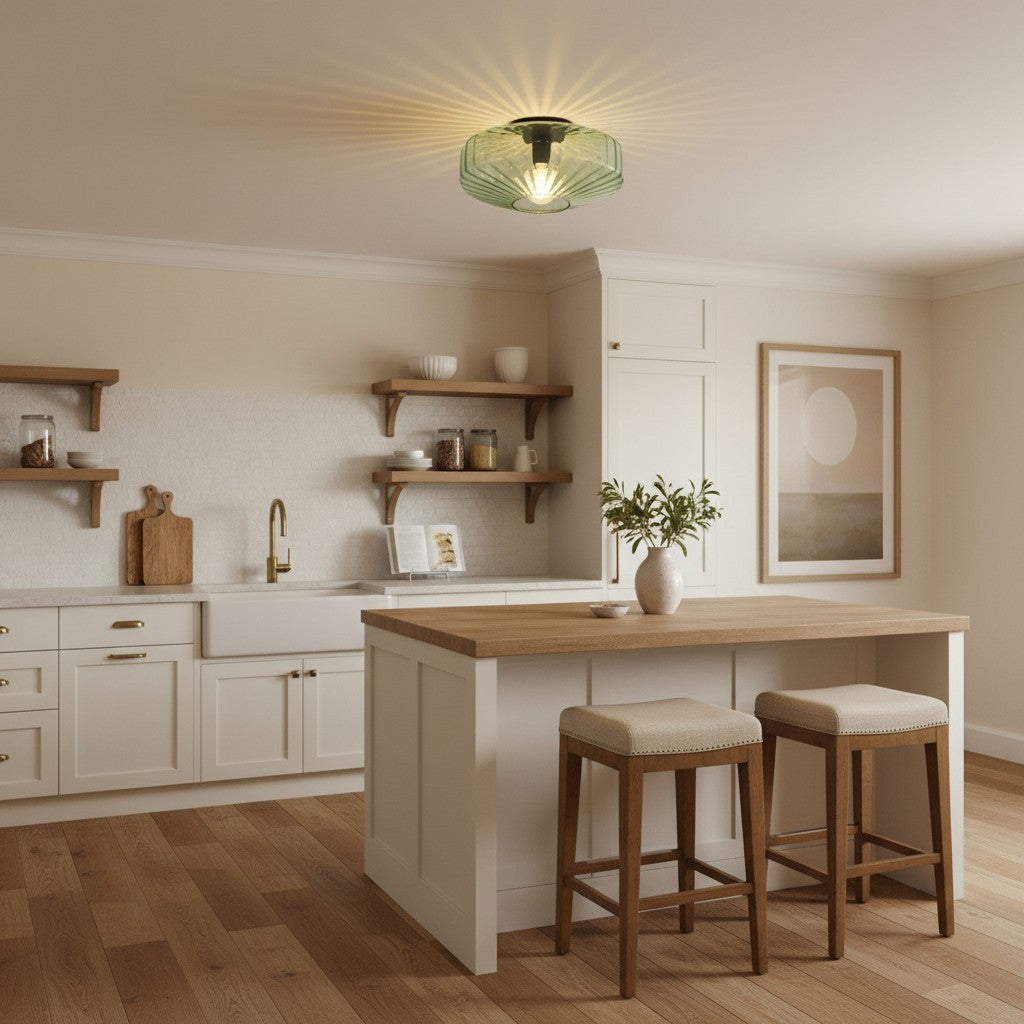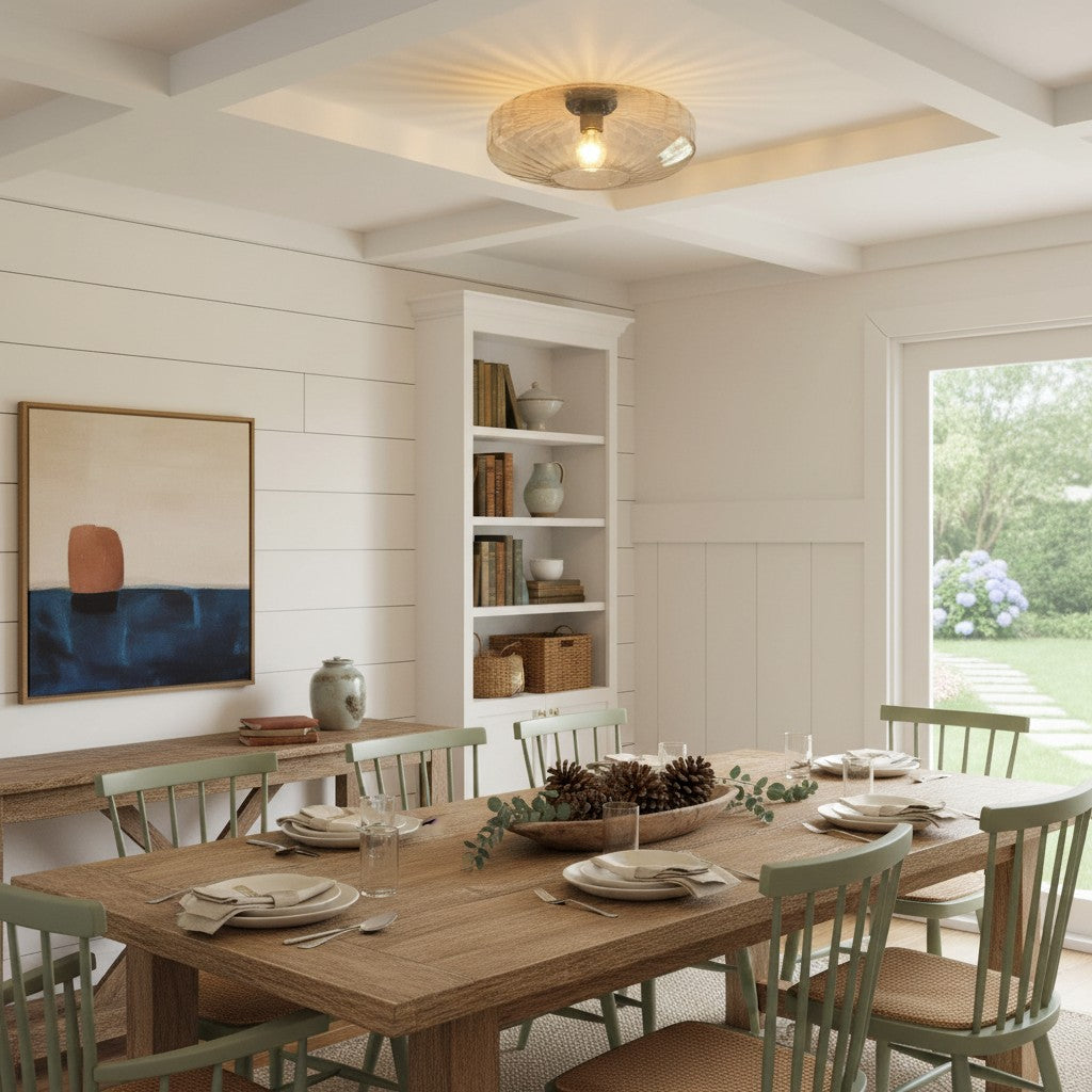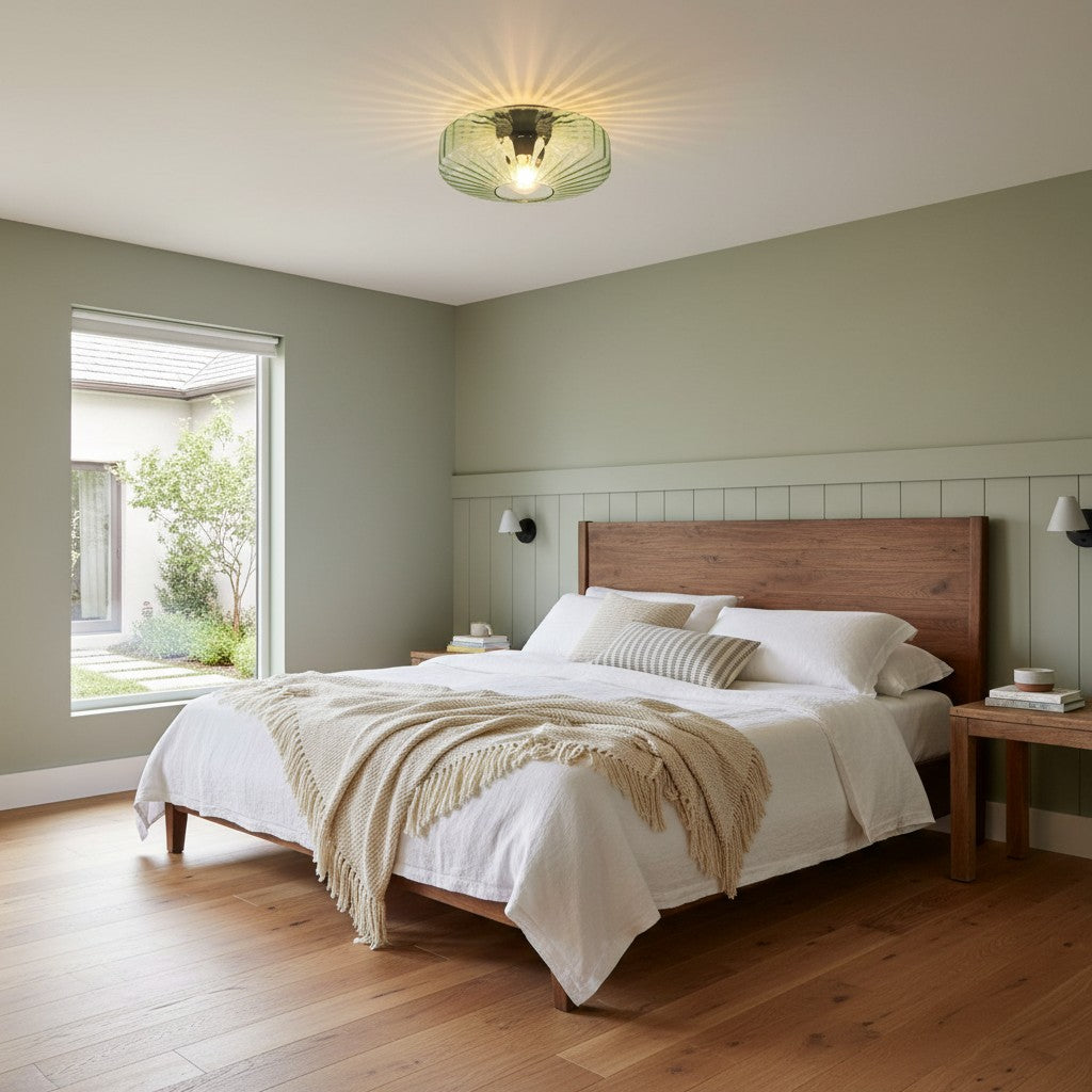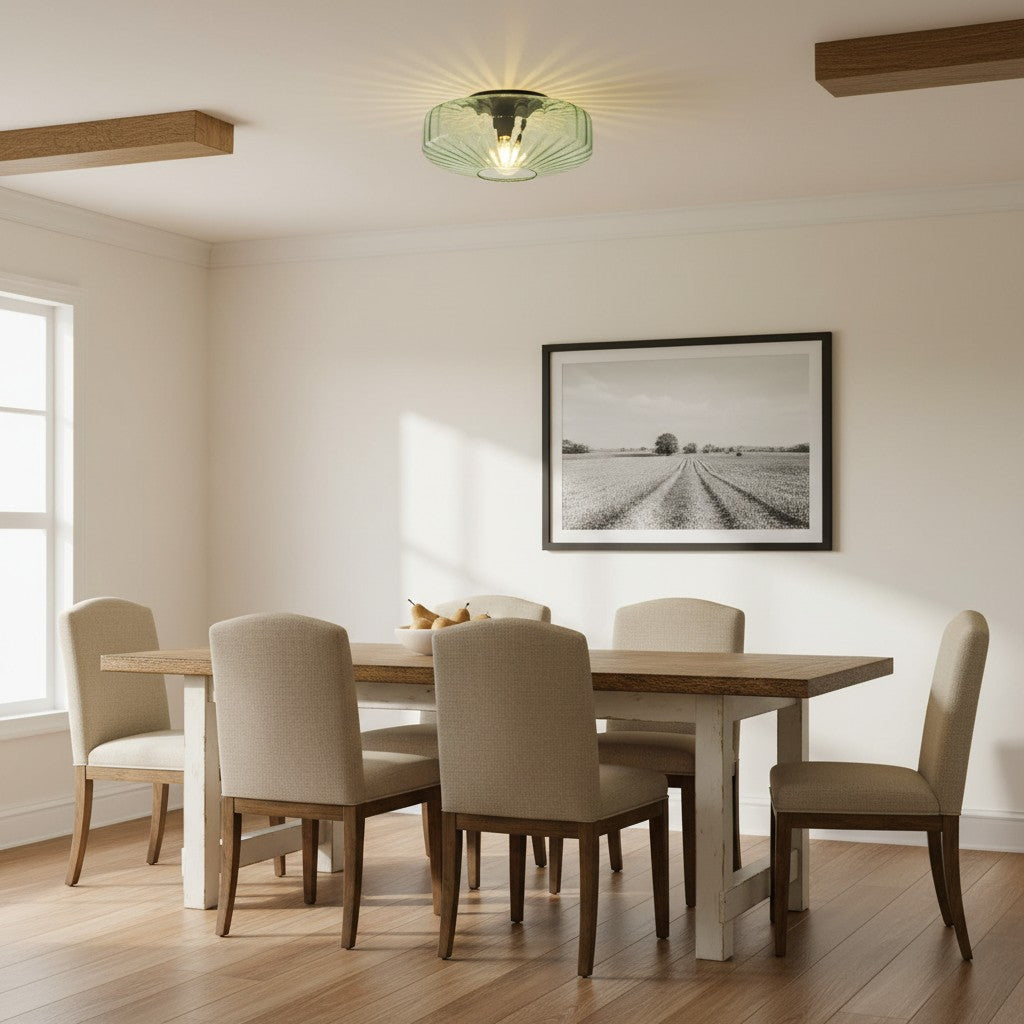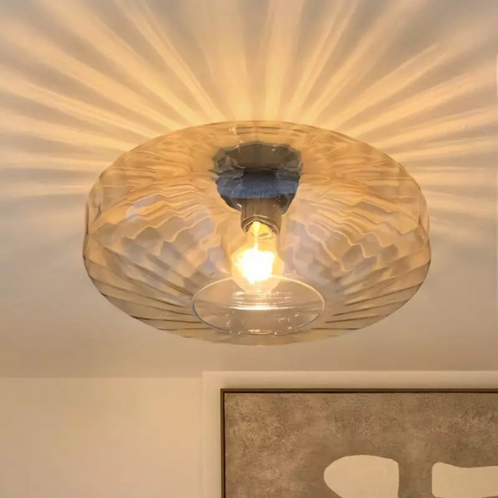 Mid-Century Modern Drum Shade Water Ripple Glass Ceiling Light
