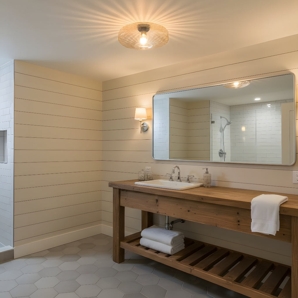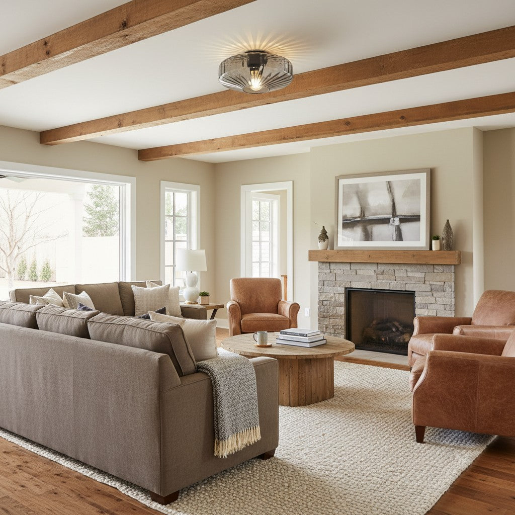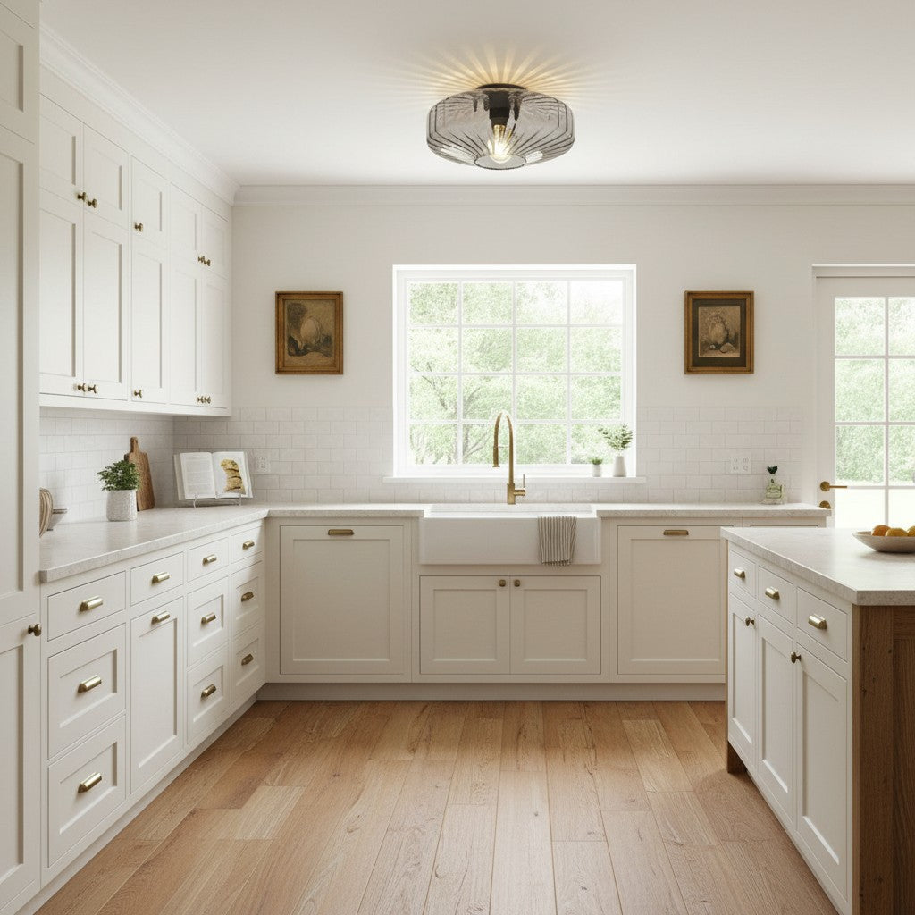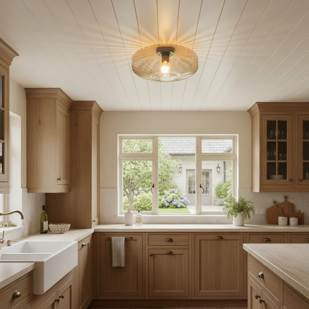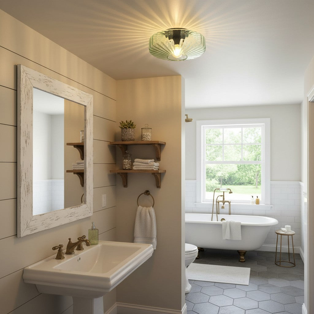 Mid-Century Modern Drum Shade Water Ripple Glass Ceiling Light