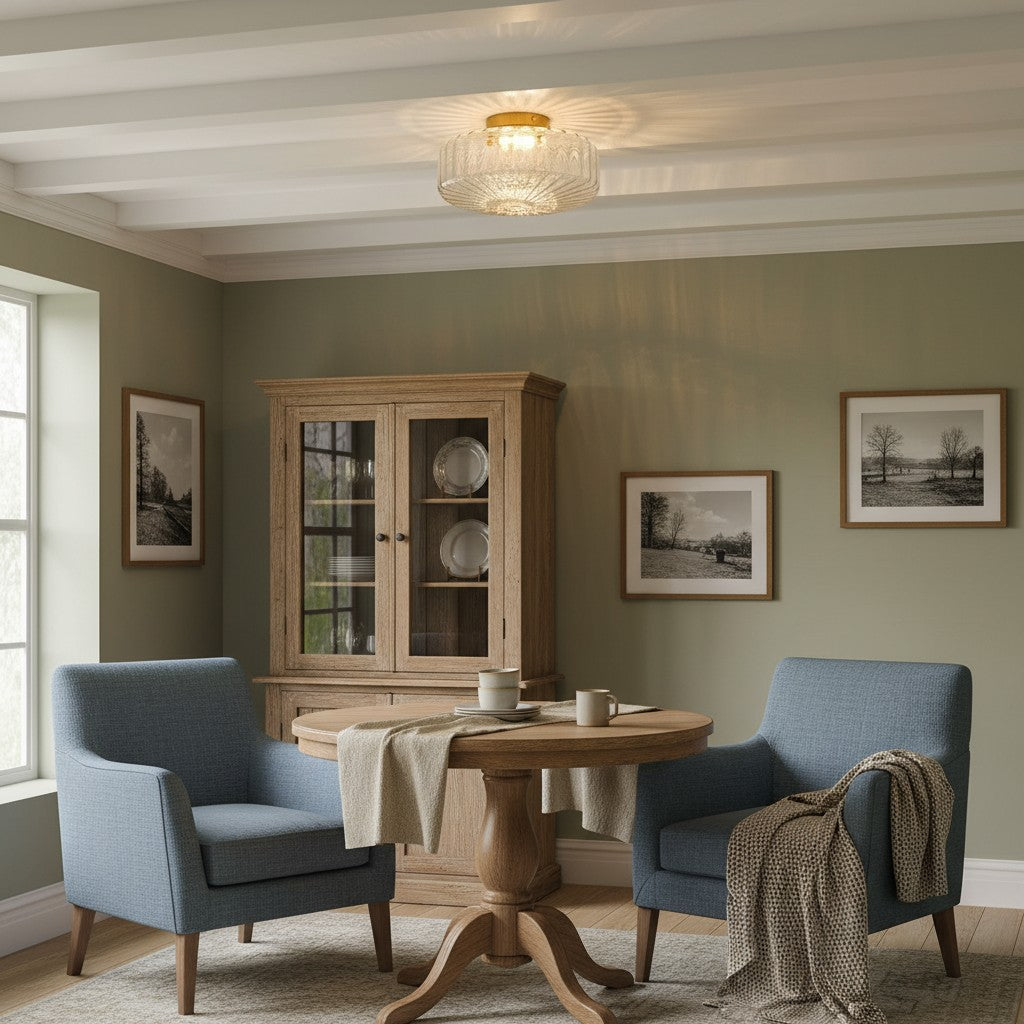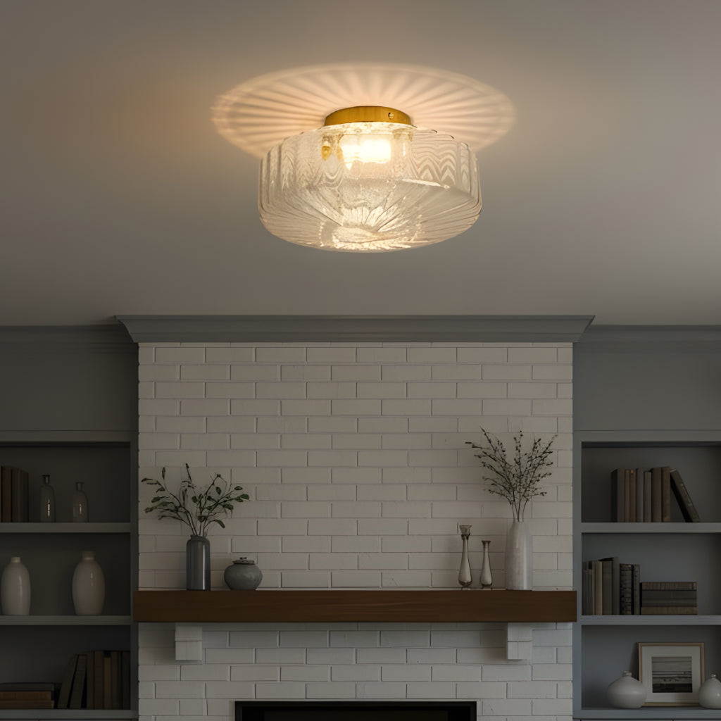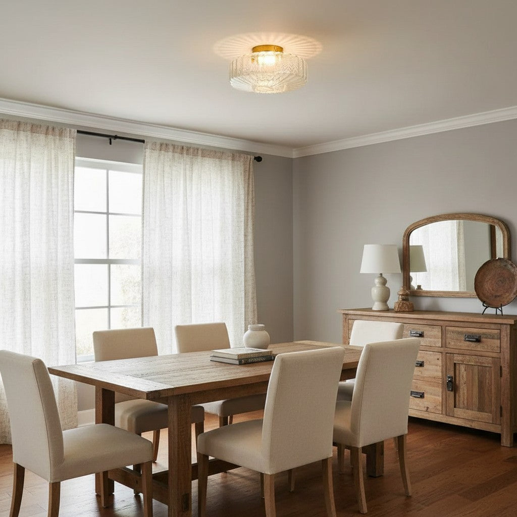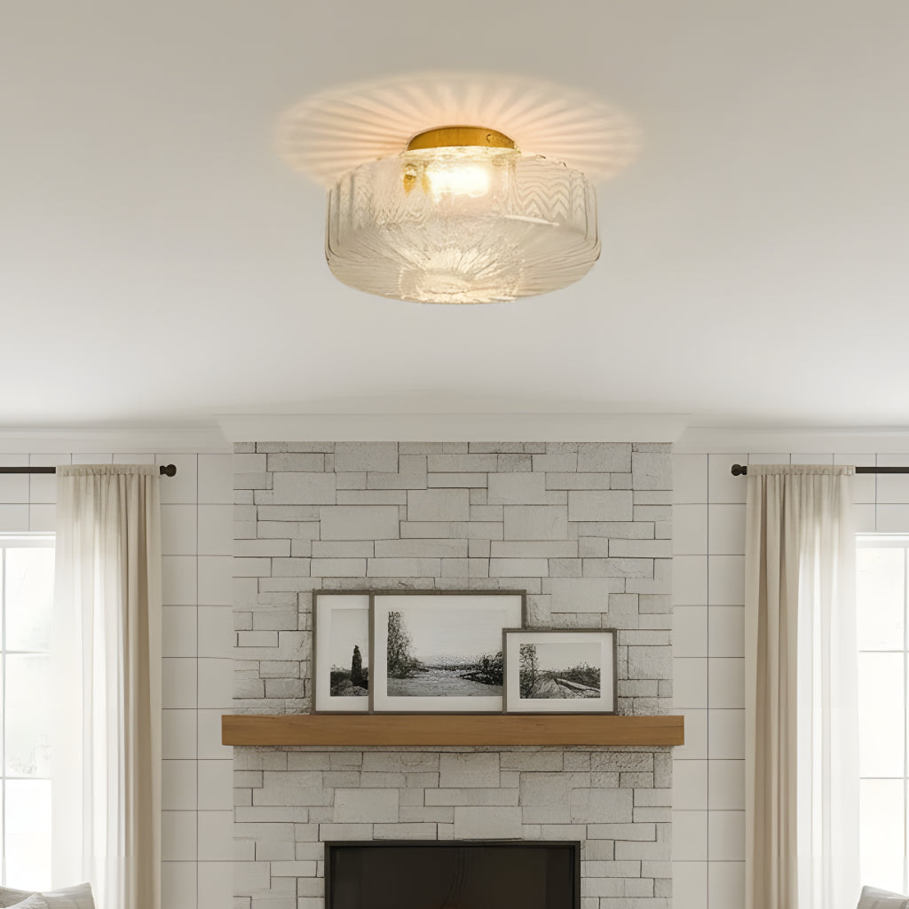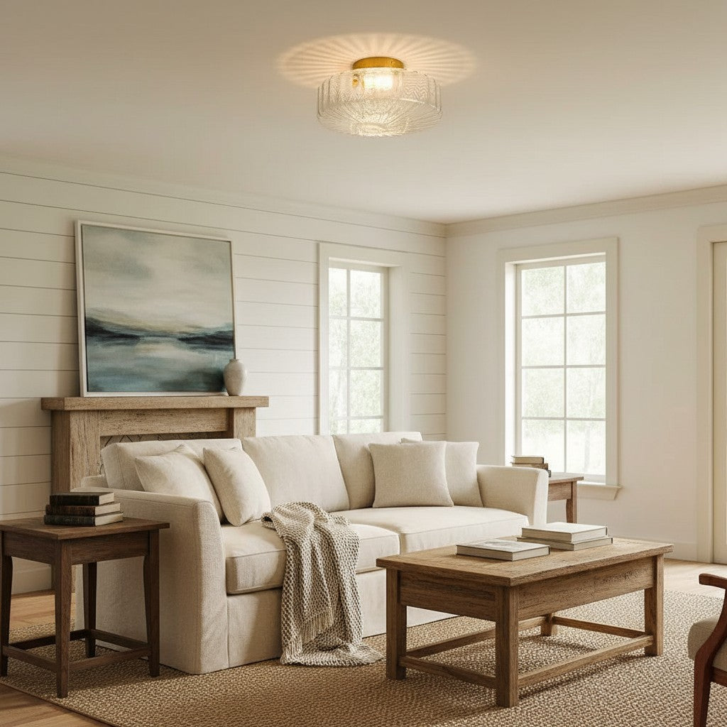 Modern Farmhouse Ribbed Glass Brass Flush Mount Ceiling Light