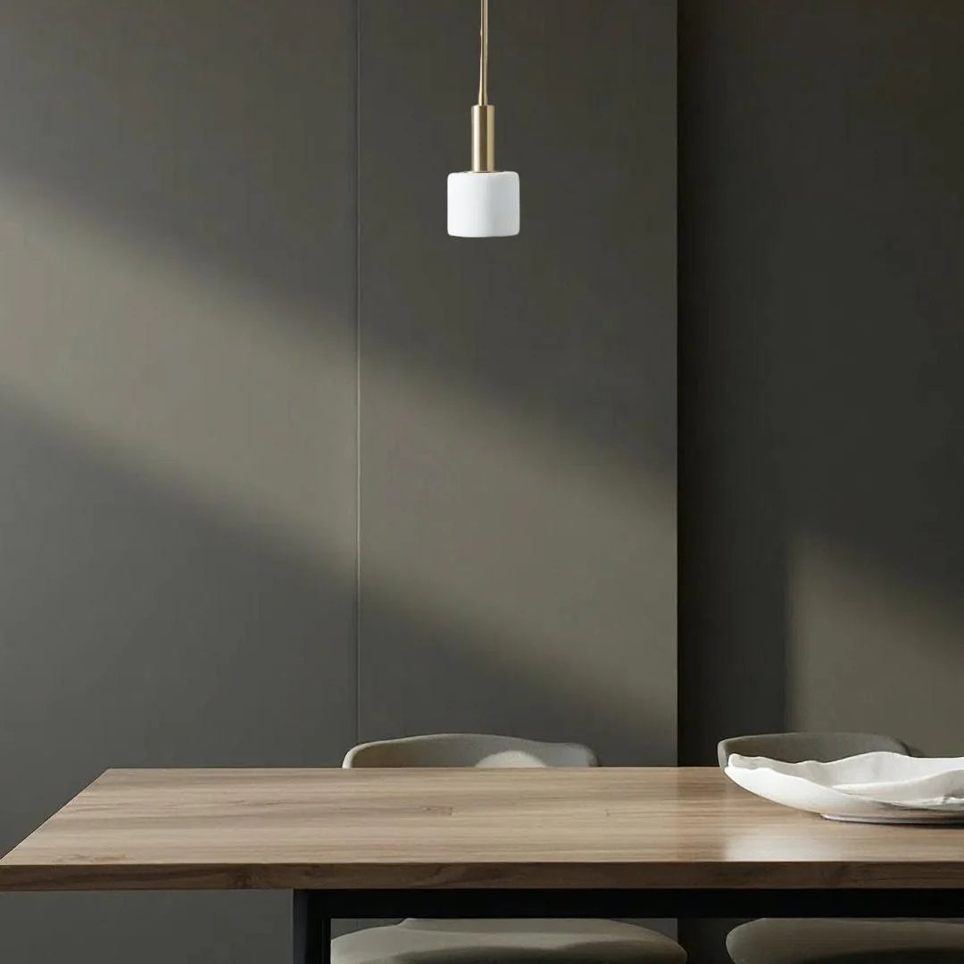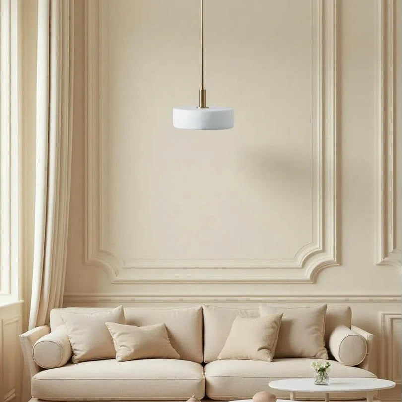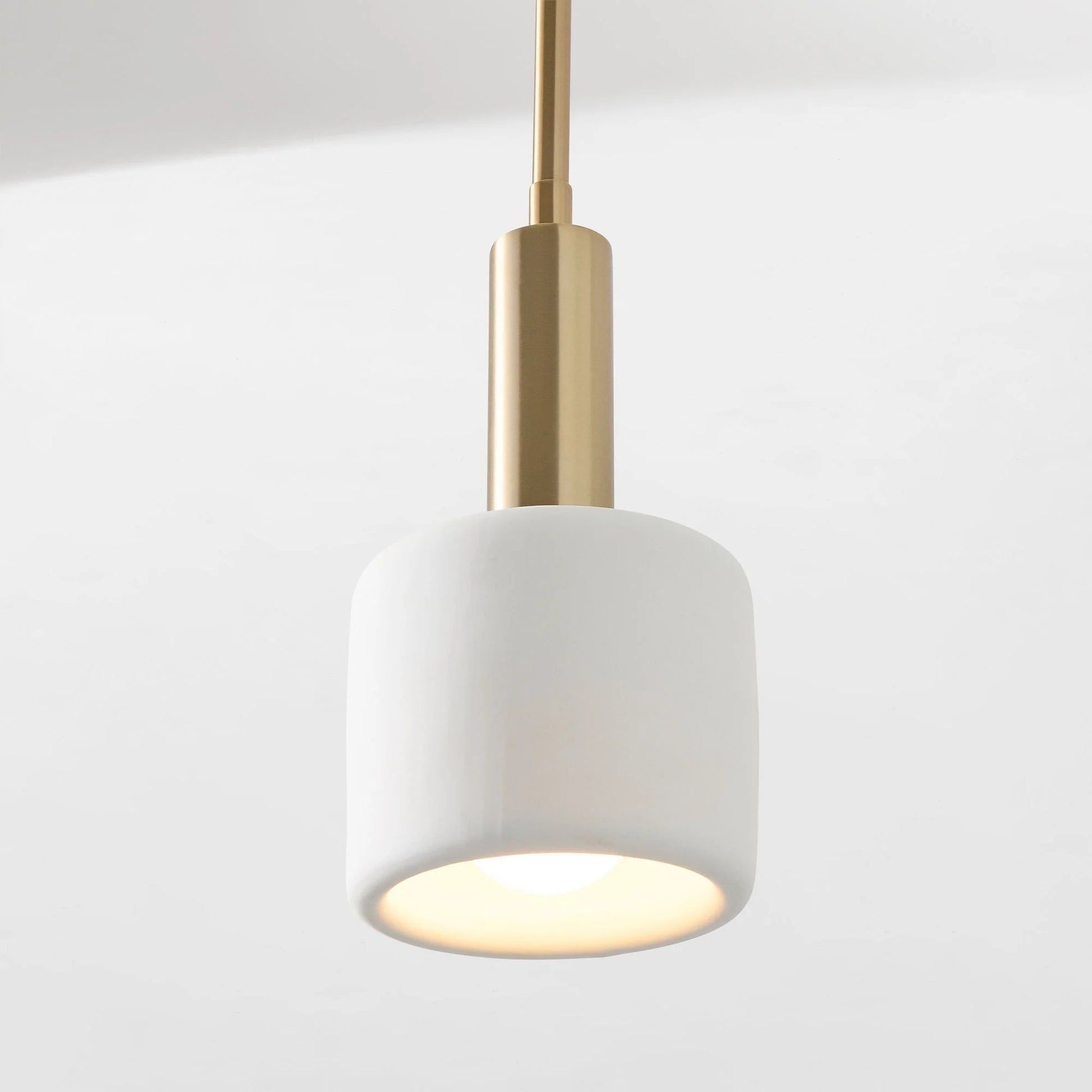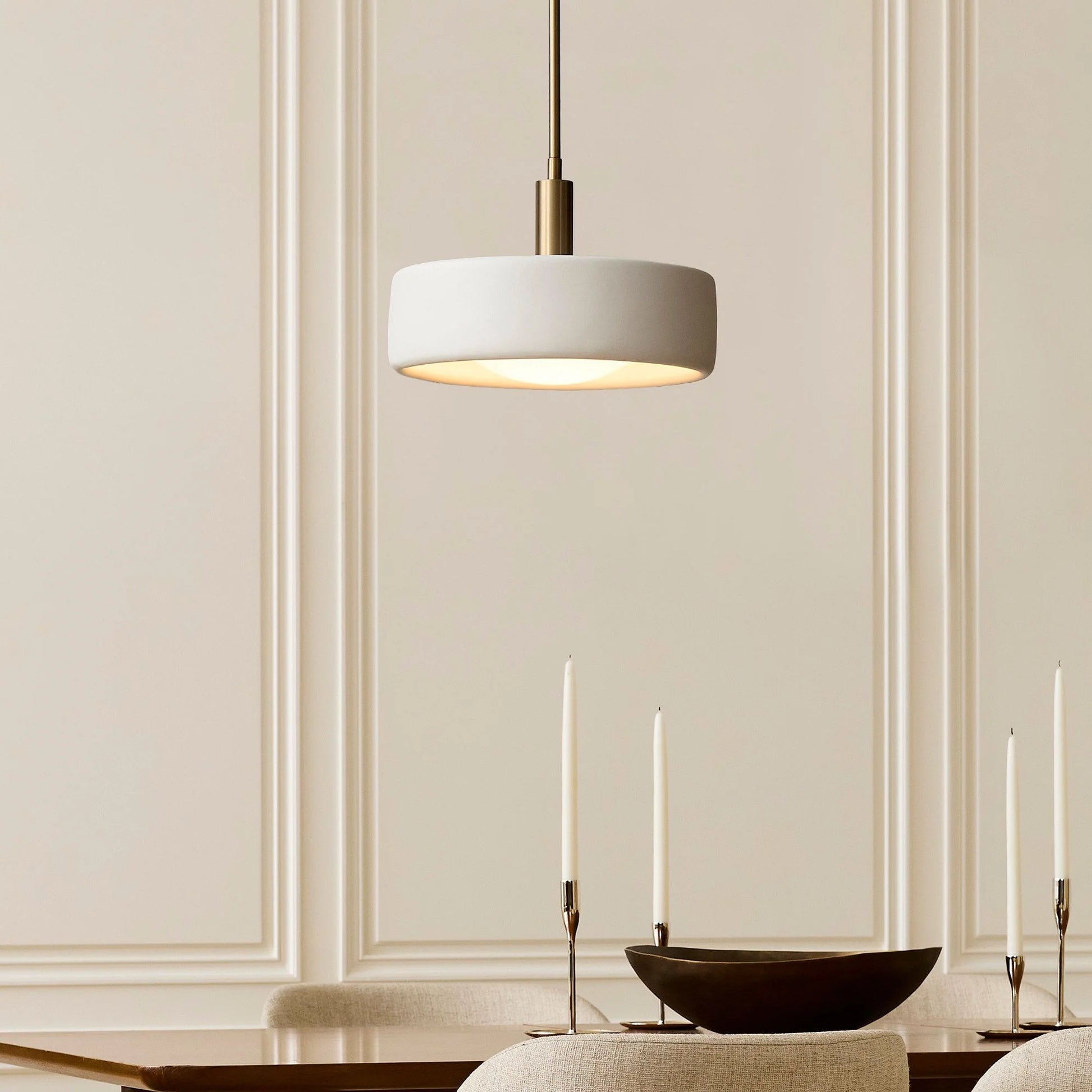 The ivory porcelain shade casts a warm glow, while metal accents bring a modern contrast and refined touch.
