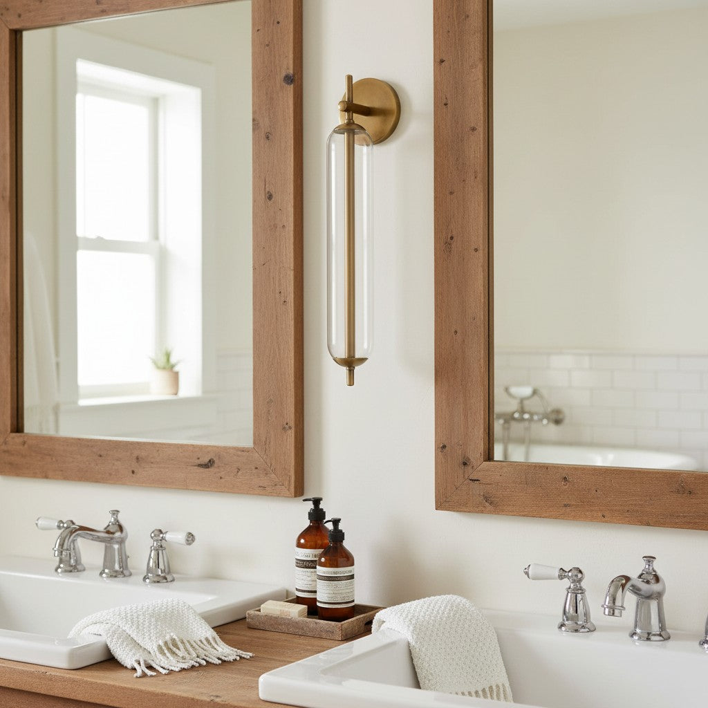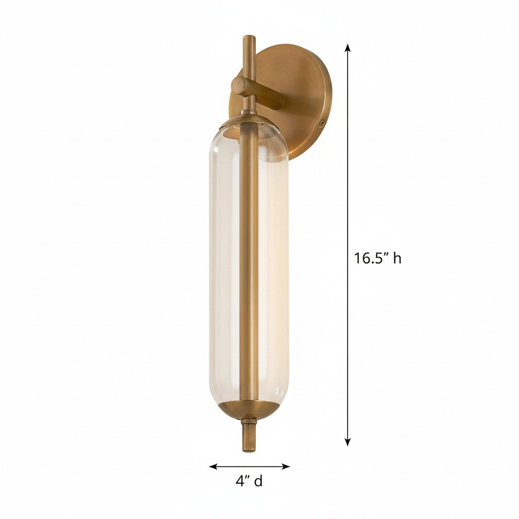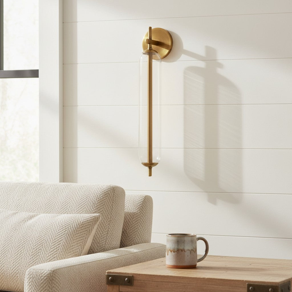 Modern Tube Clear Glass Brass Bathroom Vanity Wall Sconce
