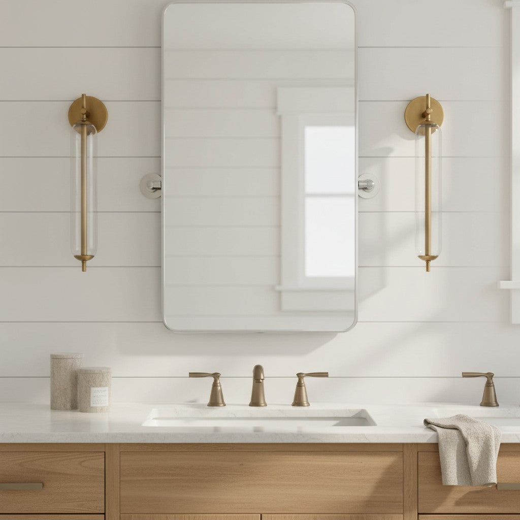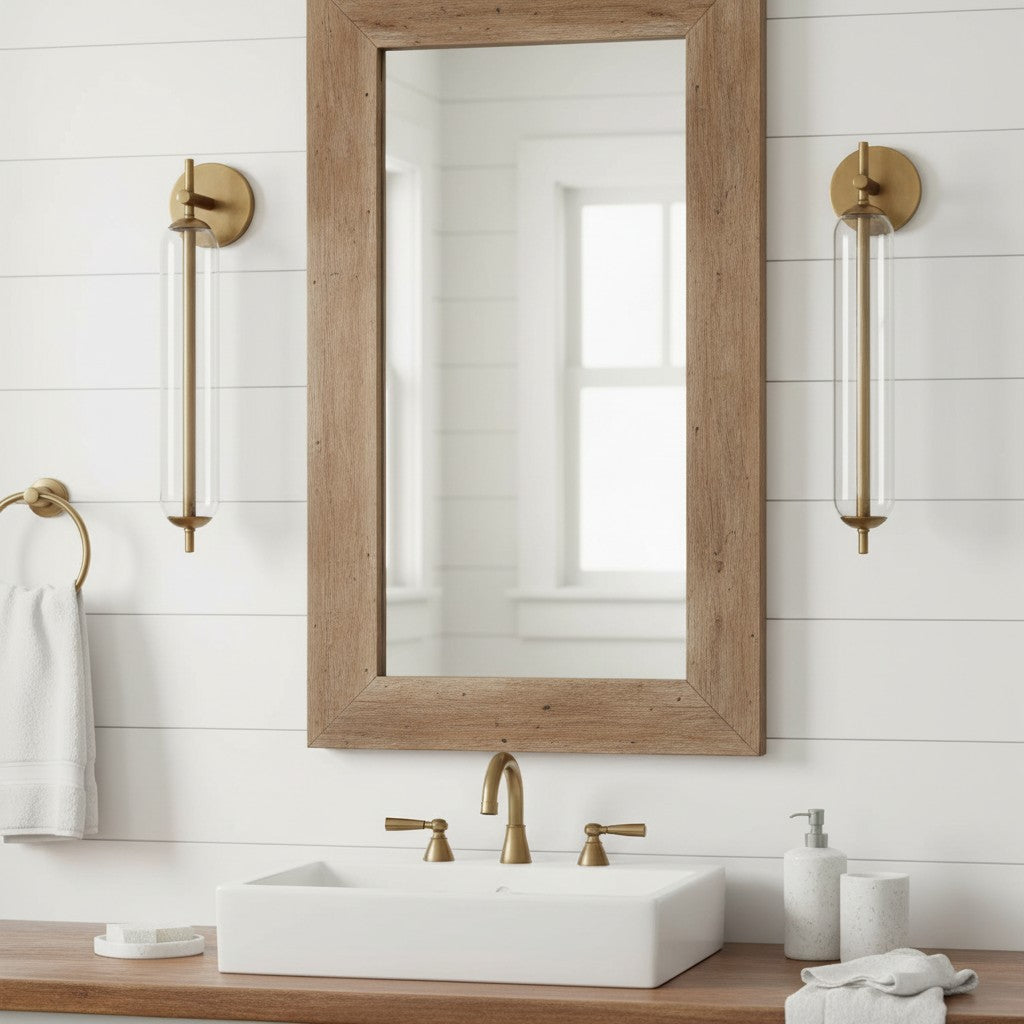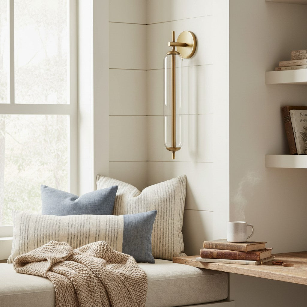 Modern Tube Clear Glass Brass Bathroom Vanity Wall Sconce