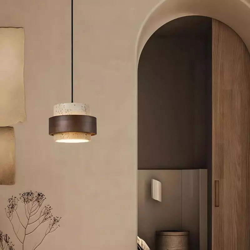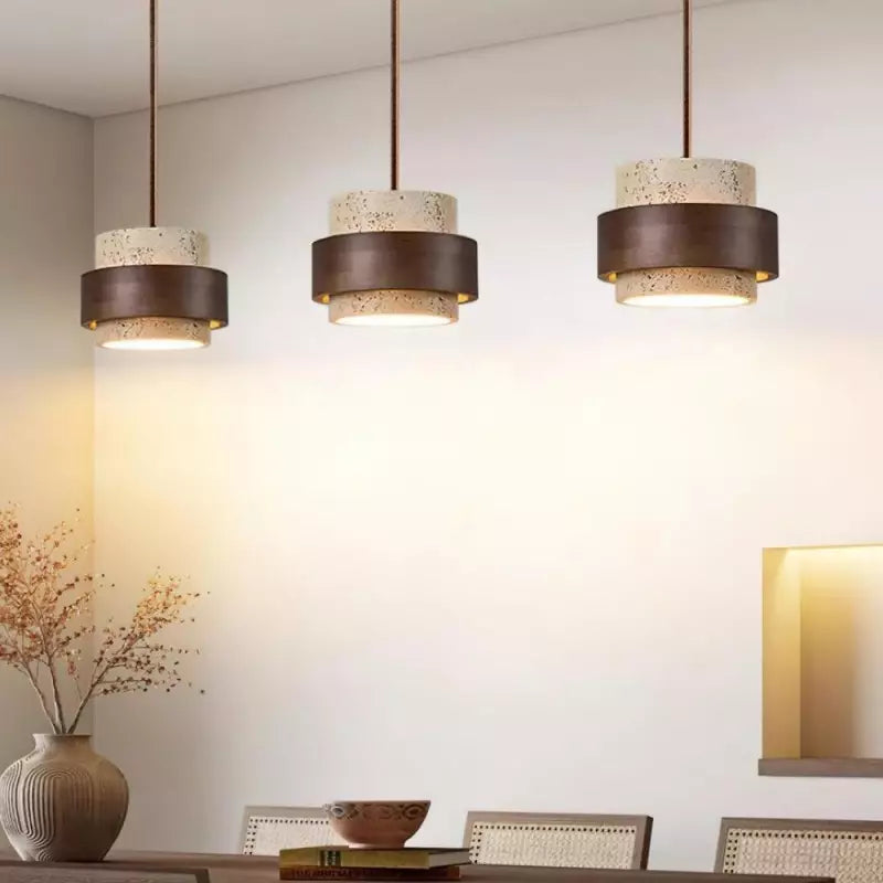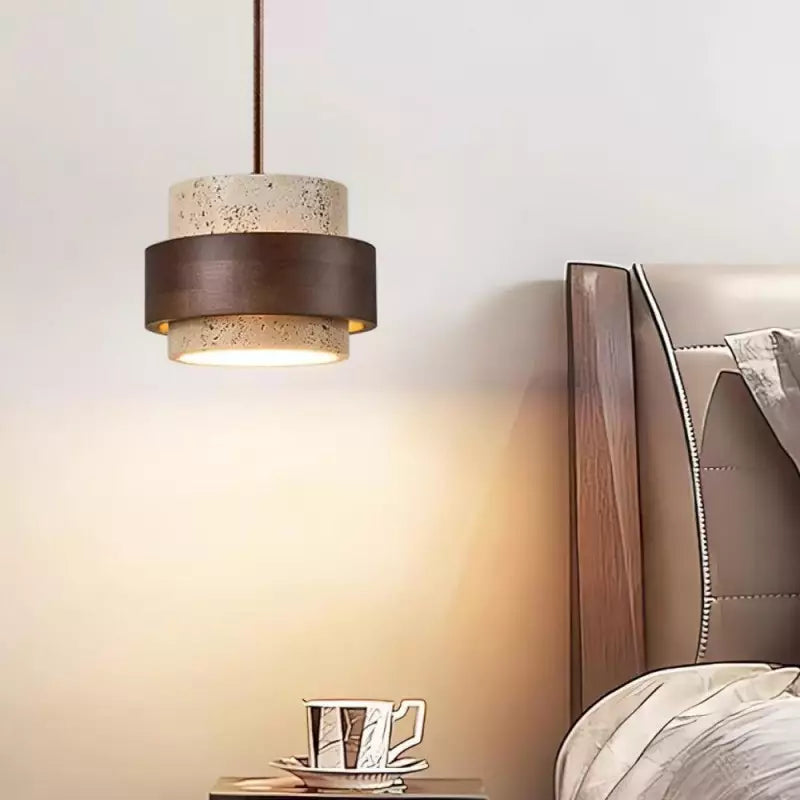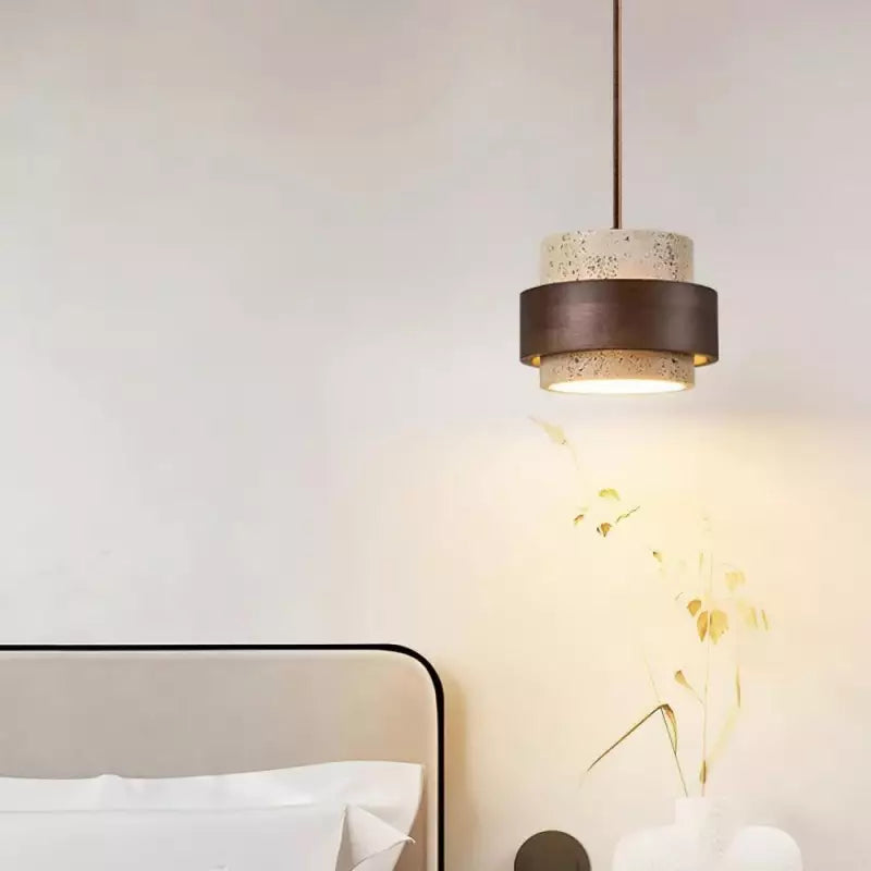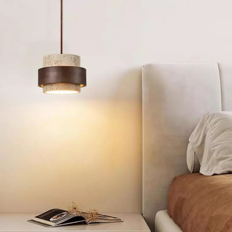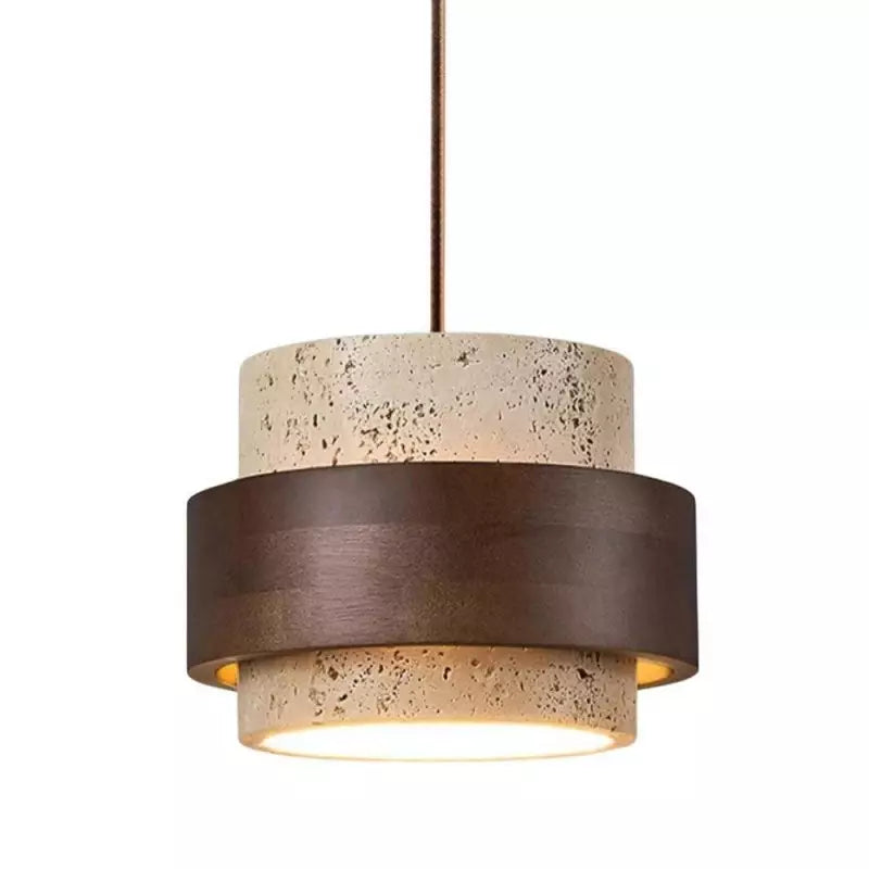 Aksel Vintage Cylindrical Travertine Pendant Light