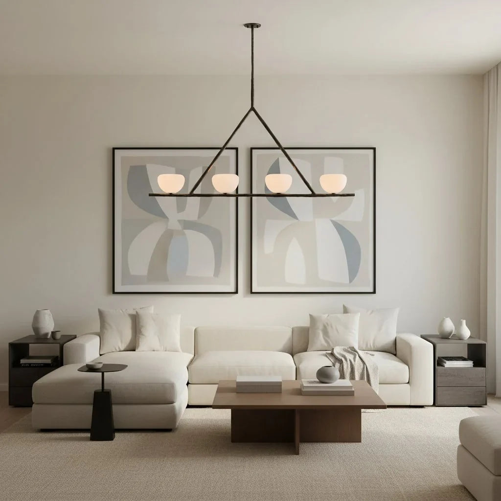 Sleek linear shape complements dining tables, kitchen islands with versatile appeal.