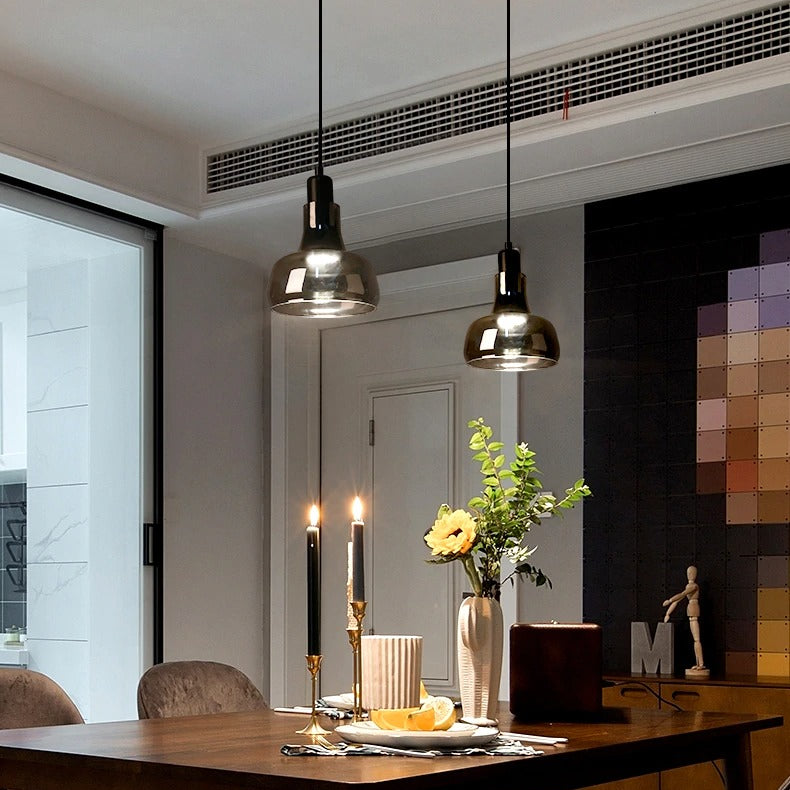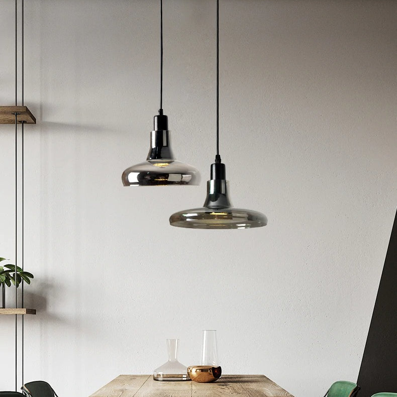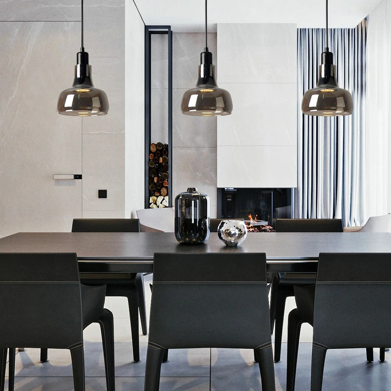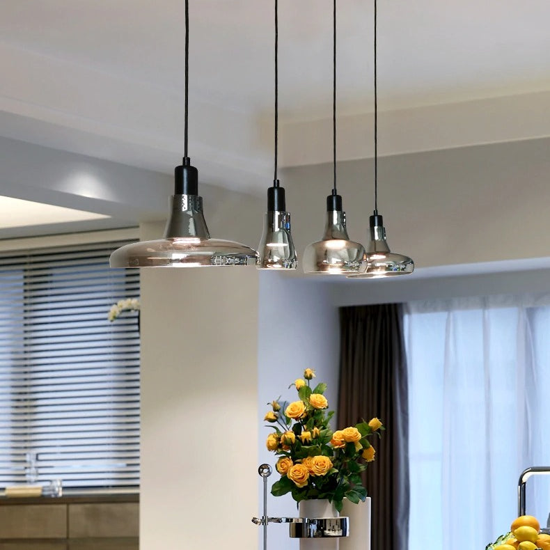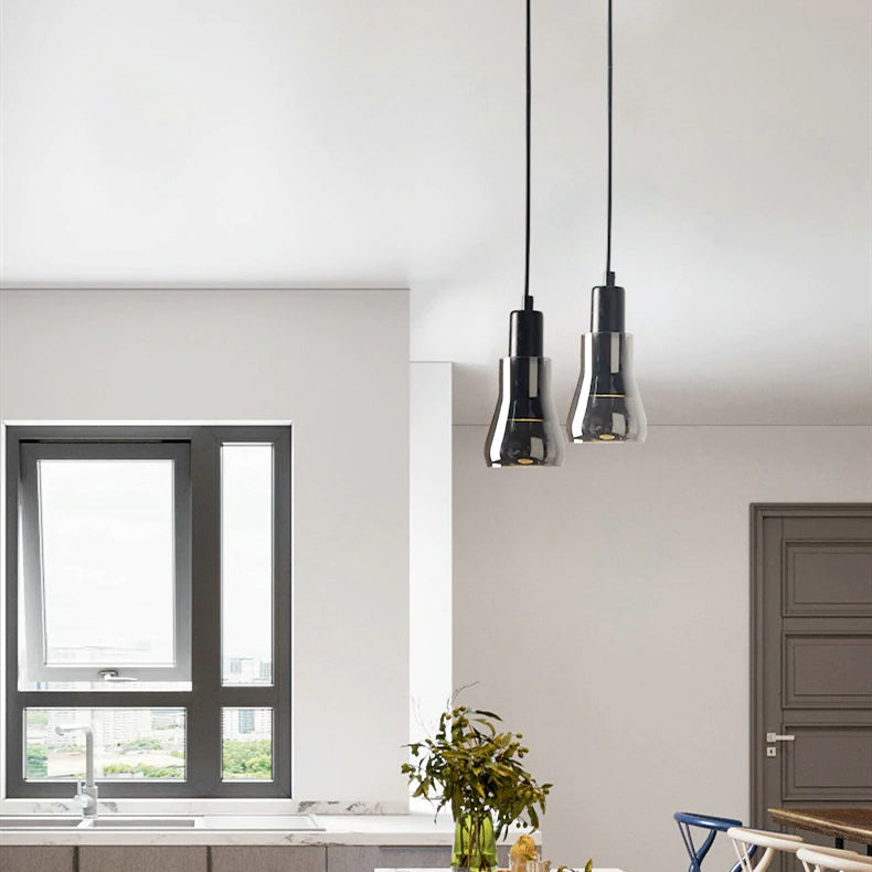 Light up your space with the elegant black glass pendant light. Featuring mirror glass and four distinct shapes, this light is perfect for any modern setting. The perfect blend of style and utility, this pendant light will enhance the atmosphere of any room and ensure that your space stands out. Get ready to make a statement with the black glass pendant light!