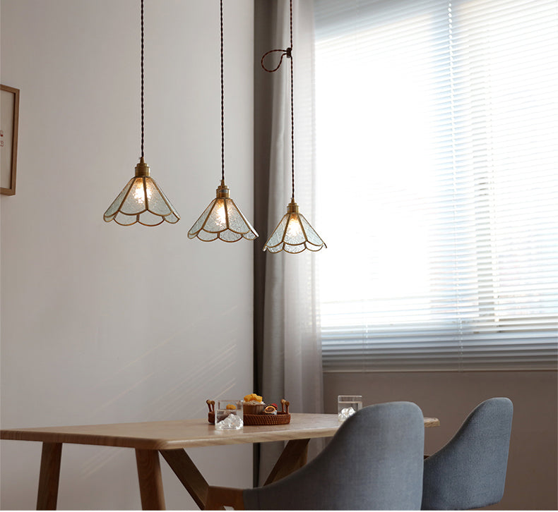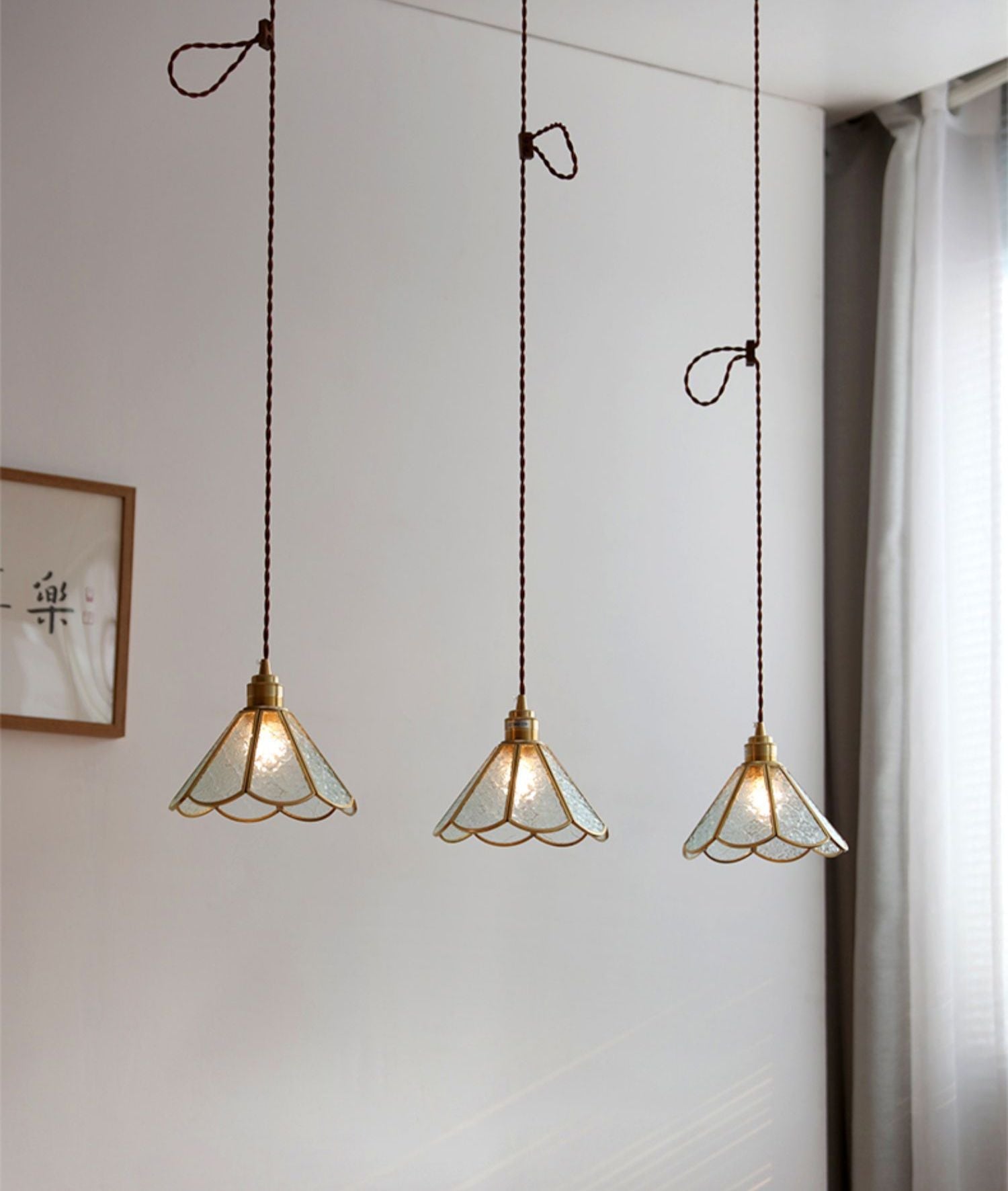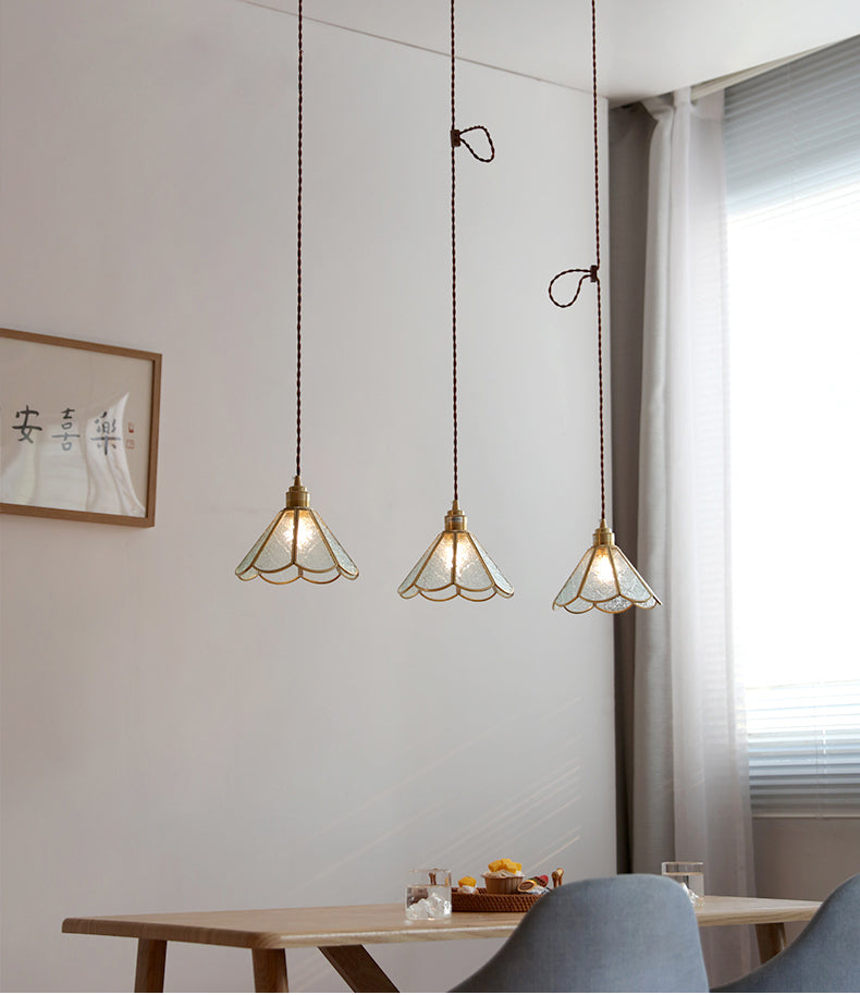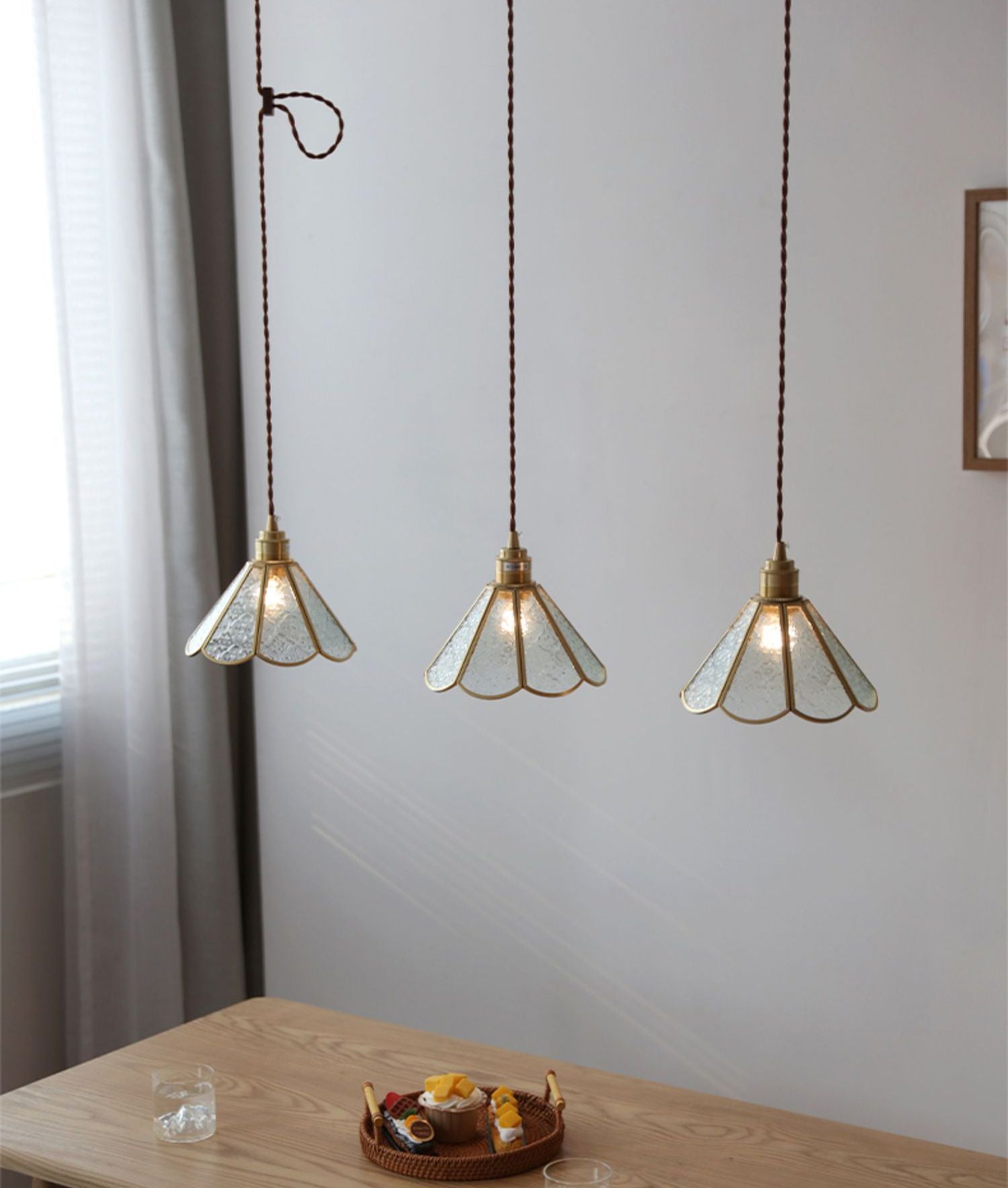 Illuminate your space in style with the classic brass glass pendant light. This timeless piece features an elegant glass pendant light, hanging from the fabric twisted cord for an elegant finish. Perfect for adding a touch of sophistication to any room, this chic pendant light will add a warm and inviting ambiance to any home. Add character and charm to your space with this beautiful glass pendant light.