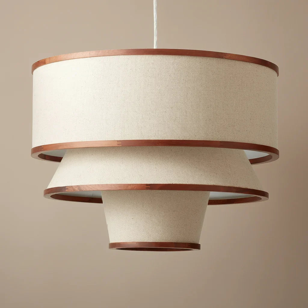 Caroline Modern Walnut Wood and Linen Pendant Light