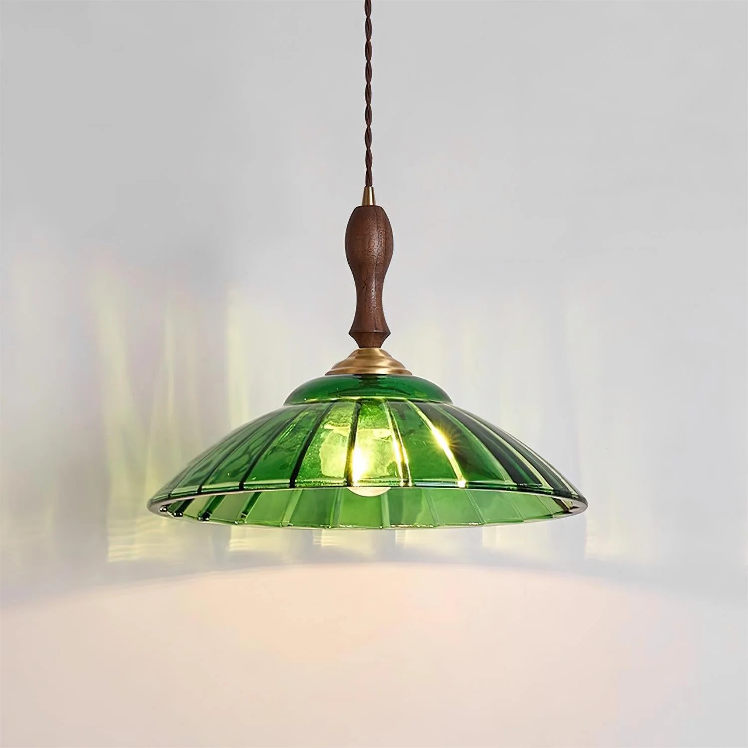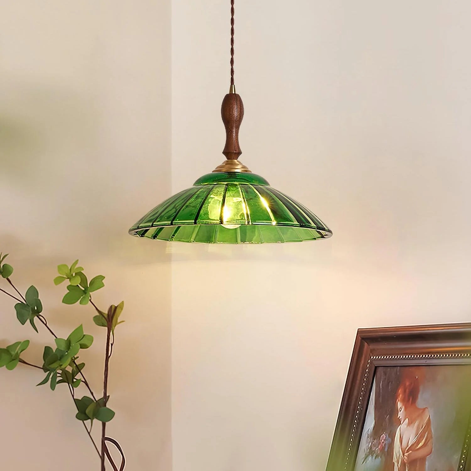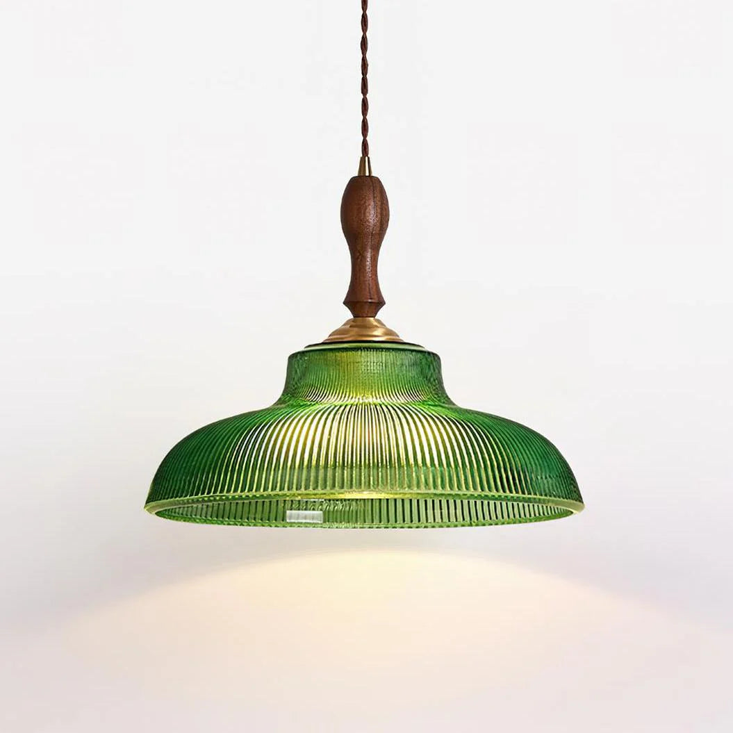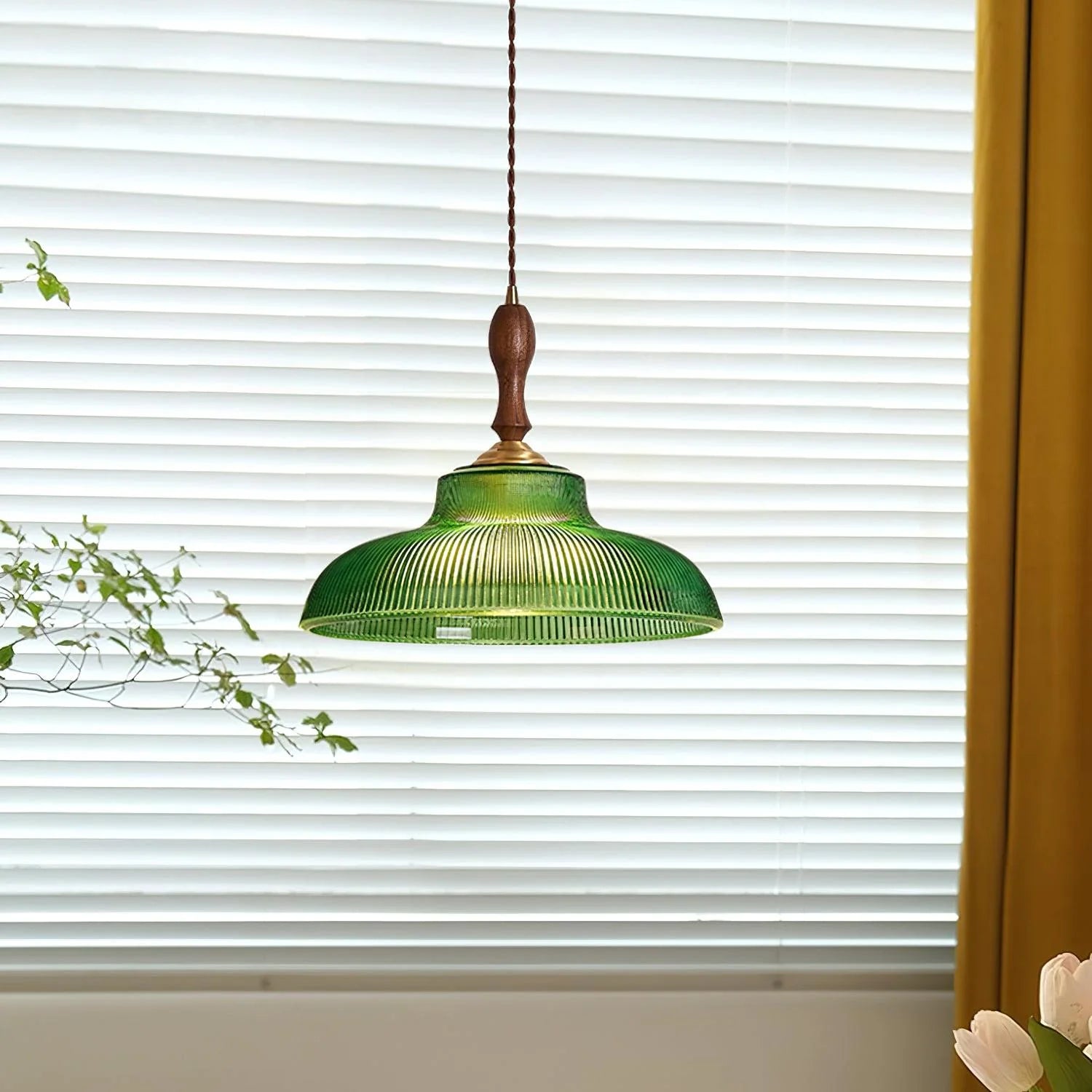 Ceyric Vintage Green Ribbed Glass Pendant Lamp