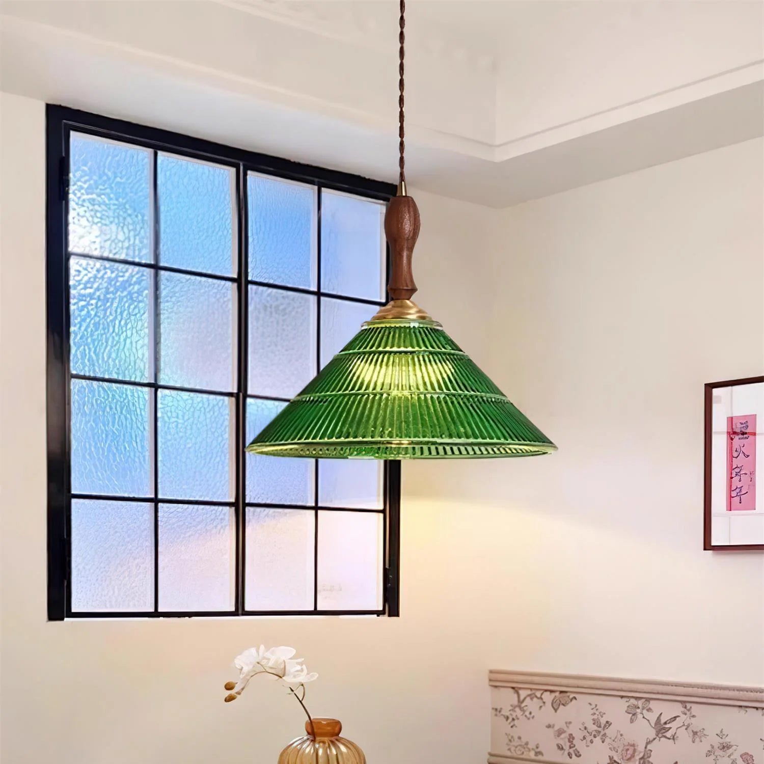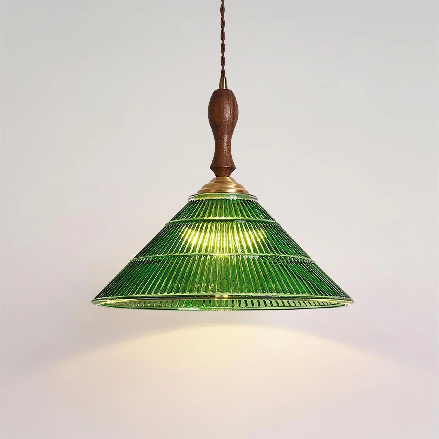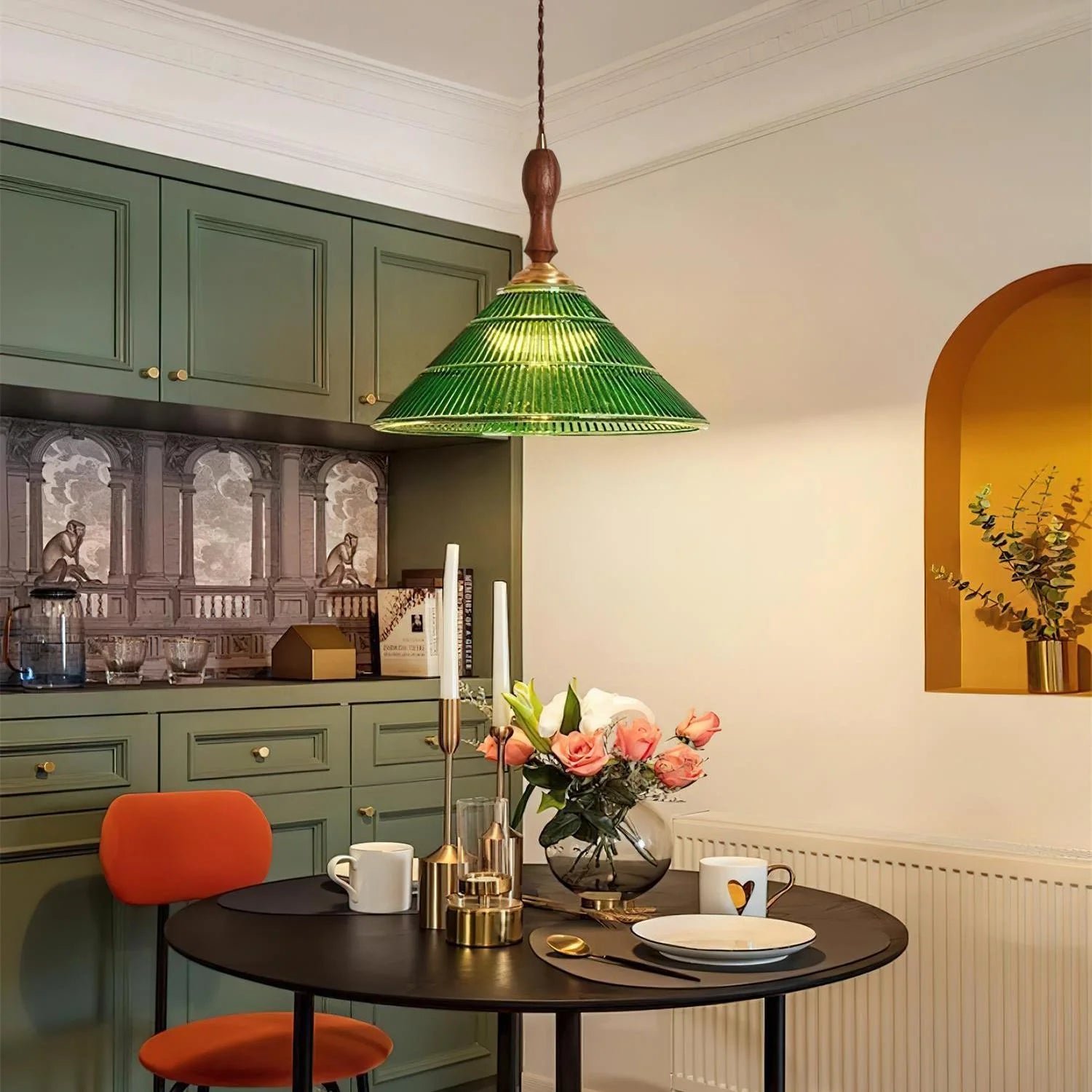 Ceyric Vintage Green Ribbed Glass Pendant Lamp
