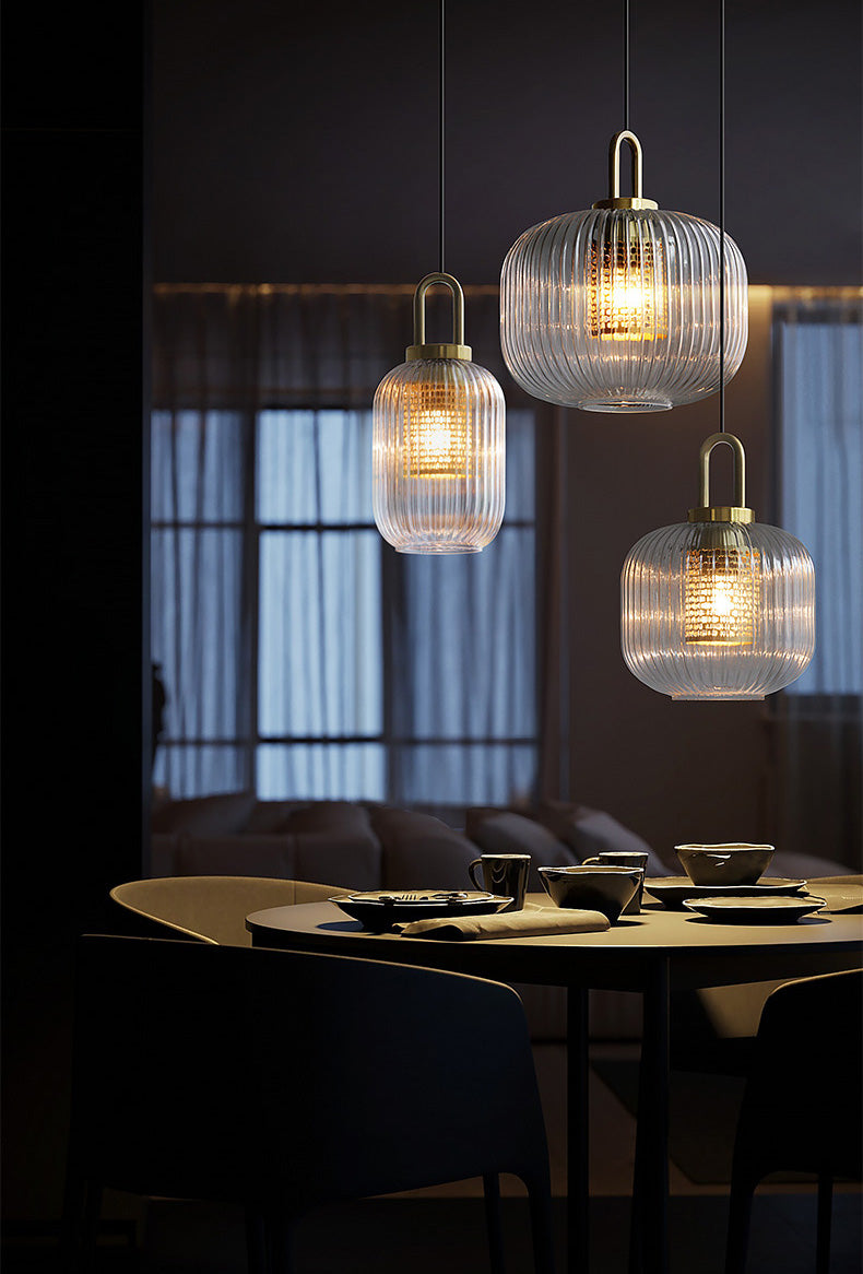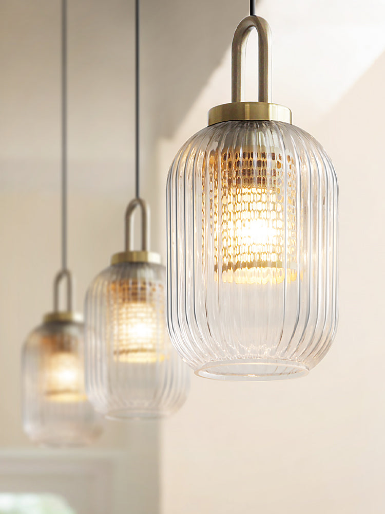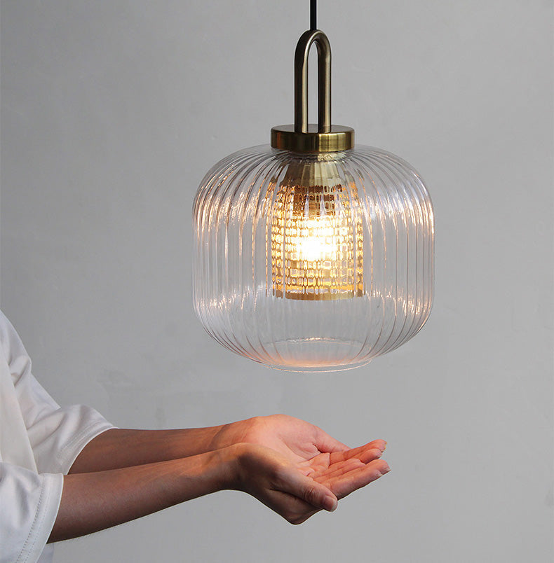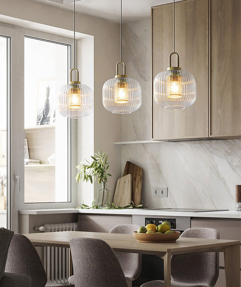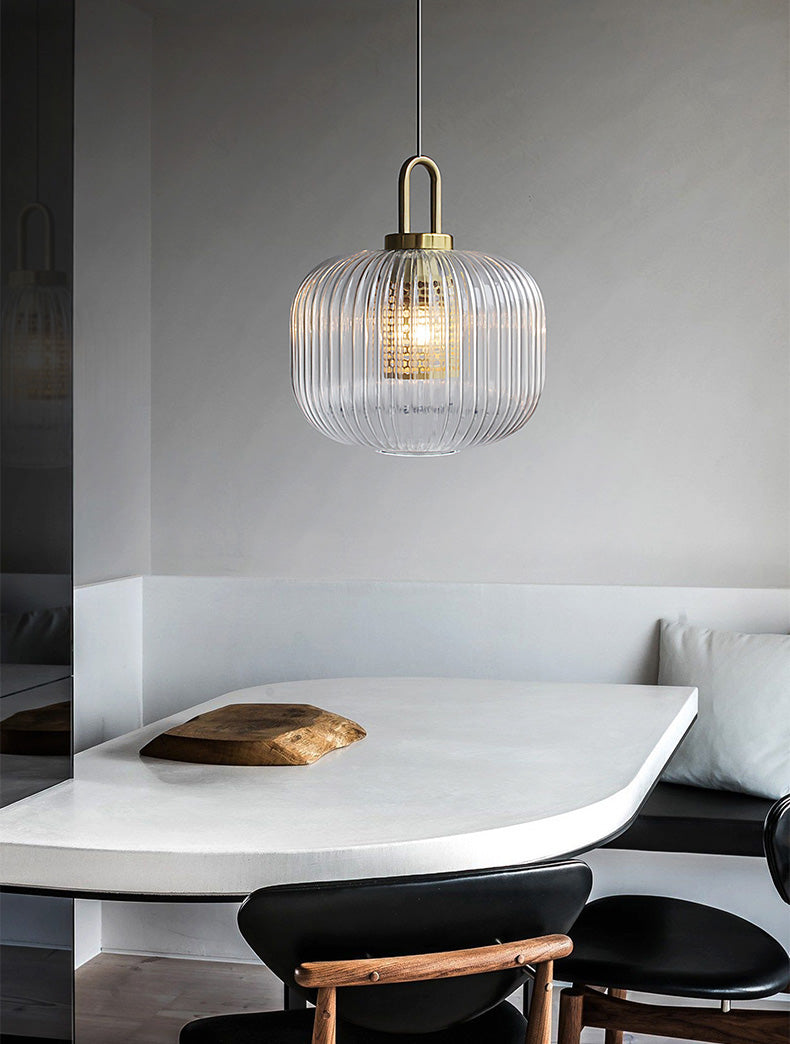 This industrial clear glass pendant light is a chic and versatile fixture with a timeless style. The fluted shape lampshade is available in three different sizes and is sure to complement any decor. This pendant can be used as a chandelier or as a single light source over a dining table, in the kitchen, living room, hallway . . . the possibilities are endless.