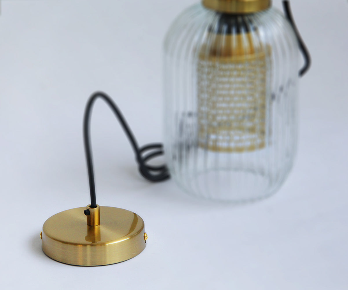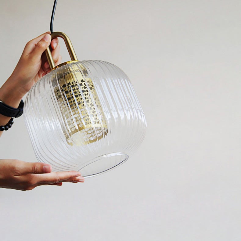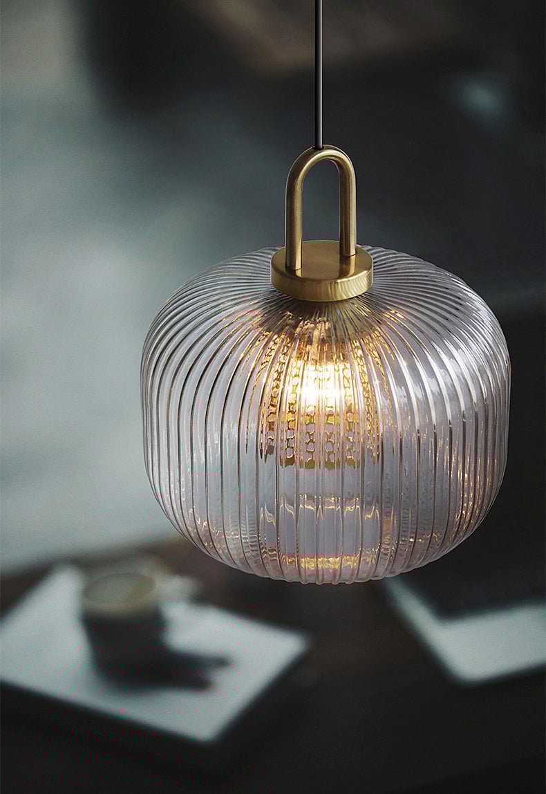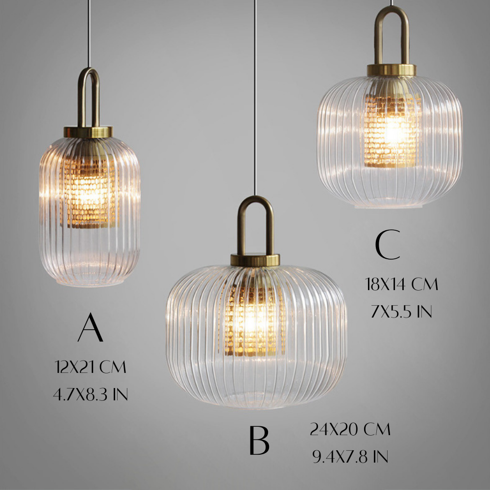 This industrial clear glass pendant light is a chic and versatile fixture with a timeless style. The fluted shape lampshade is available in three different sizes and is sure to complement any decor. This pendant can be used as a chandelier or as a single light source over a dining table, in the kitchen, living room, hallway . . . the possibilities are endless.