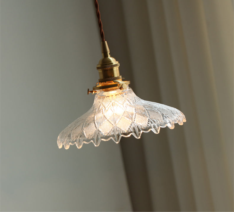 Illuminate your space in style with the classic glass pendant light. This timeless piece features an elegant clear glass pendant light, hanging from the fabric twisted cord for an elegant finish. Perfect for adding a touch of sophistication to any room, this chic pendant light will add a warm and inviting ambiance to any home. Add character and charm to your space with this beautiful glass pendant light.