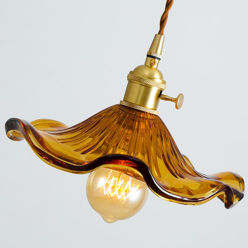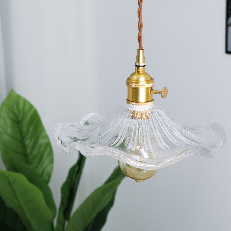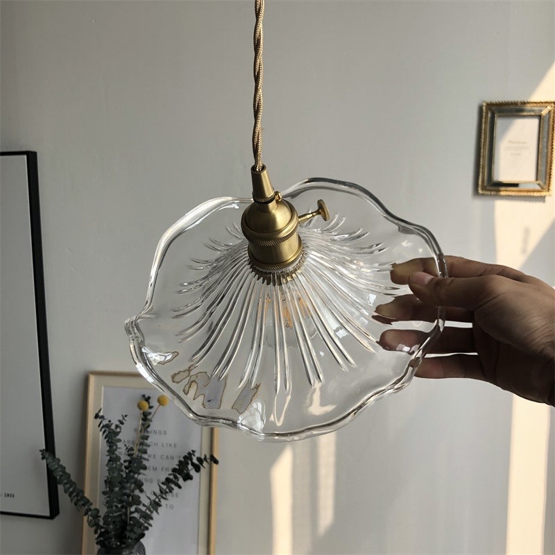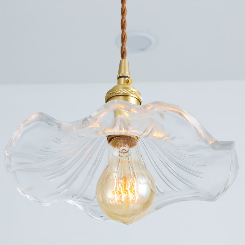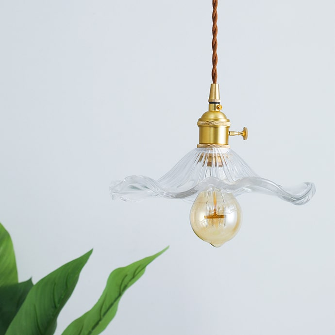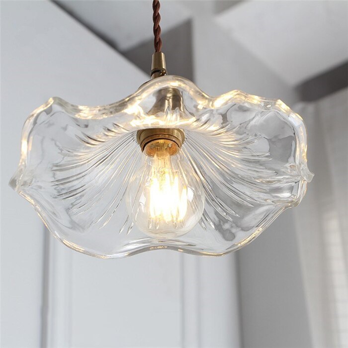 Illuminate your space in style with the flower glass pendant light. This timeless piece features an elegant clear frosted glass pendant light, hanging from the fabric twisted cord for an elegant finish. Perfect for adding a touch of sophistication to any room, this chic pendant light will add a warm and inviting ambiance to any home. Add character and charm to your space with this beautiful glass pendant light.