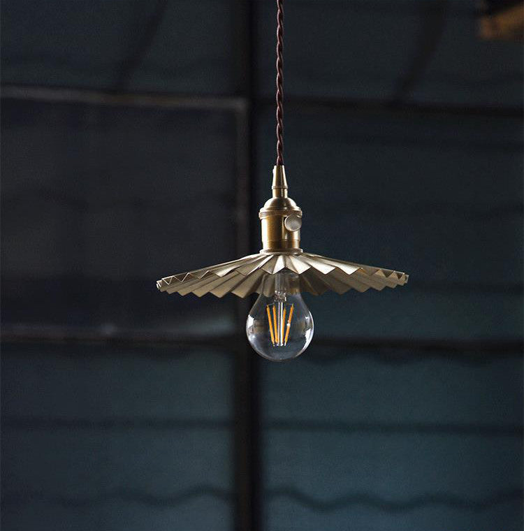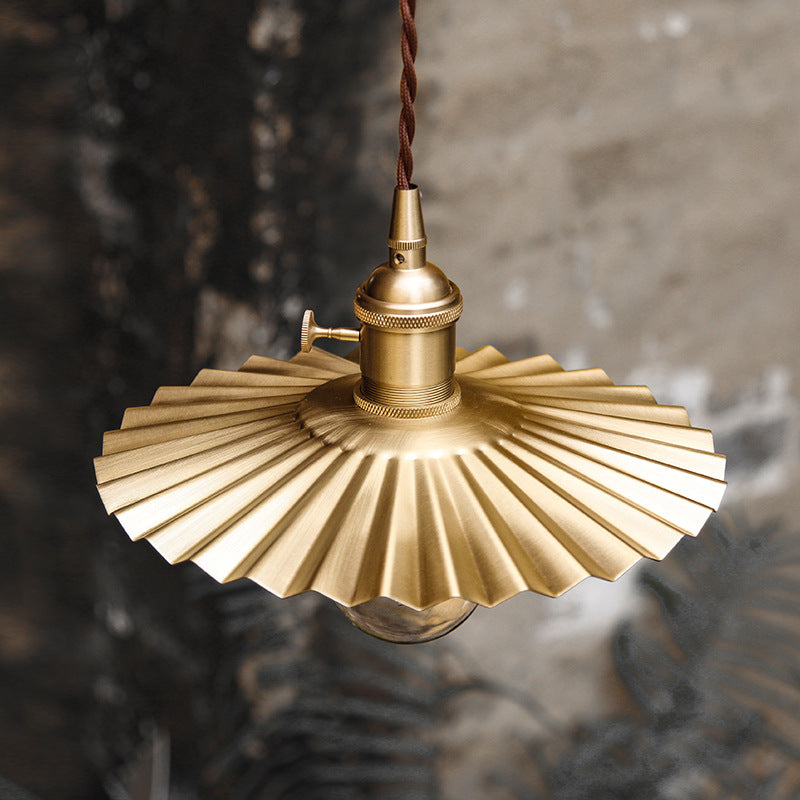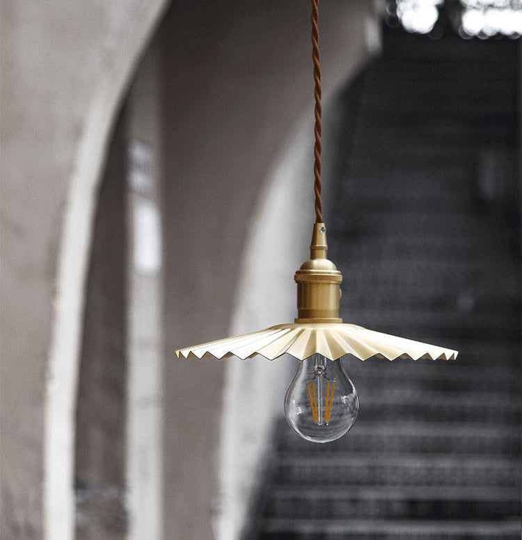 This fluted brass pendant light is crafted in a rustic style but is suitable for many decors. The light is also available as a plug-in with any cord length.