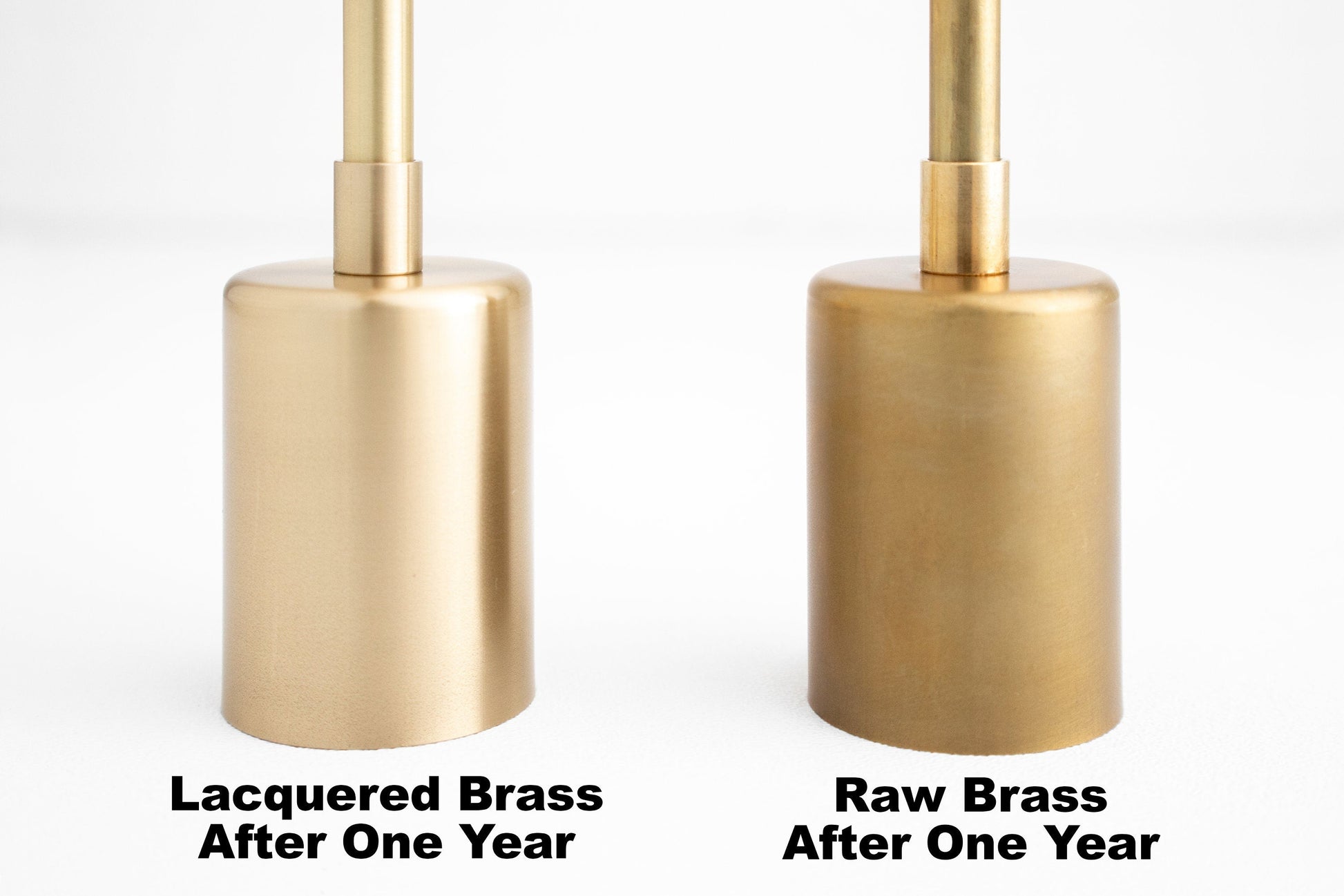 • Our Raw Brass finish features solid unfinished brass that is hand cleaned before leaving our shop. The brass will age and patina over time giving the finish a soft natural look.