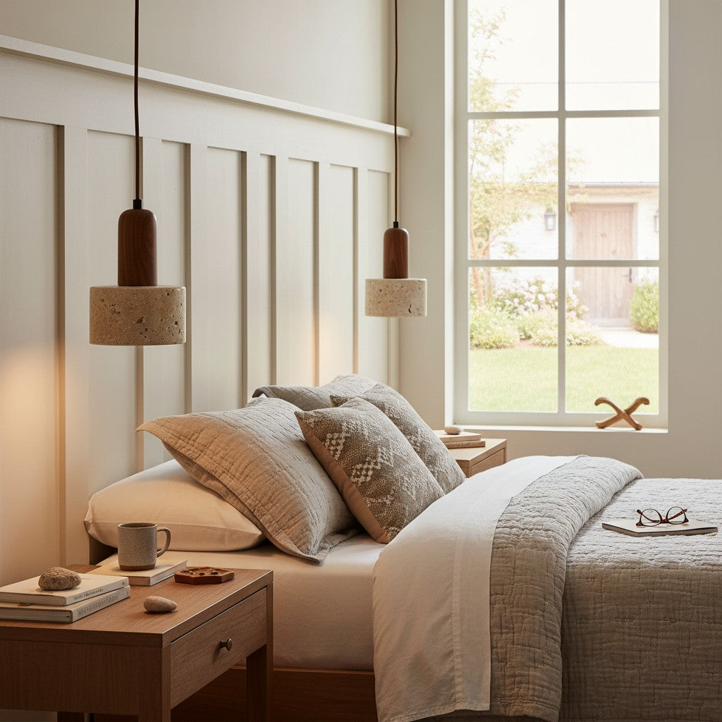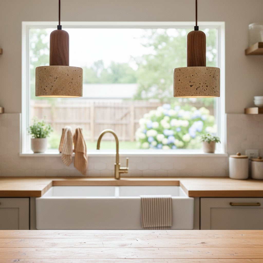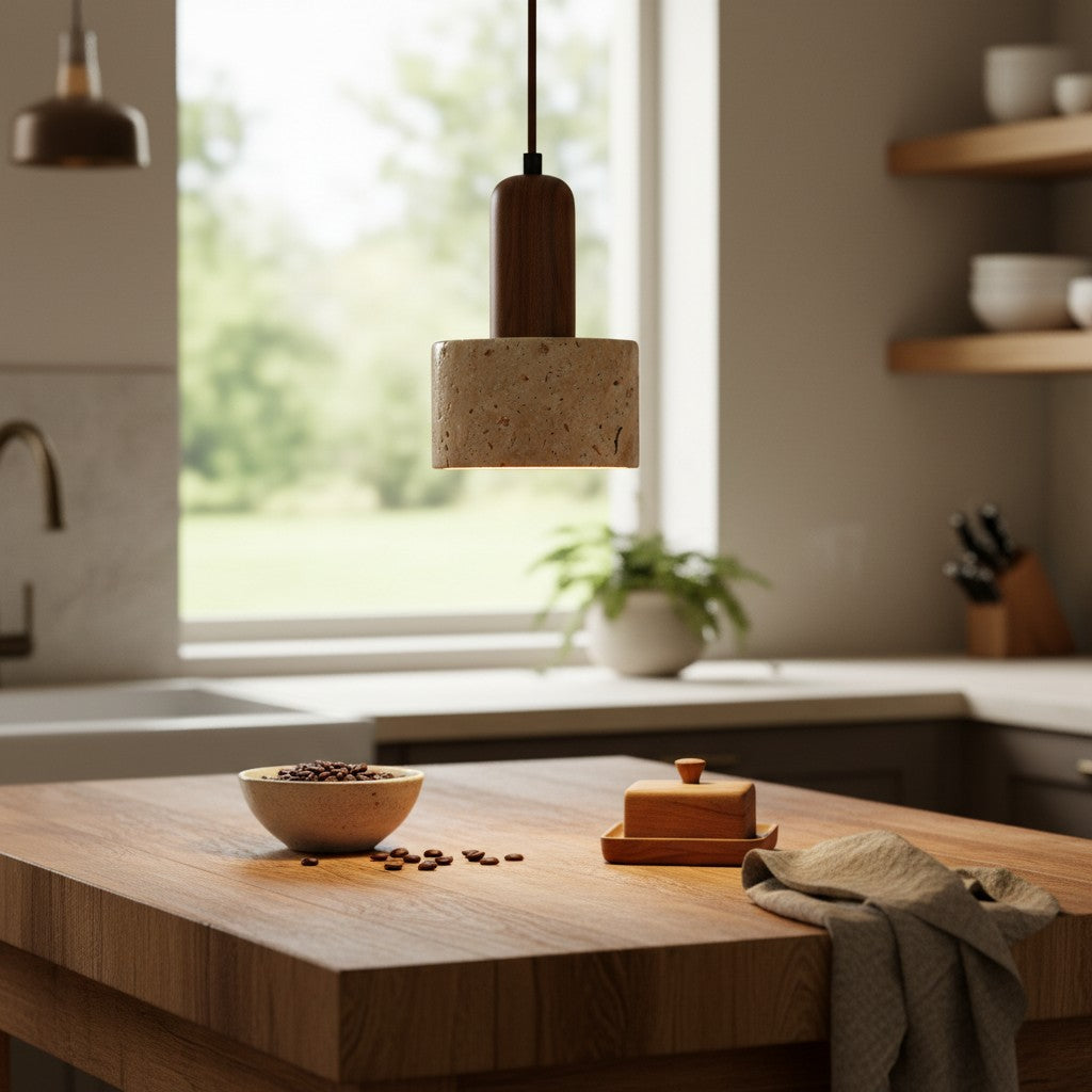 Modern Wabi-Sabi Travertine Pendant Light for Dining Room Kitchen Island