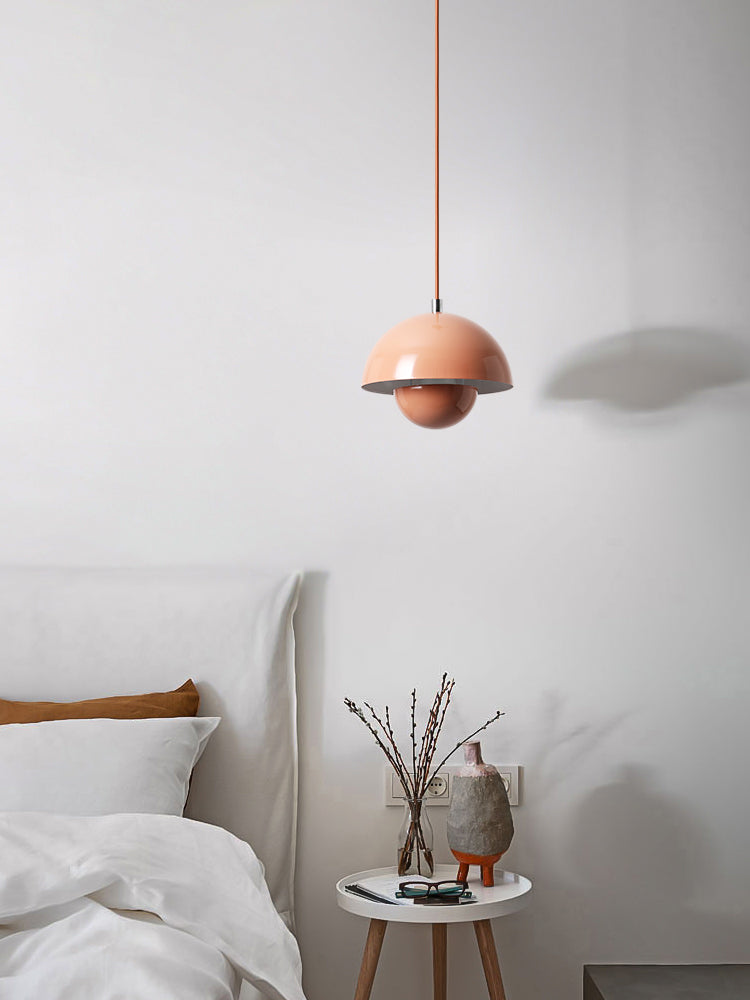 The beautiful mushroom shape is sure to bring a contemporary look to your home. Our mushroom series pendant lights are available in several colors.