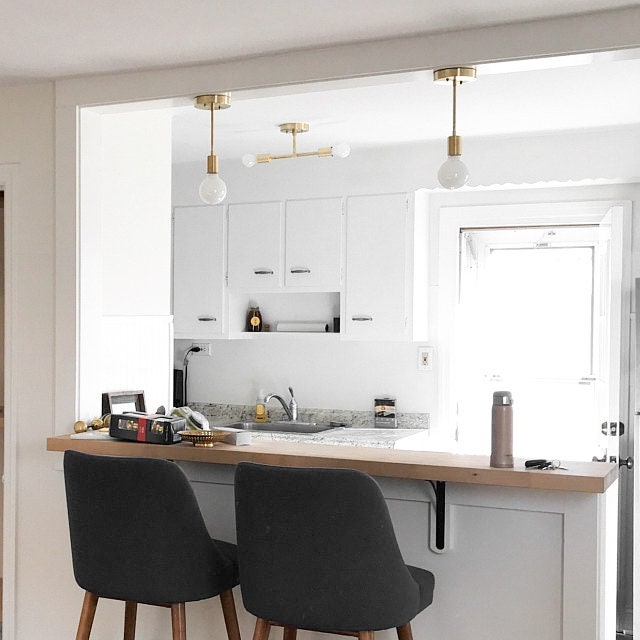 This mid century modern design features top quality unfinished brass. This brass has character. It's not too shiny and has a softer look that fits many modern interior designs.