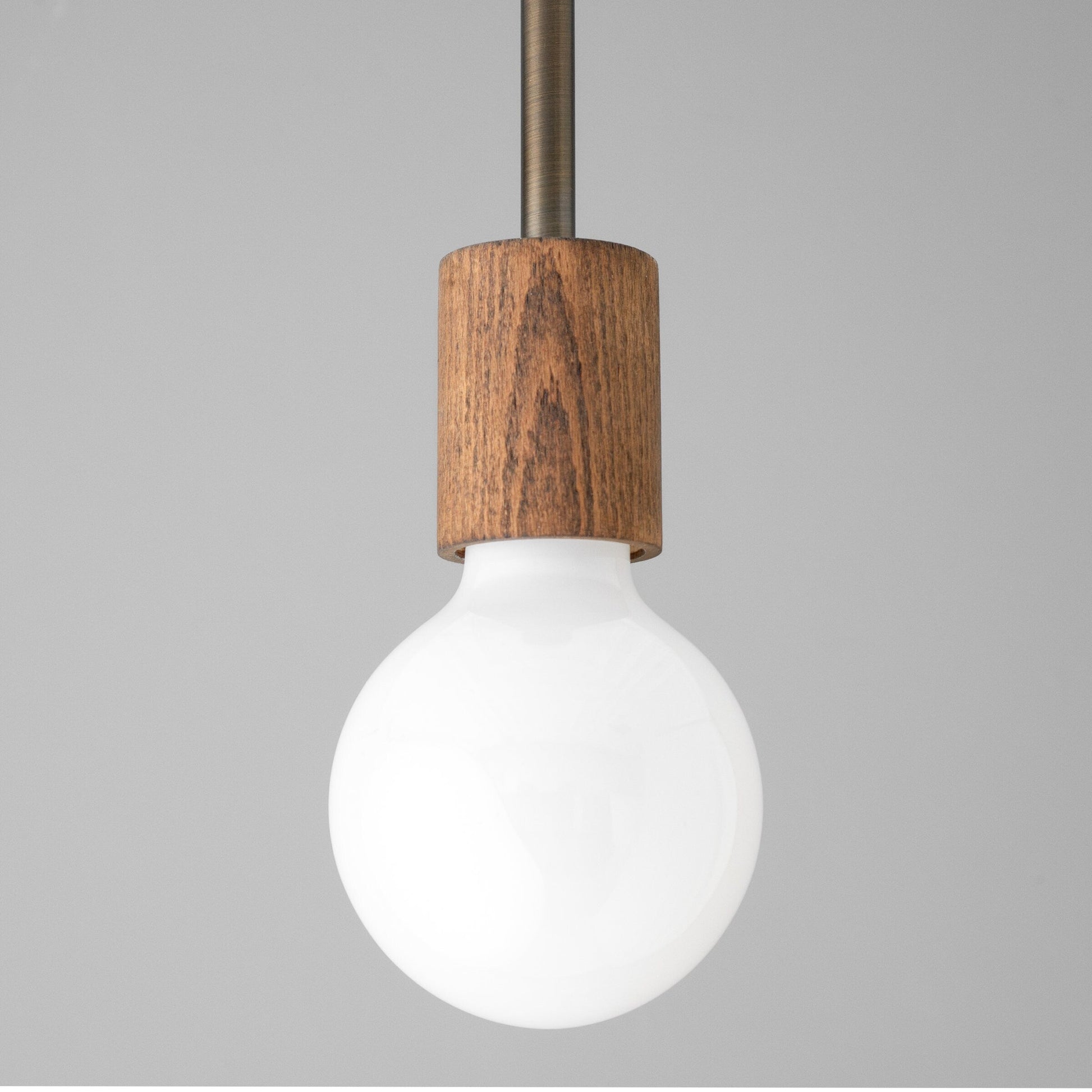 This minimalist style wood accented bare bulb pendant light fixture is available in your choice of metal finish with oak finish or unfinished light natural beechwood.