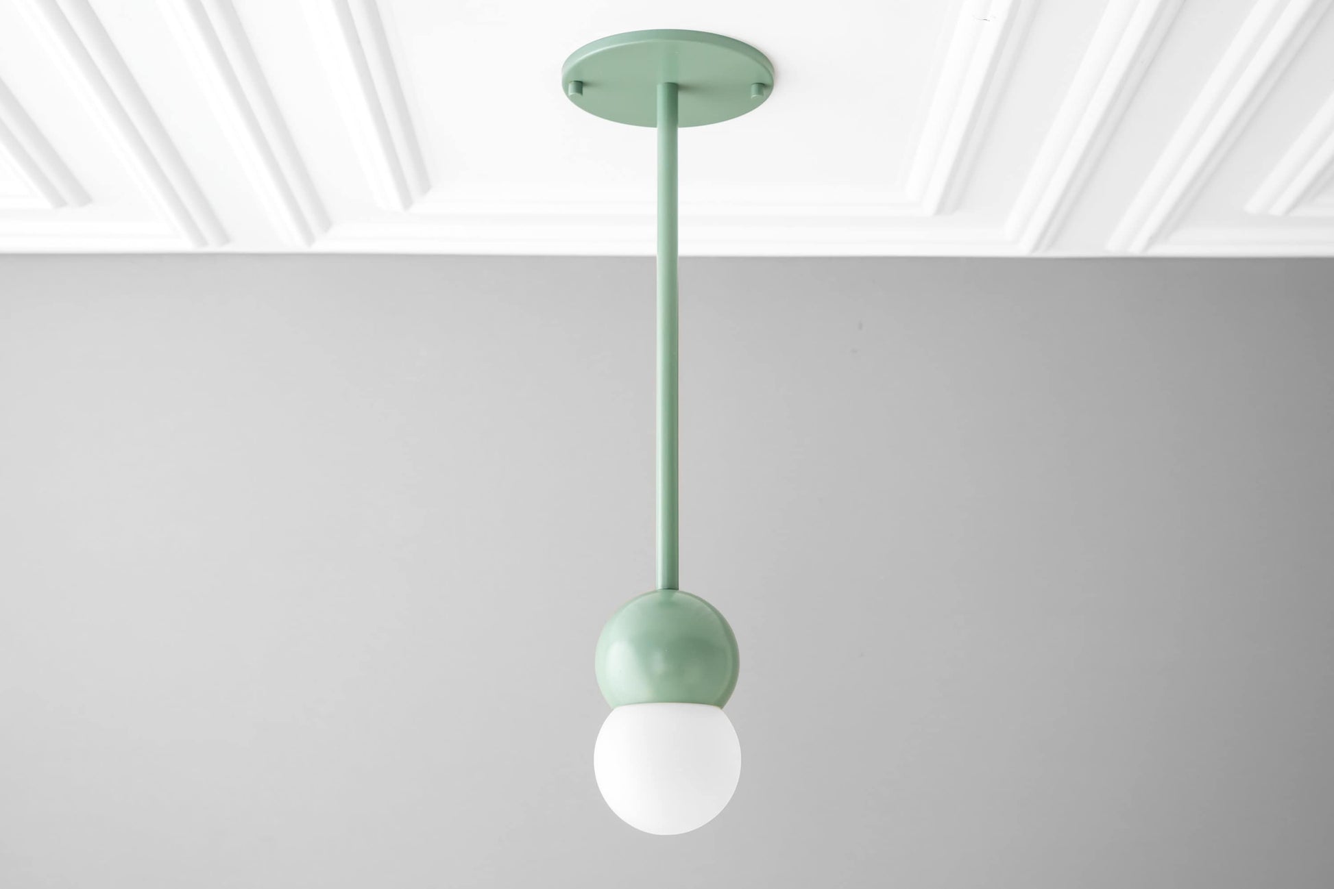 This colorful small pendant light fixture features a stacked sphere design with a 3" matte glass globe.