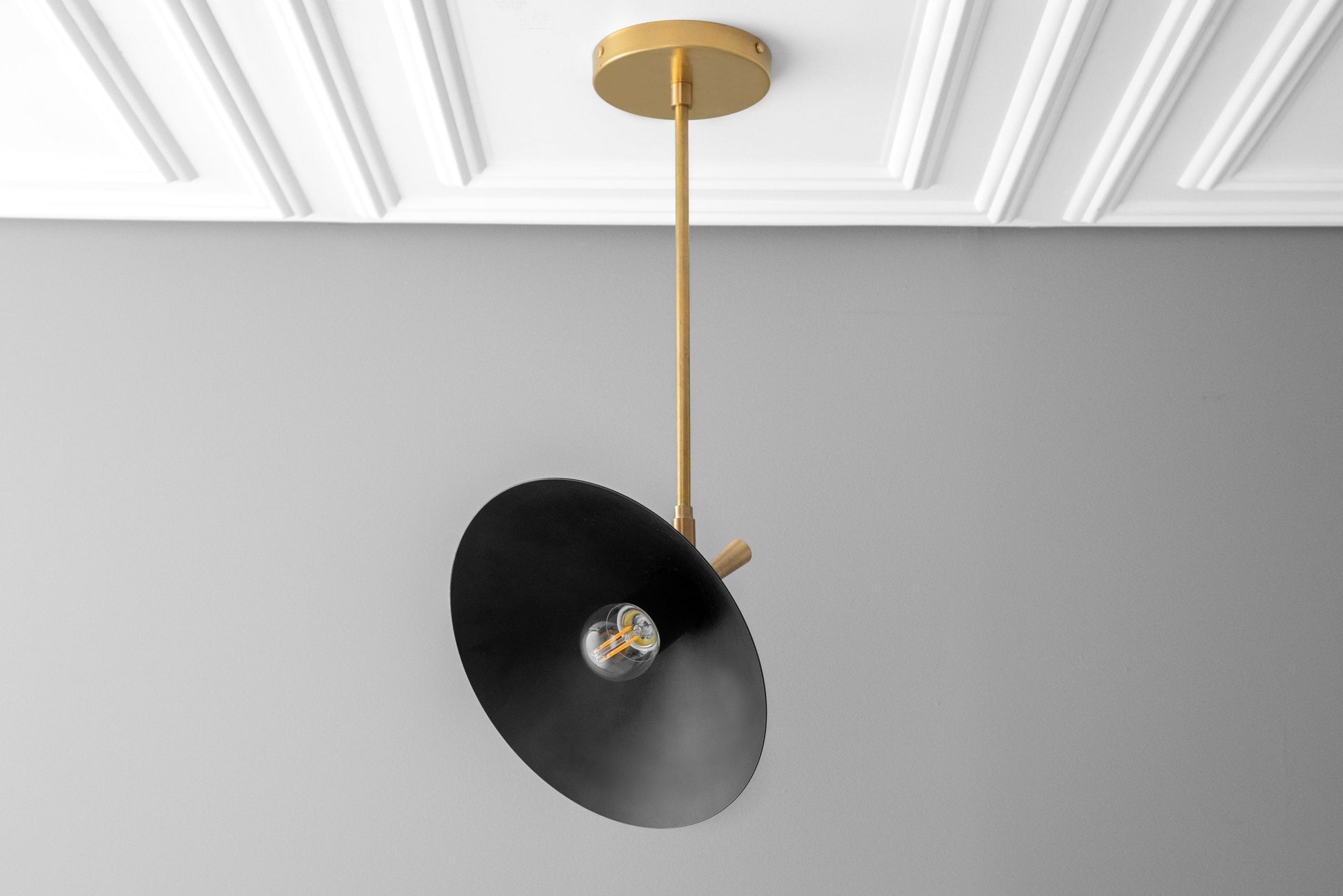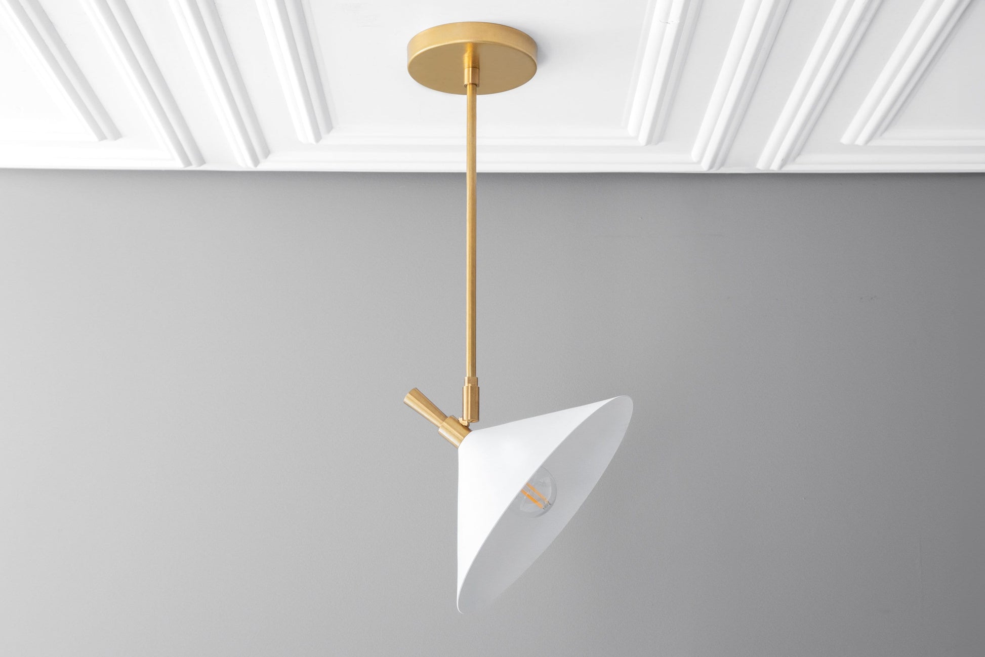 This midcentury modern spotlight pendant light fixture features a 360° swivel at the shade and a 90° shade tilt allowing you to direct light exactly where you need it.