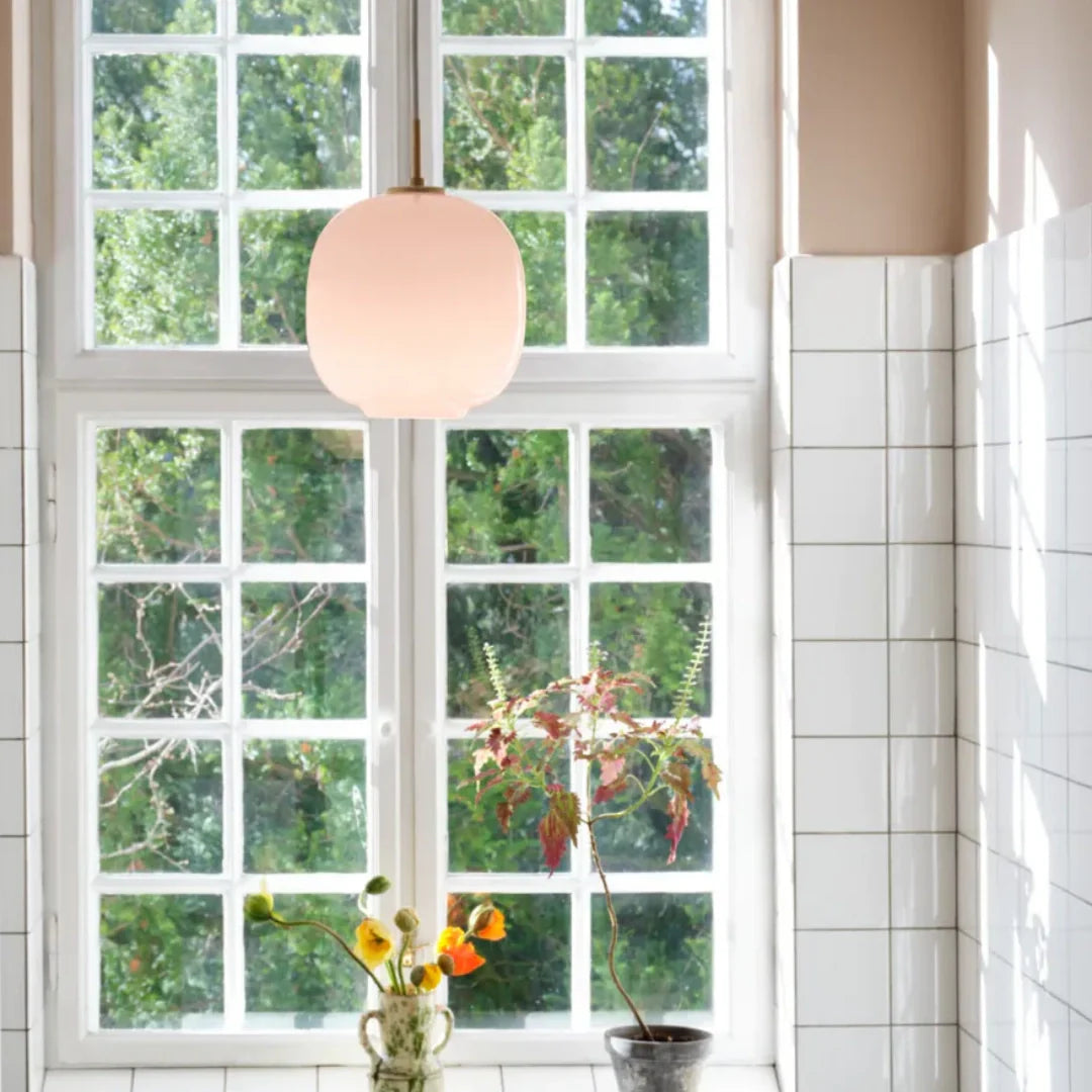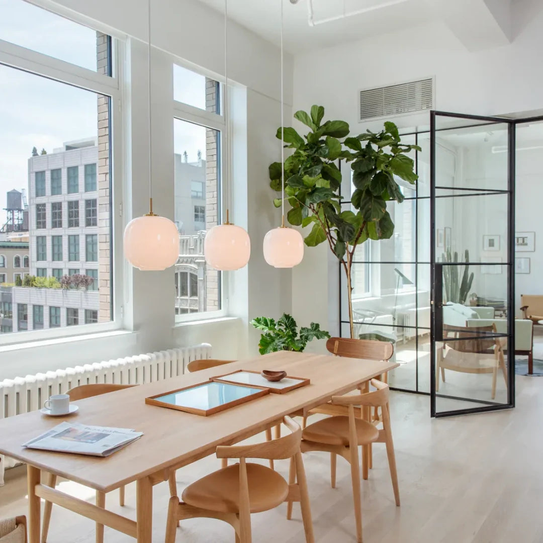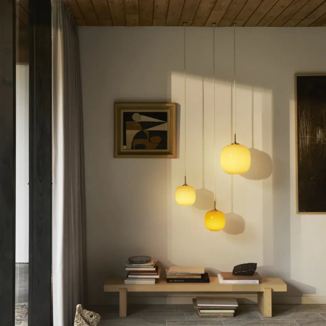 Pyroeis Mid-Century Modern Brass Globe Glass Pendant Light