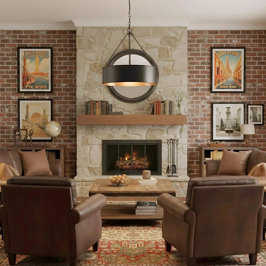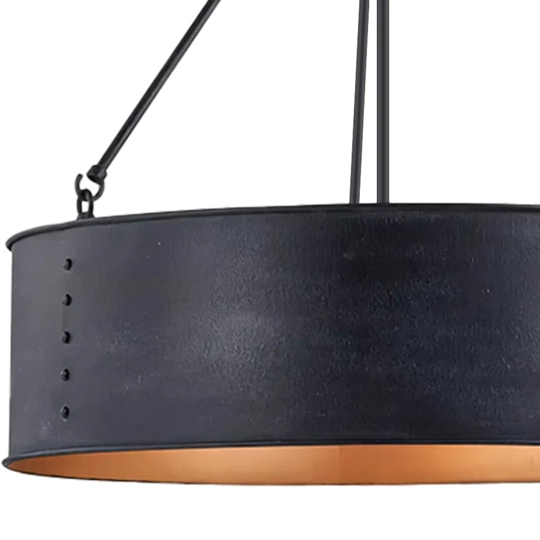 With its eye-catching black and antique gold drum shape, this pendant blends industrial and rustic styles. It's designed to become a captivating focal point in your living room or bedroom.