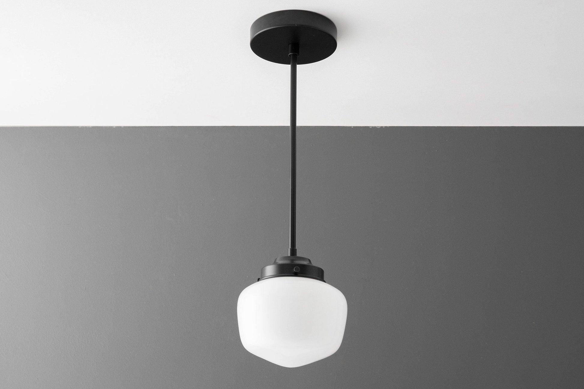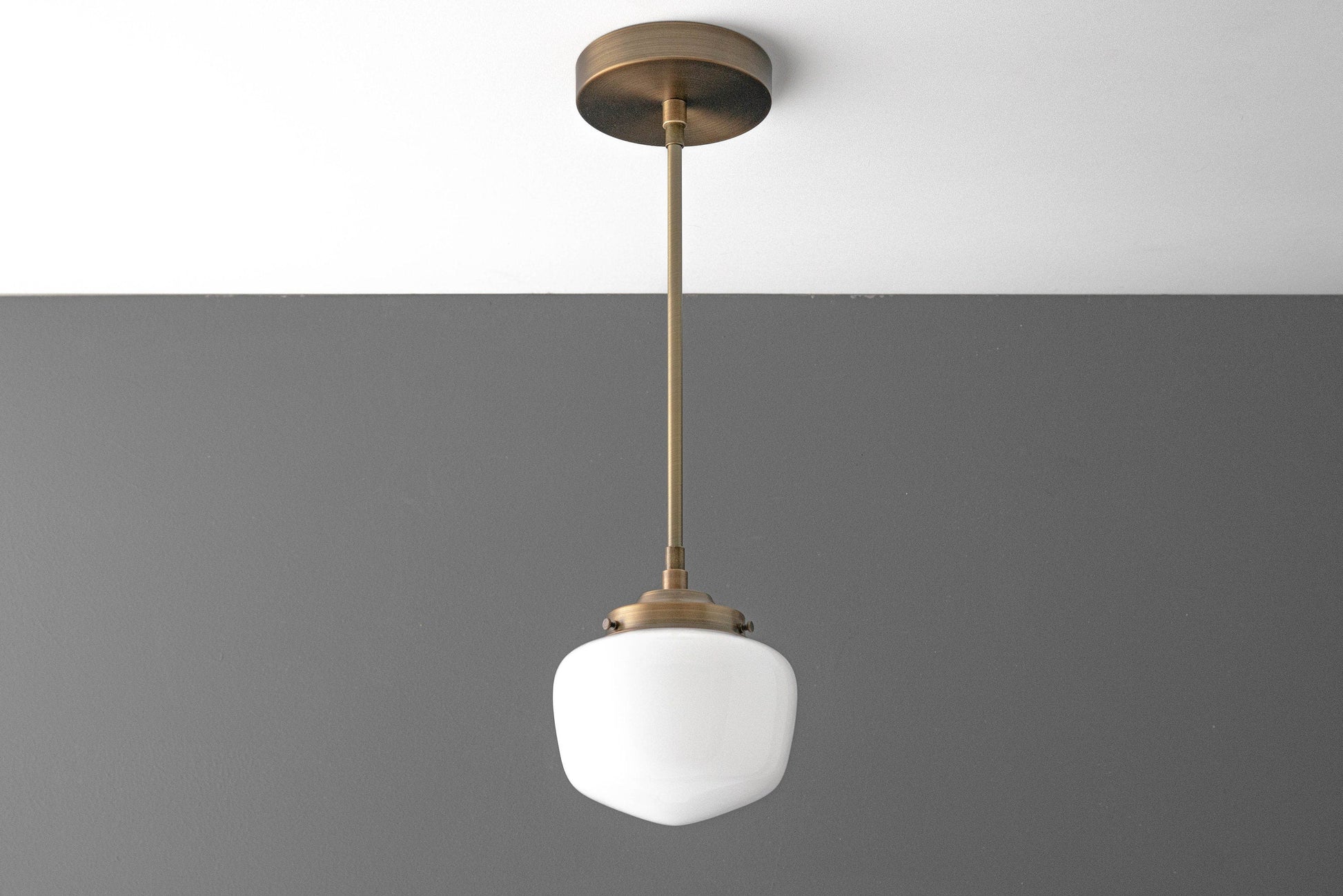 Schoolhouse Pendant - Small Schoolhouse Shade - Brass Pendant - Opal Schoolhouse Pendant - pendant Lighting - Model No. 0245