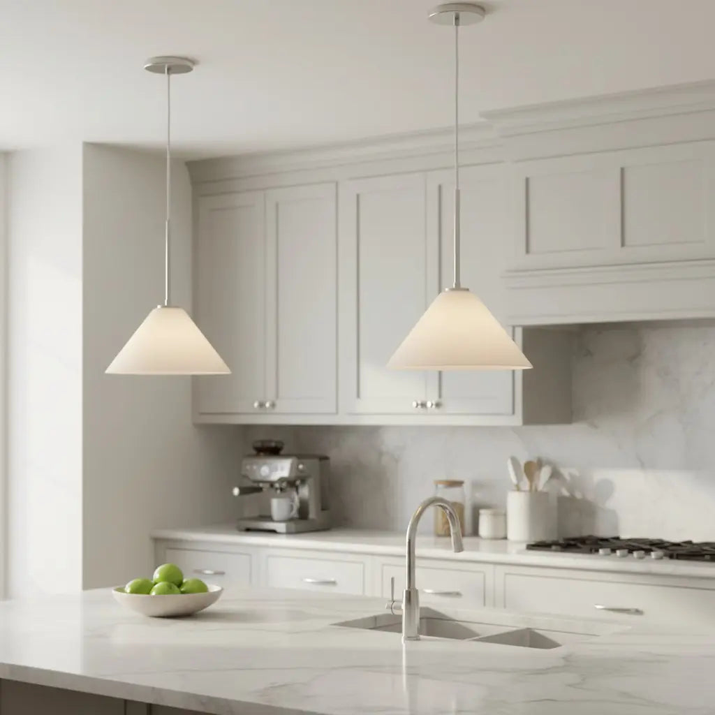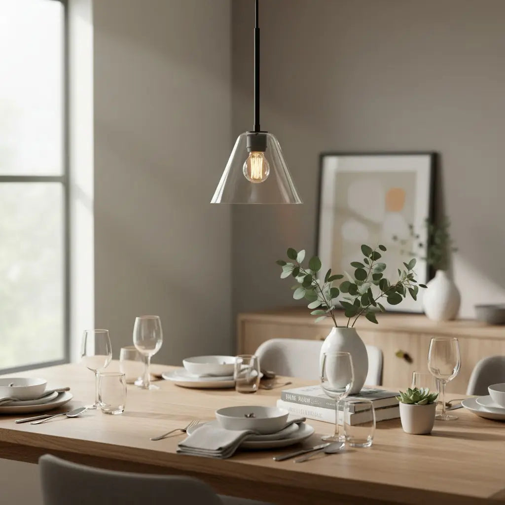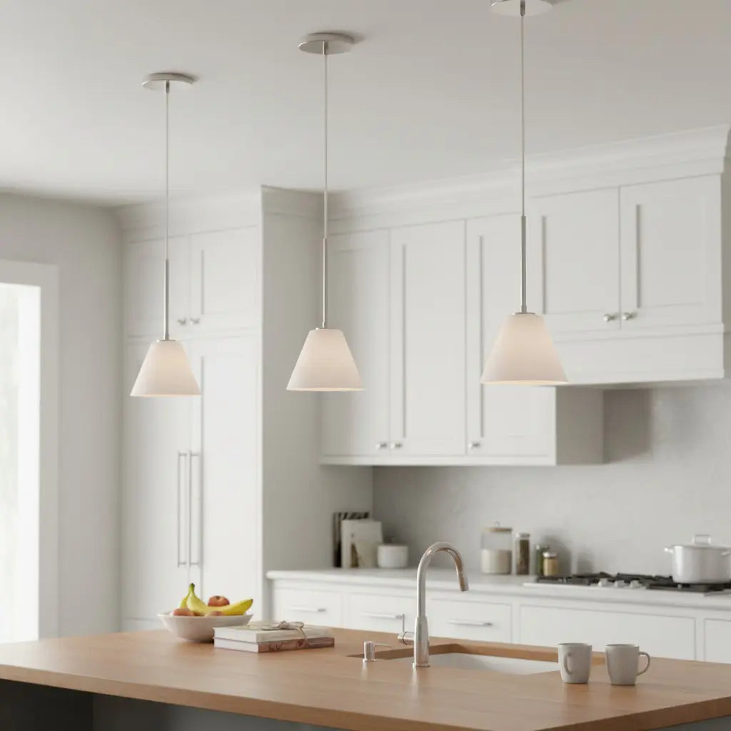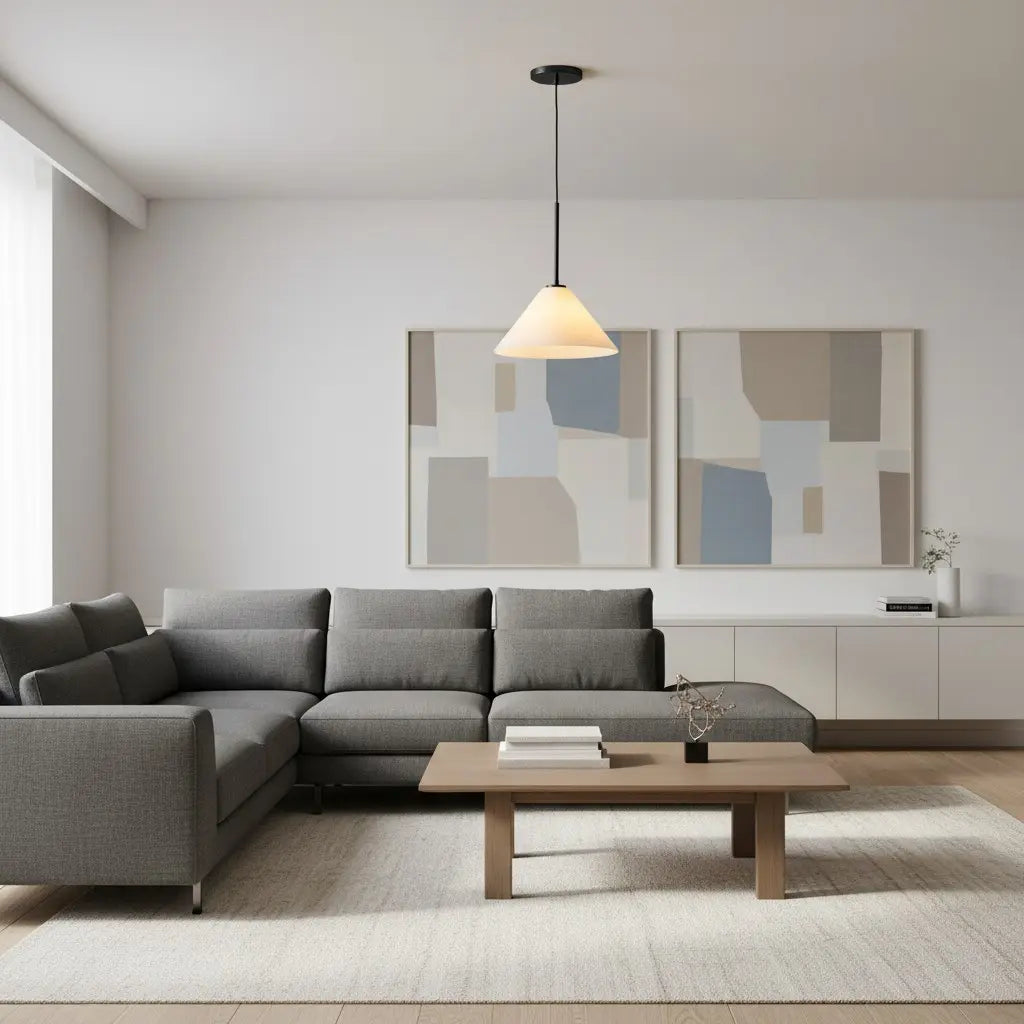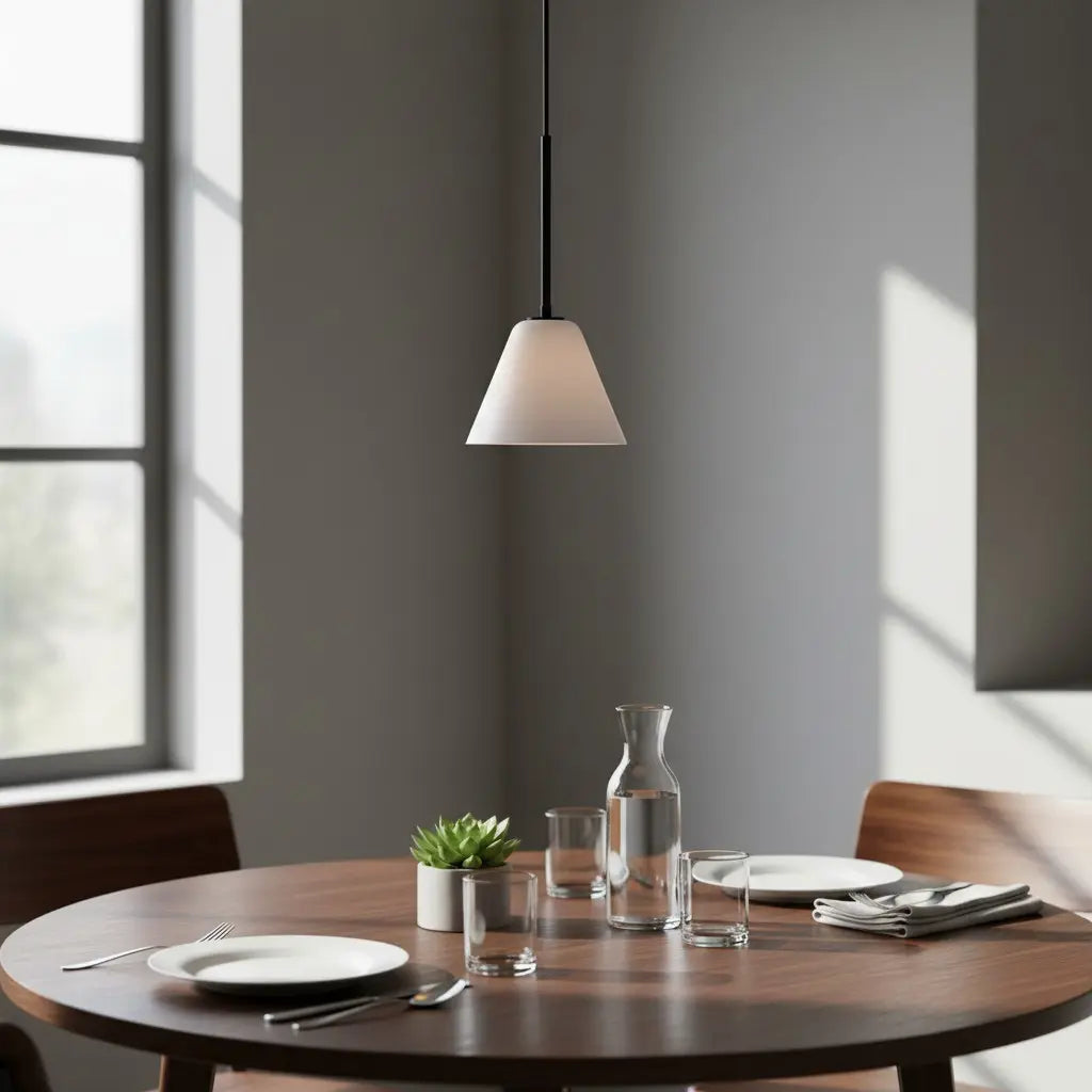 This modern pendant light features a sleek cone silhouette. It blends customizable style with contemporary charm. Ideal for kitchen islands, dining tables, or modern living spaces.