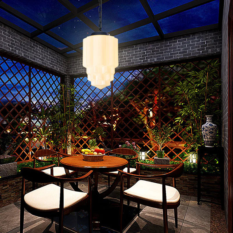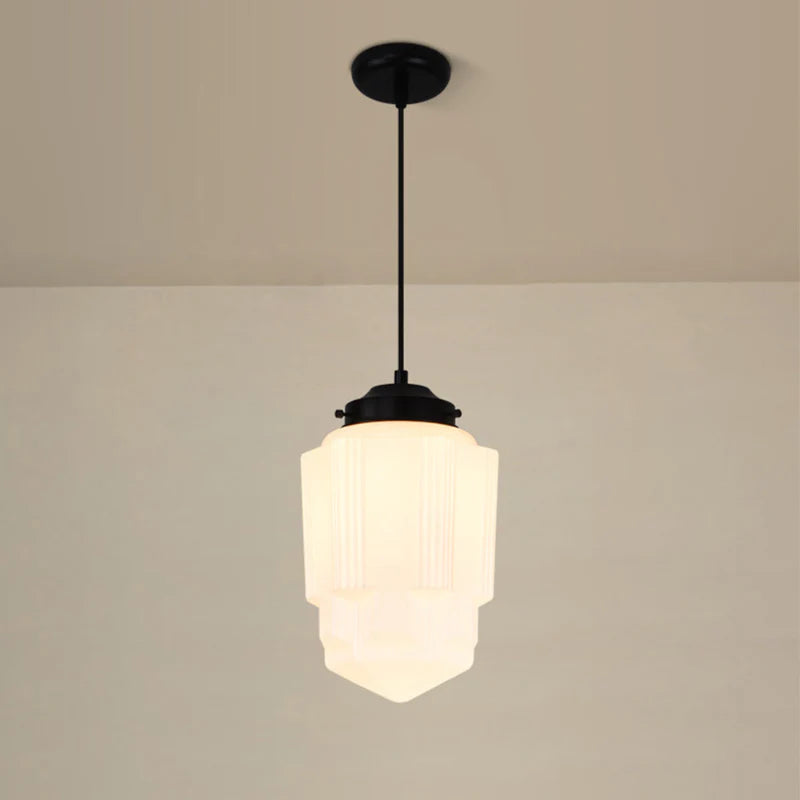 Vintage Art Deco Geometric Milk Glass Pendant Light
