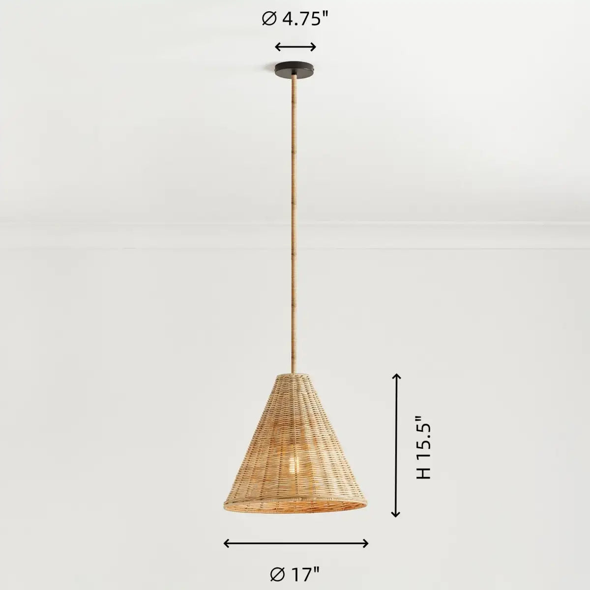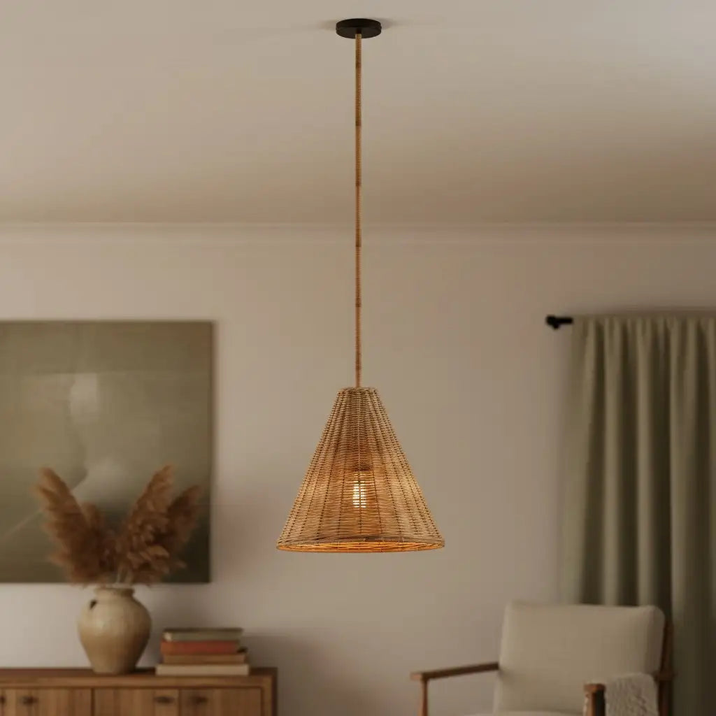 Ilario Rustic Woven Rattan Cone Pendant Light