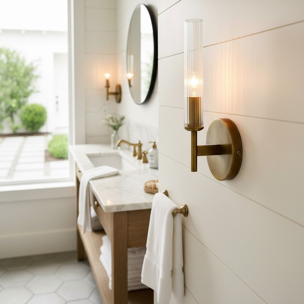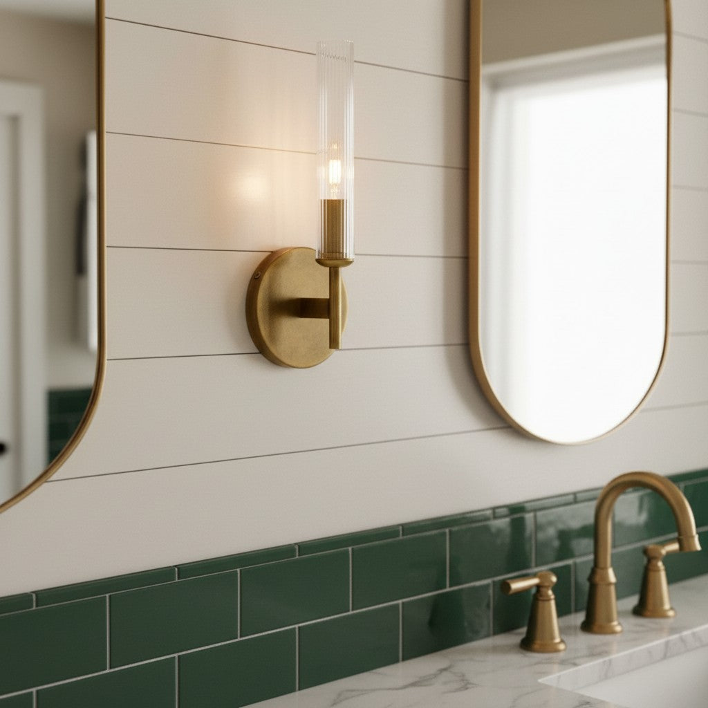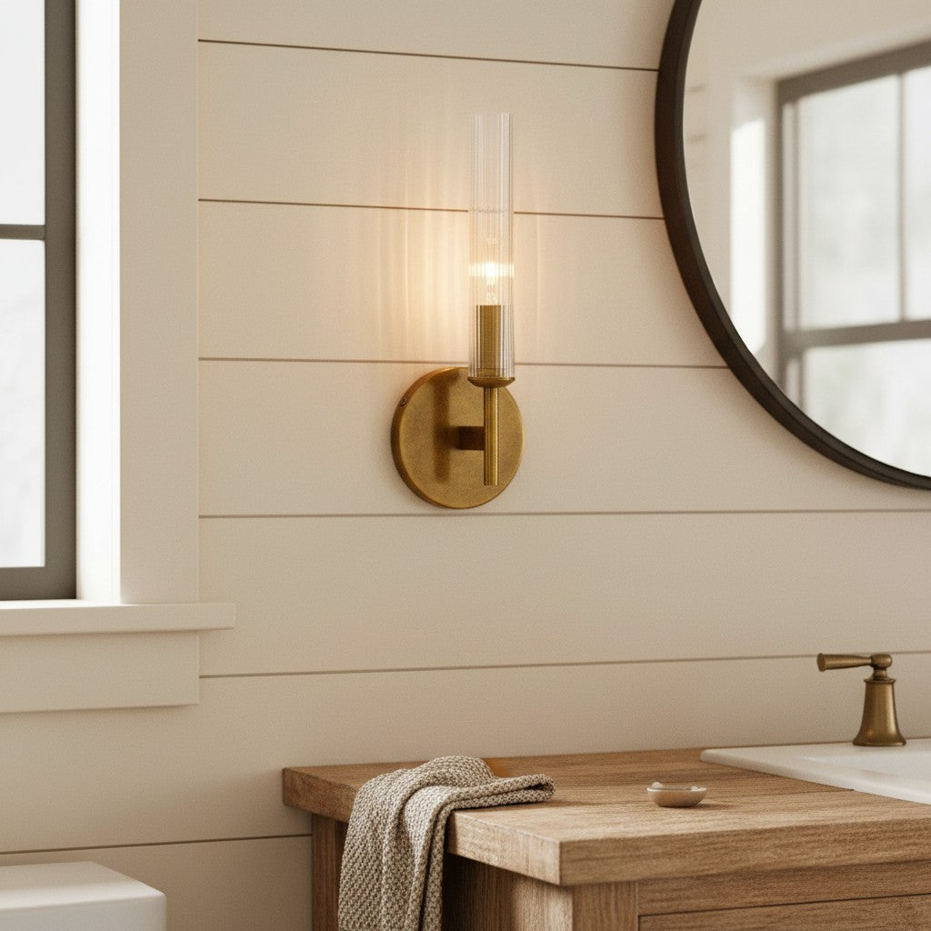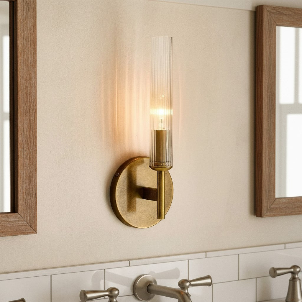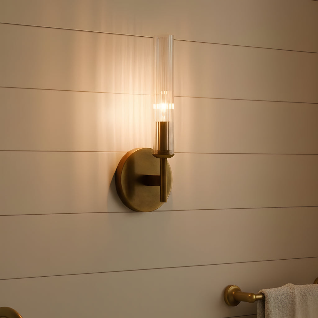 Farmhouse Tube Ribbed Glass Bathroom Vanity Wall Sconce