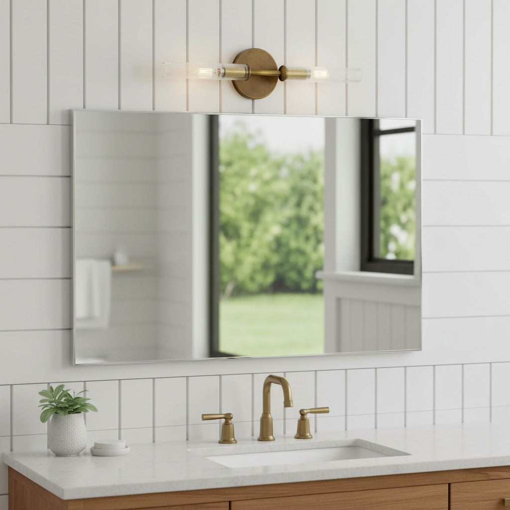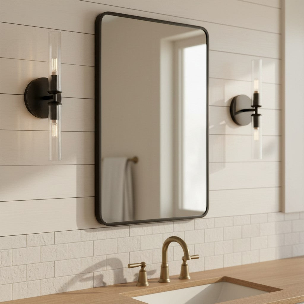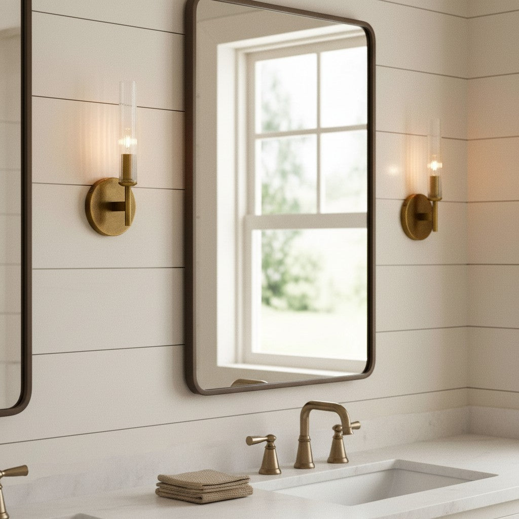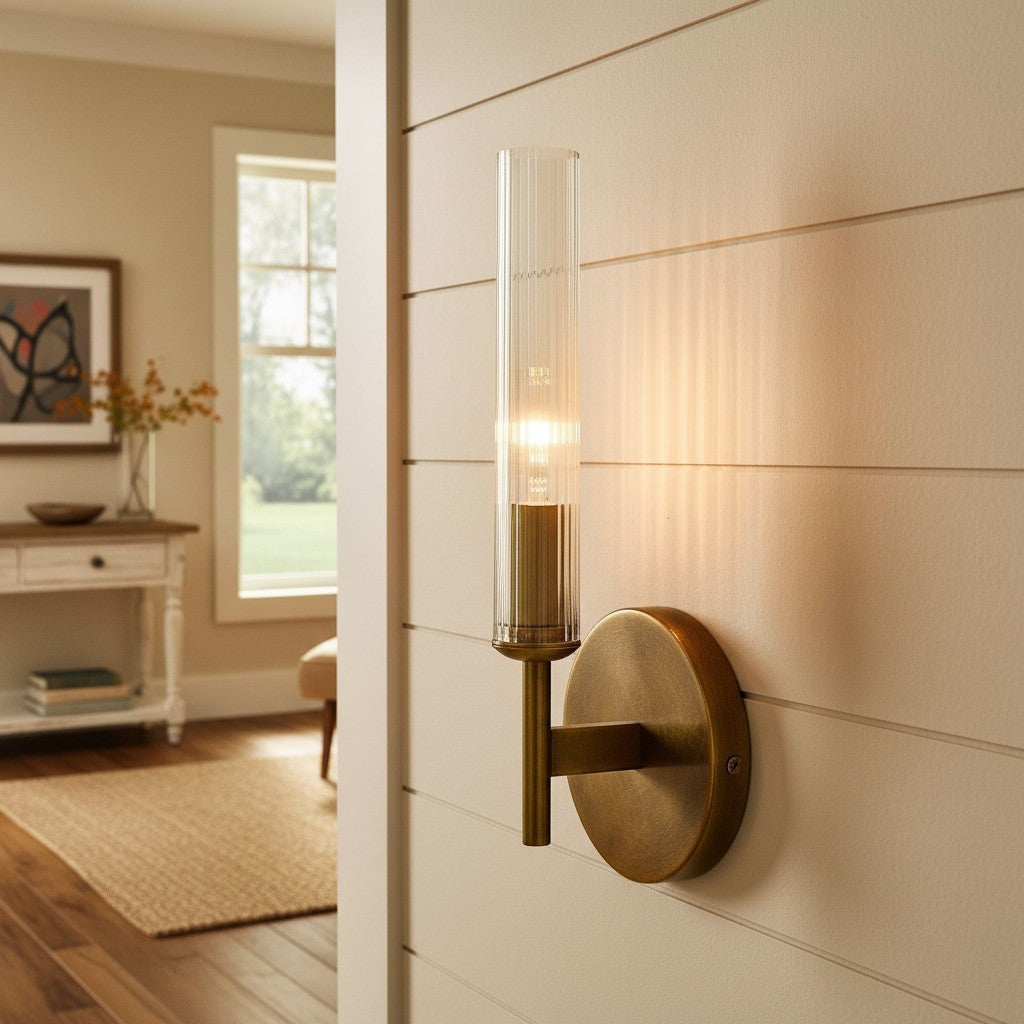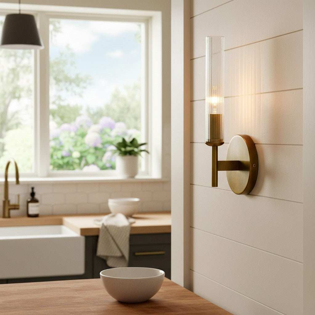 Farmhouse Tube Ribbed Glass Bathroom Vanity Wall Sconce