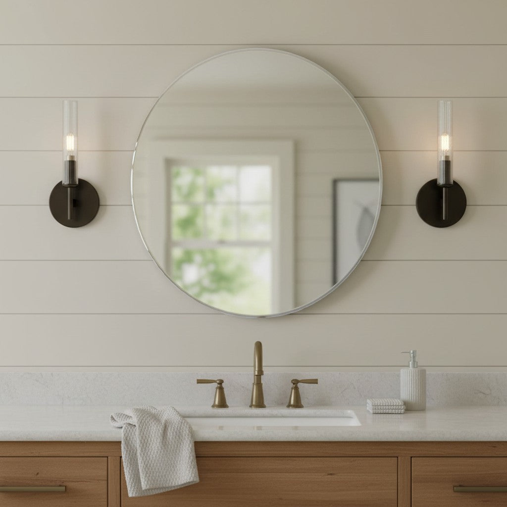 Space-Saving Profile – Slim tubular silhouette is ideal for narrow walls, mirrors, or vanities.