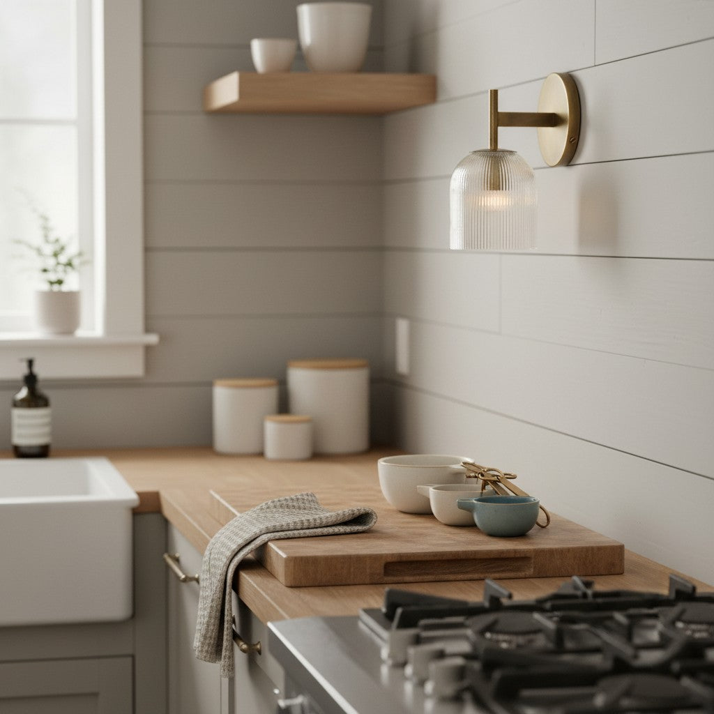 🔸 Ribbed Glass Diffuser Textured glass softens the light while adding a handcrafted touch.