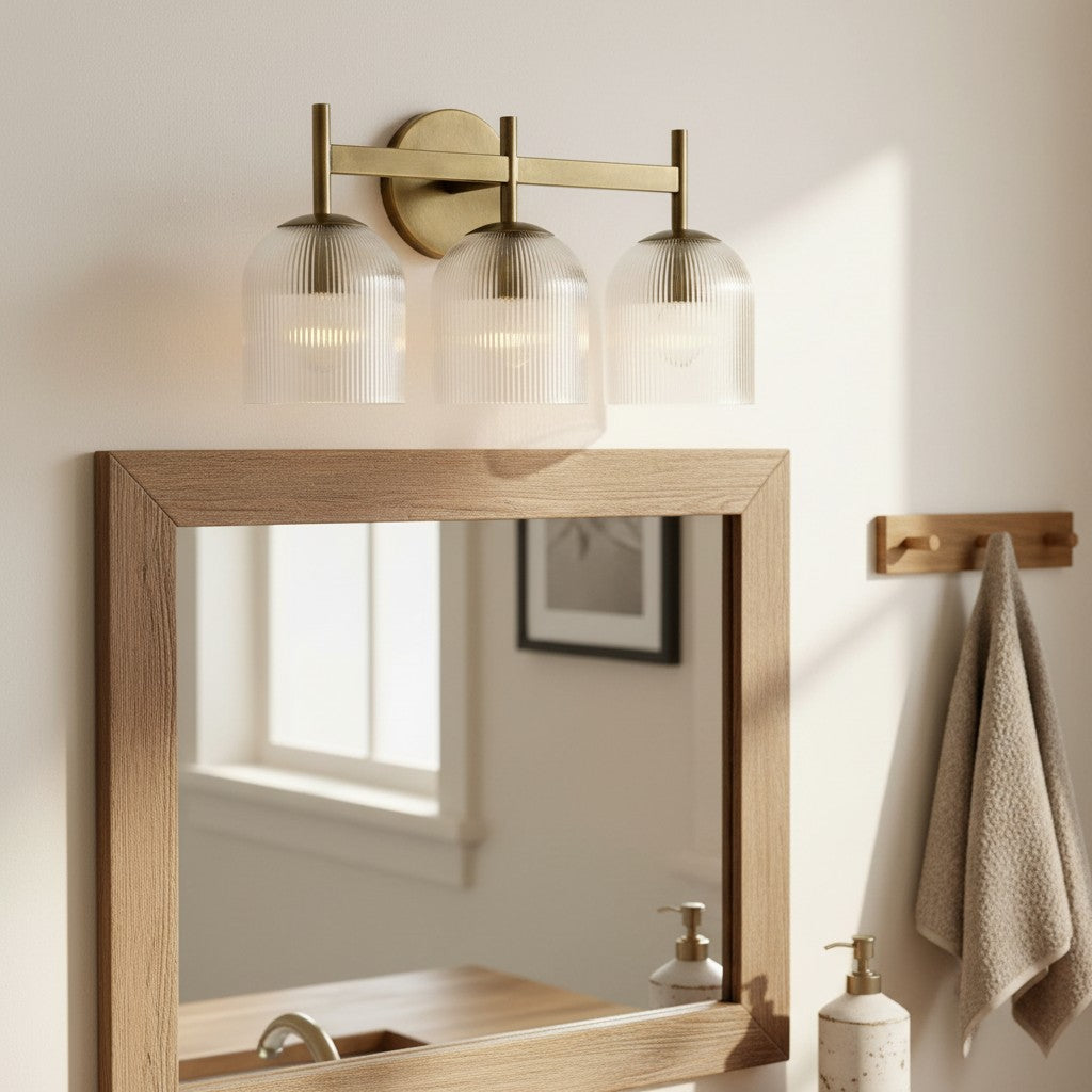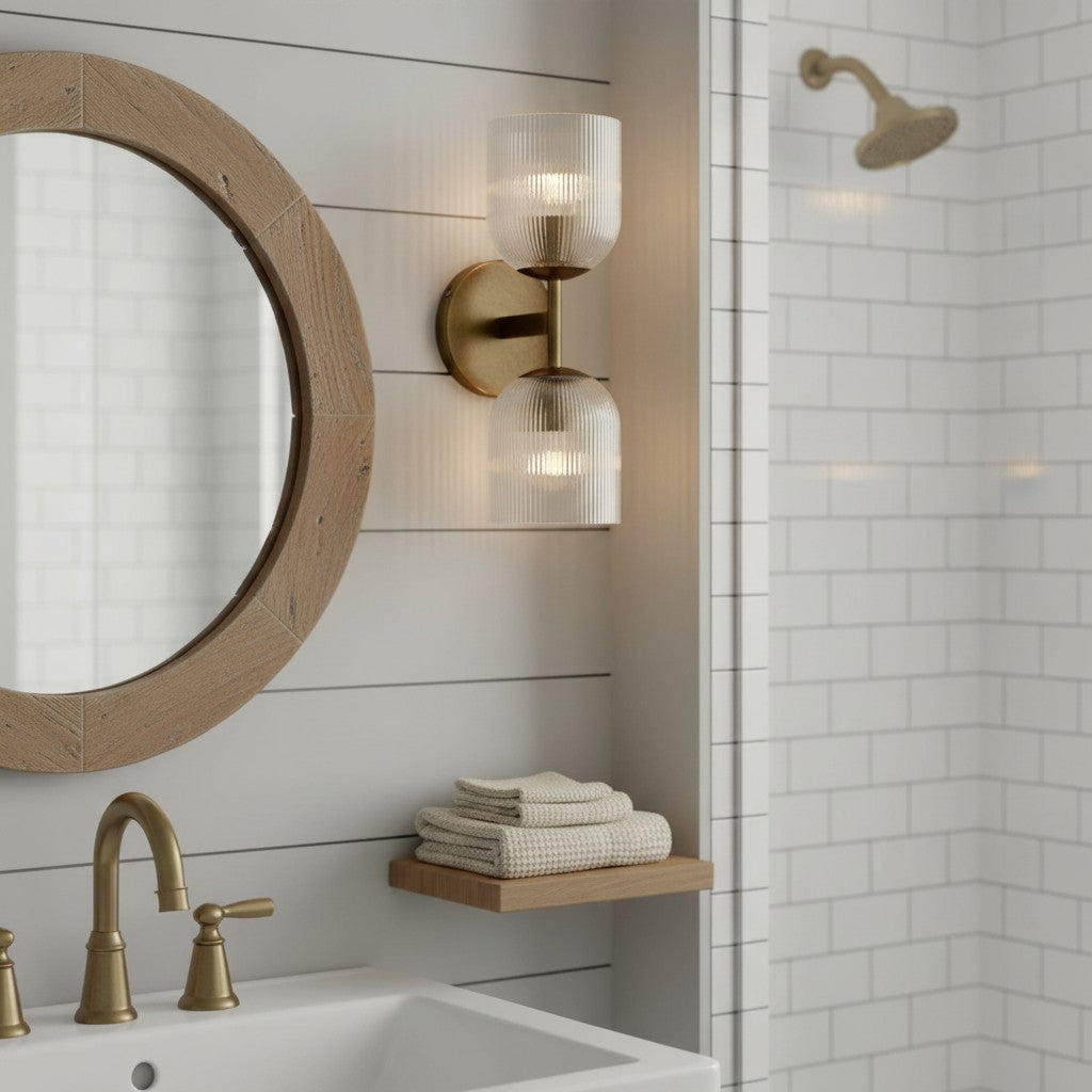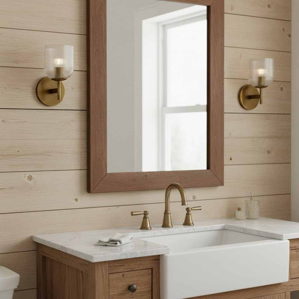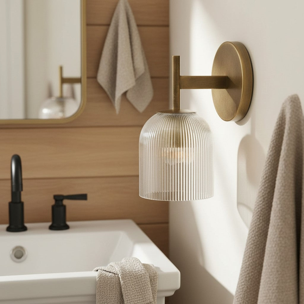 Modern Farmhouse Cooper Ribbed Glass Wall Sconce for Bathroom