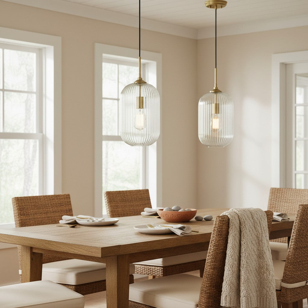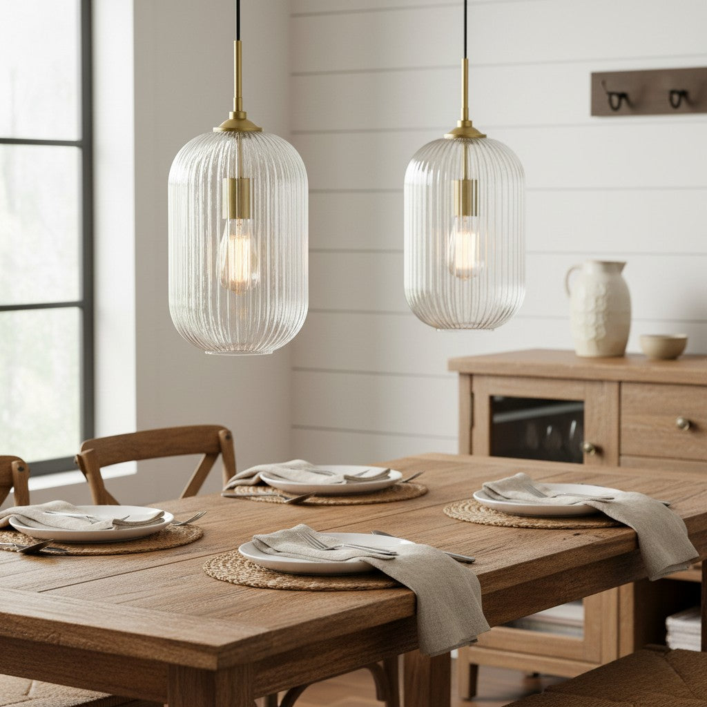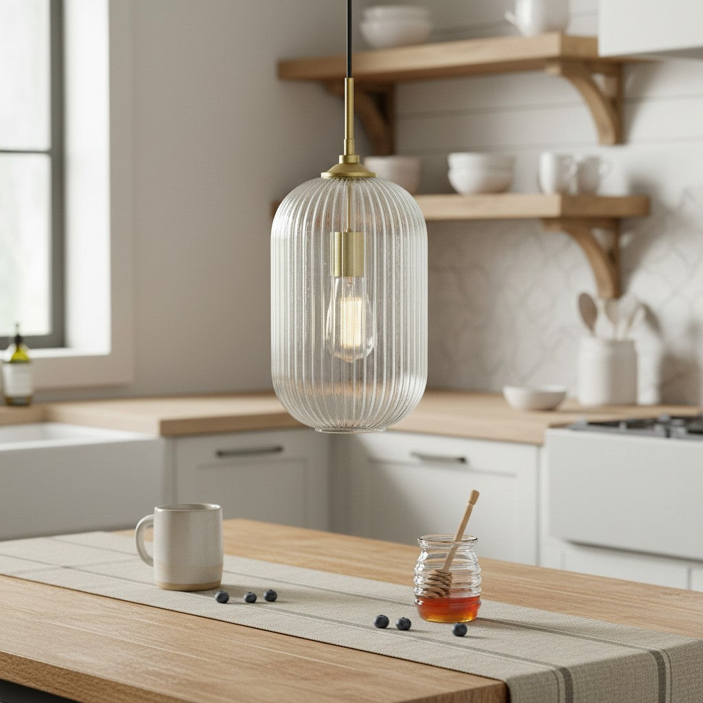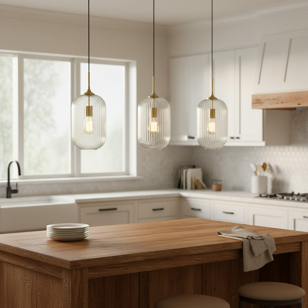 Modern Farmhouse Ribbed Clear Glass Pendant Light for Kitchen Island