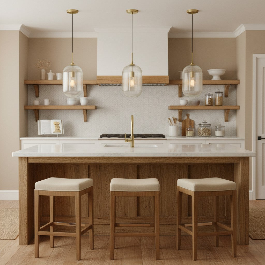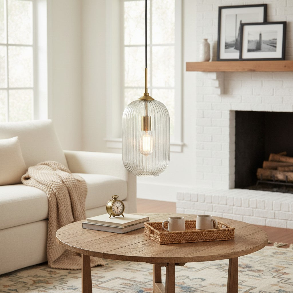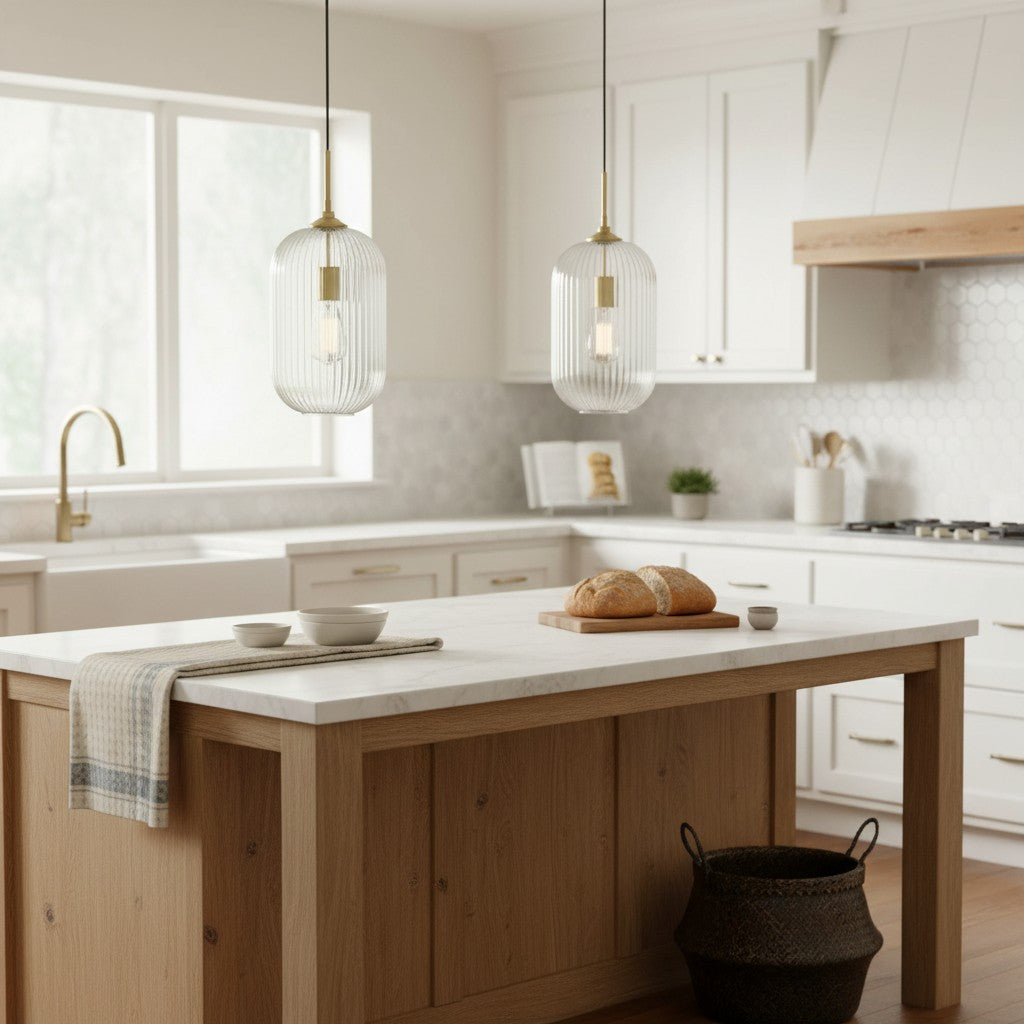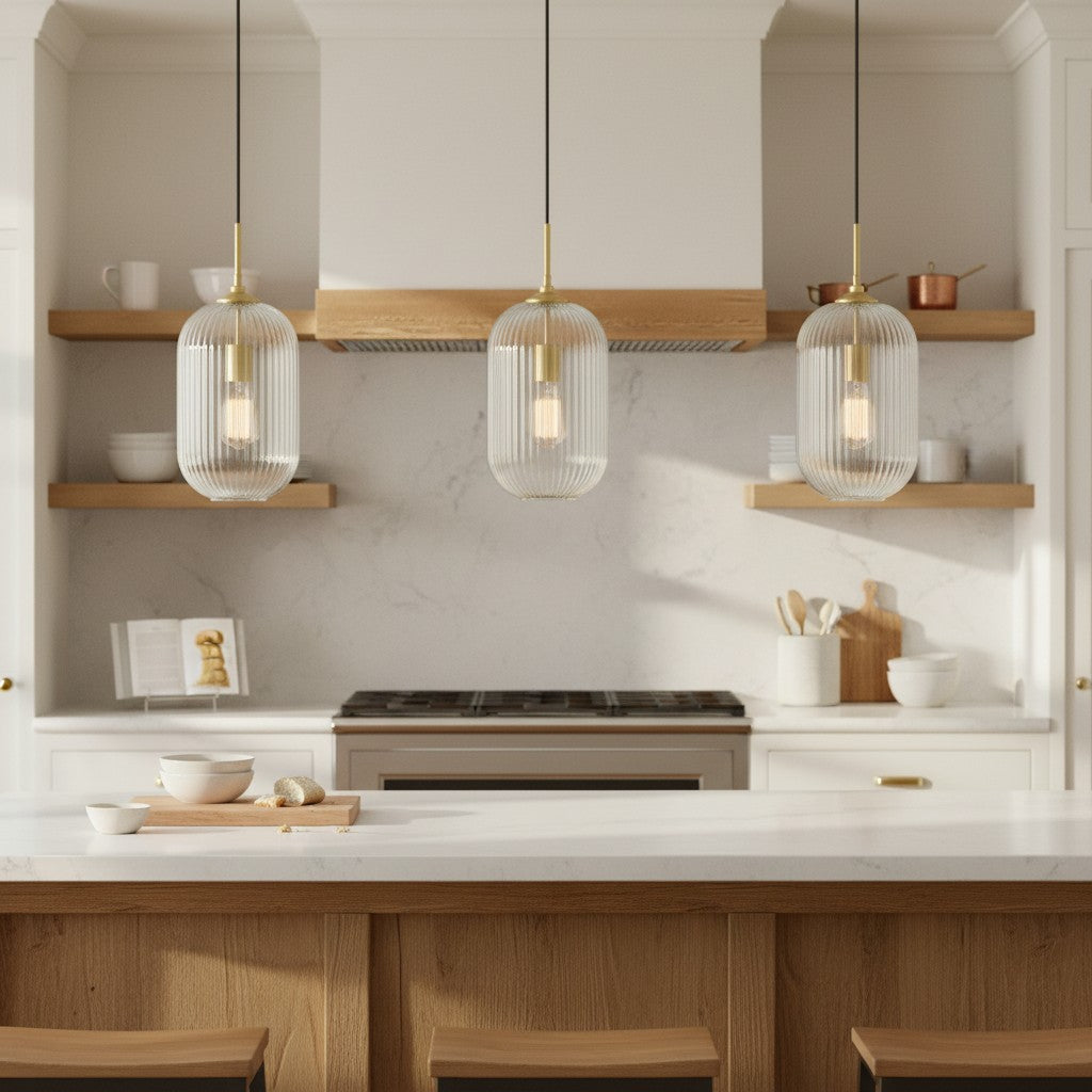 Modern Farmhouse Ribbed Clear Glass Pendant Light for Kitchen Island