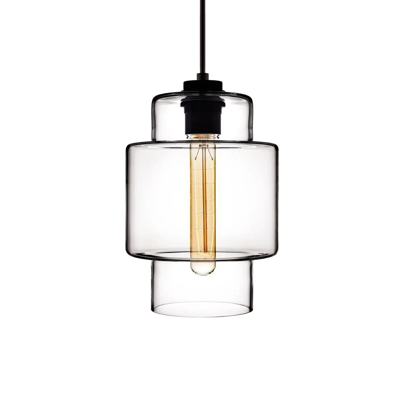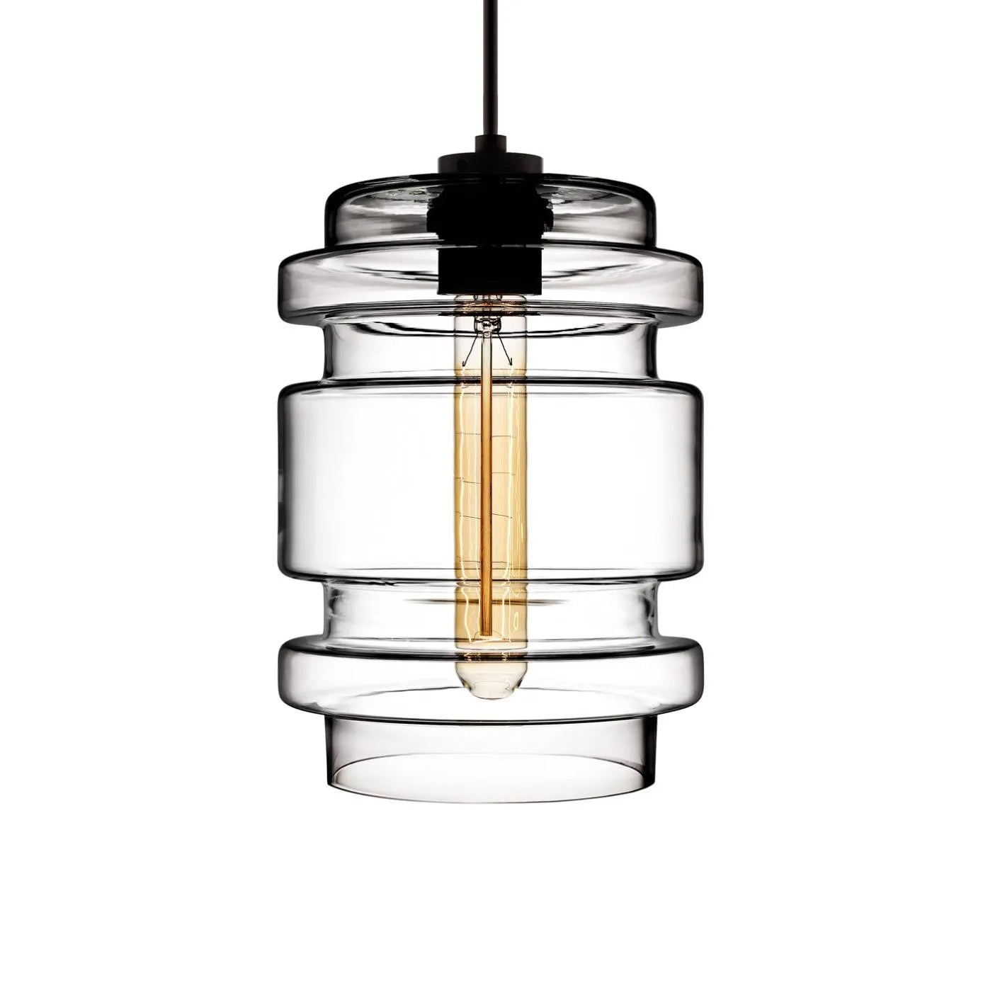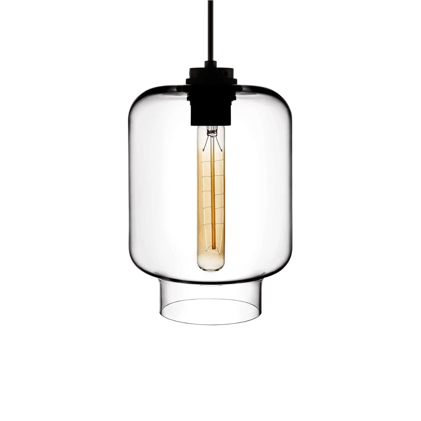 Elevate interiors with the this modern pendant light, featuring a sleek cylindrical glass shade suspended from a refined metal frame. Its clean lines and geometric profile blend contemporary and classic design.