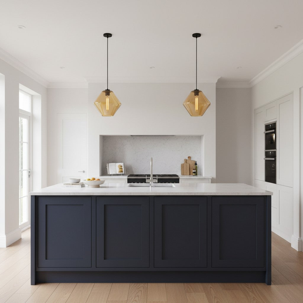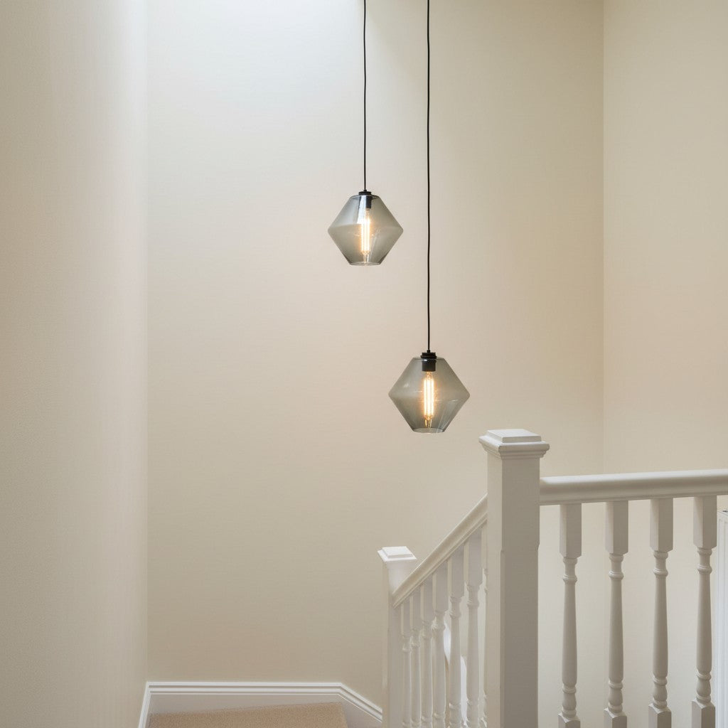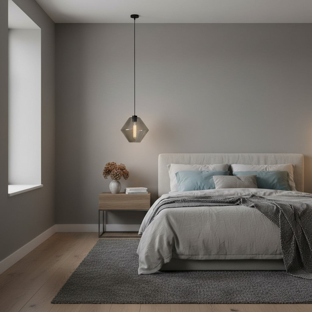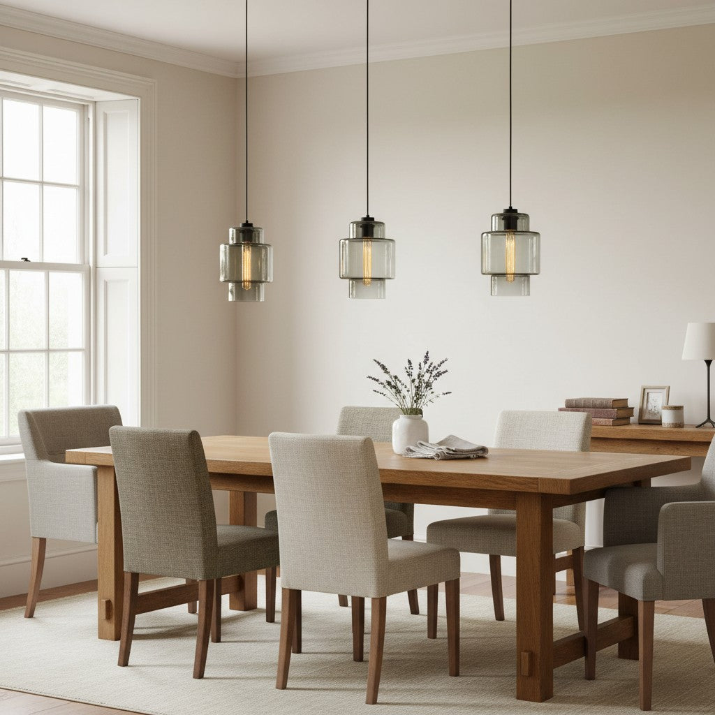Elevate interiors with the this modern pendant light, featuring a sleek cylindrical glass shade suspended from a refined metal frame. Its clean lines and geometric profile blend contemporary and classic design.