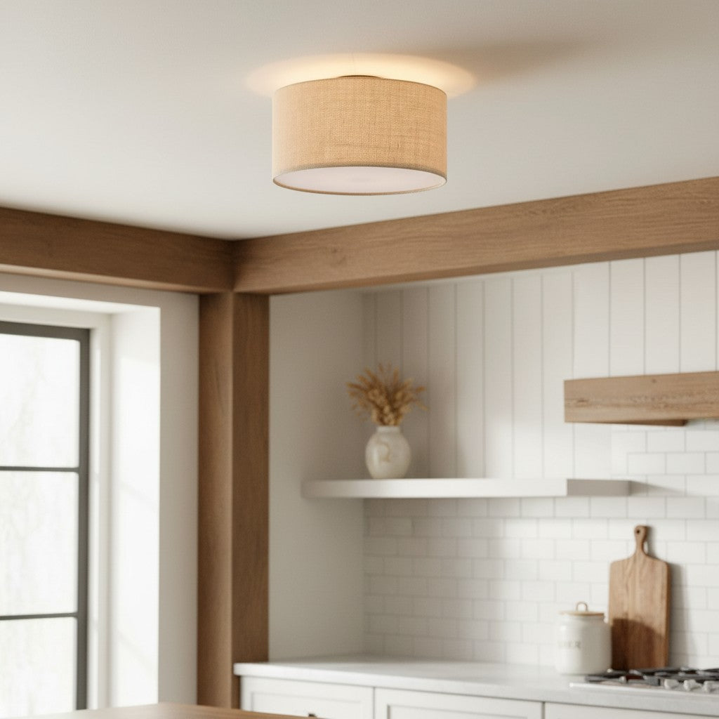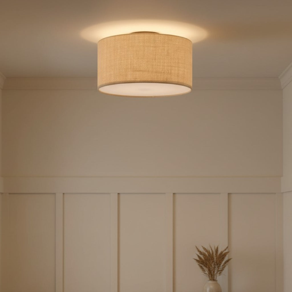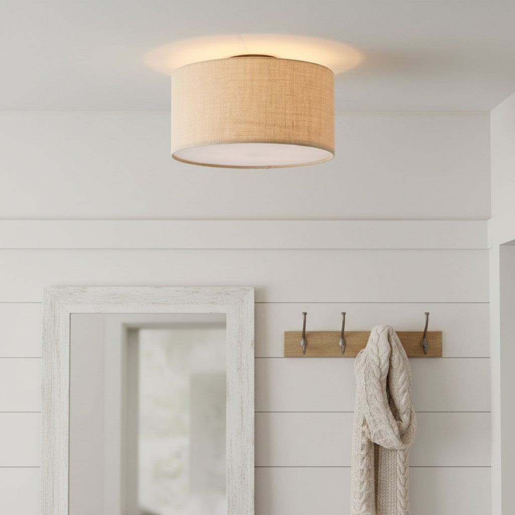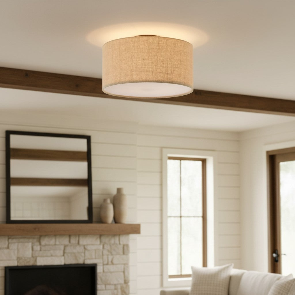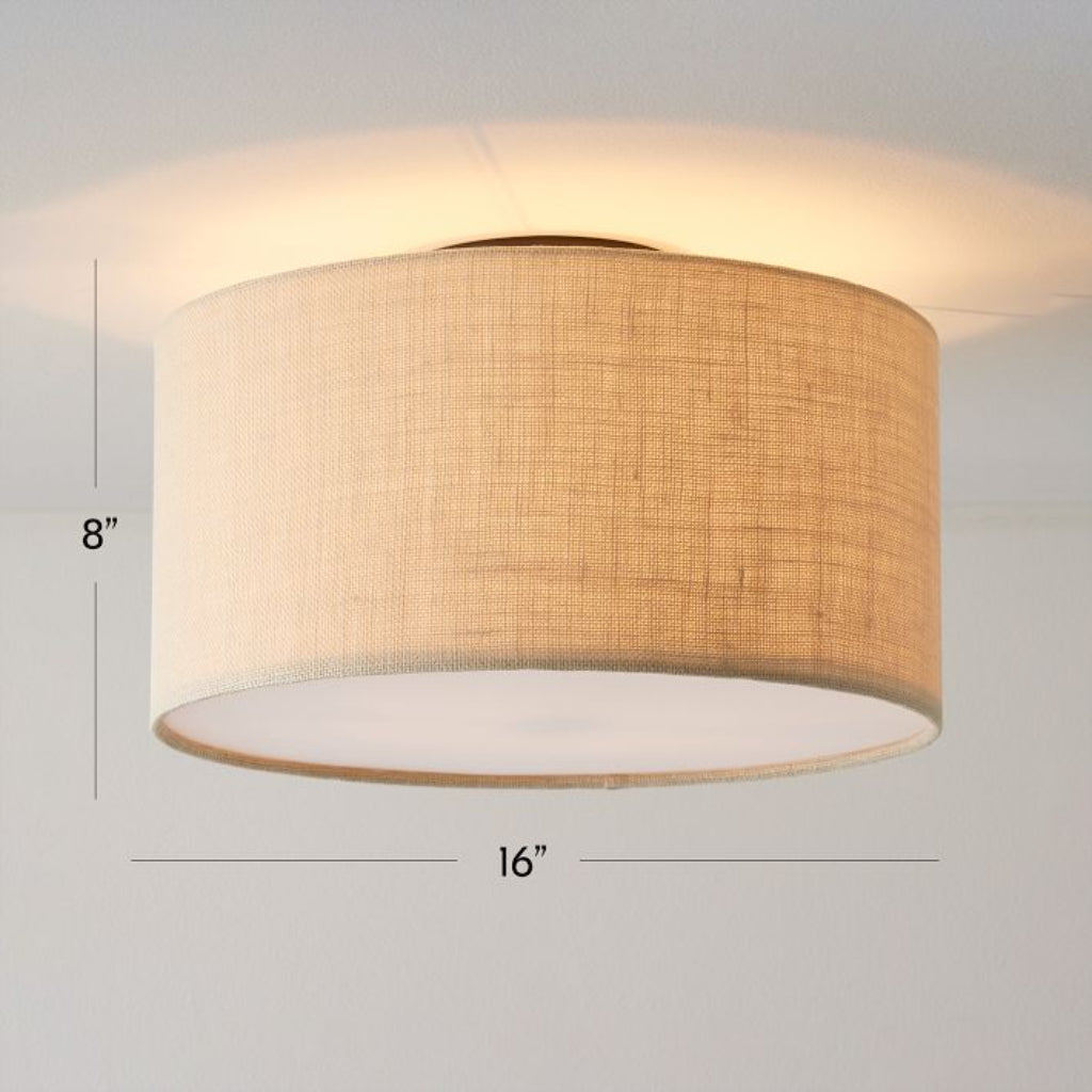 Fabric Natural Linen Drum Shade Flush Mount Ceiling Light