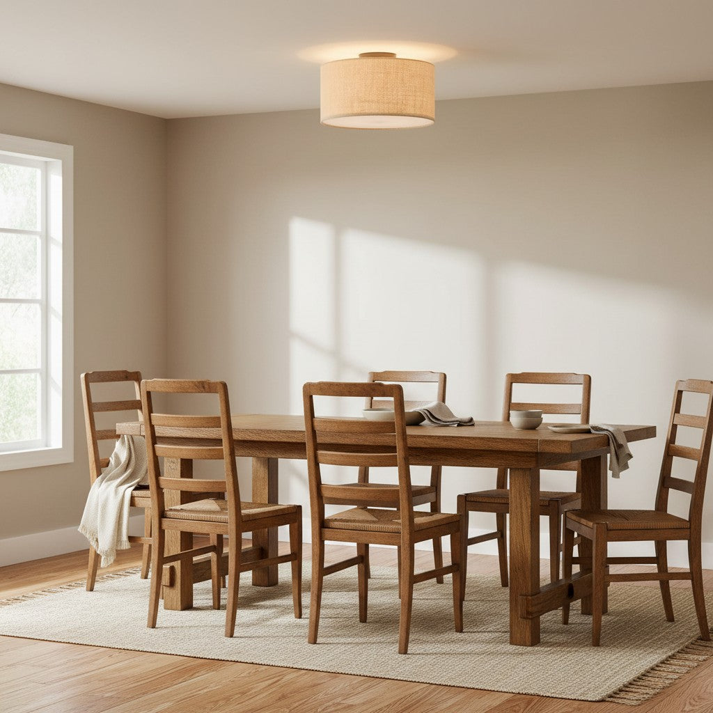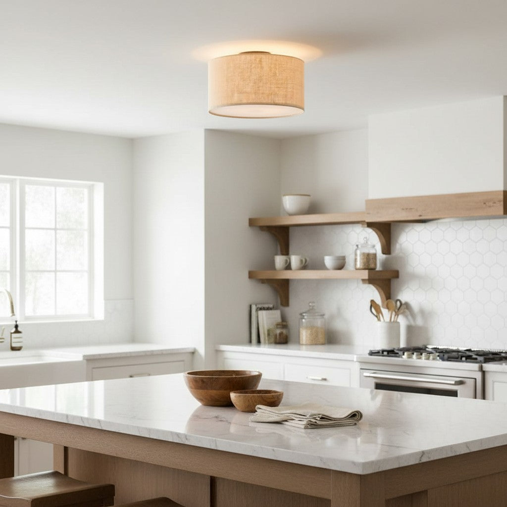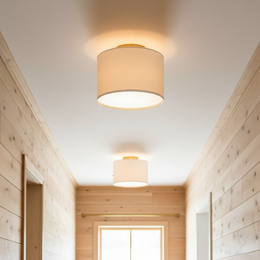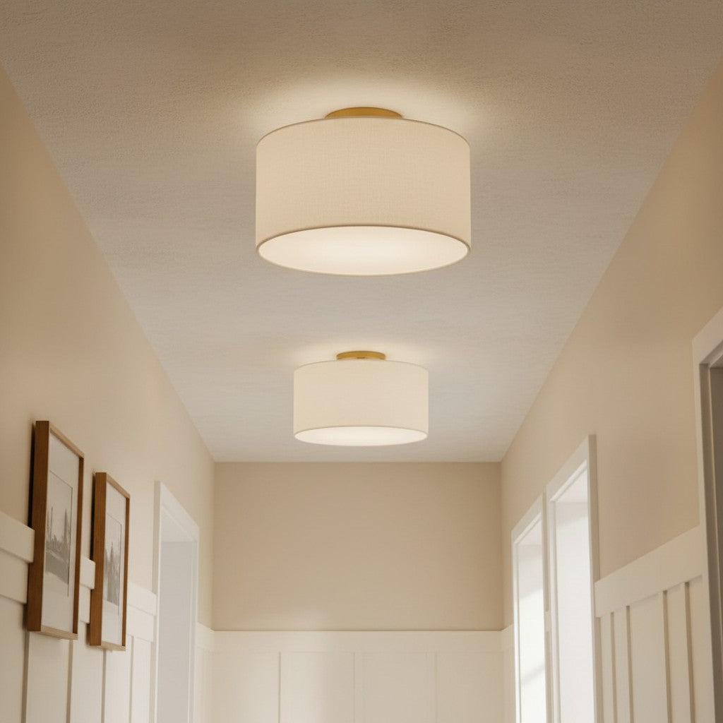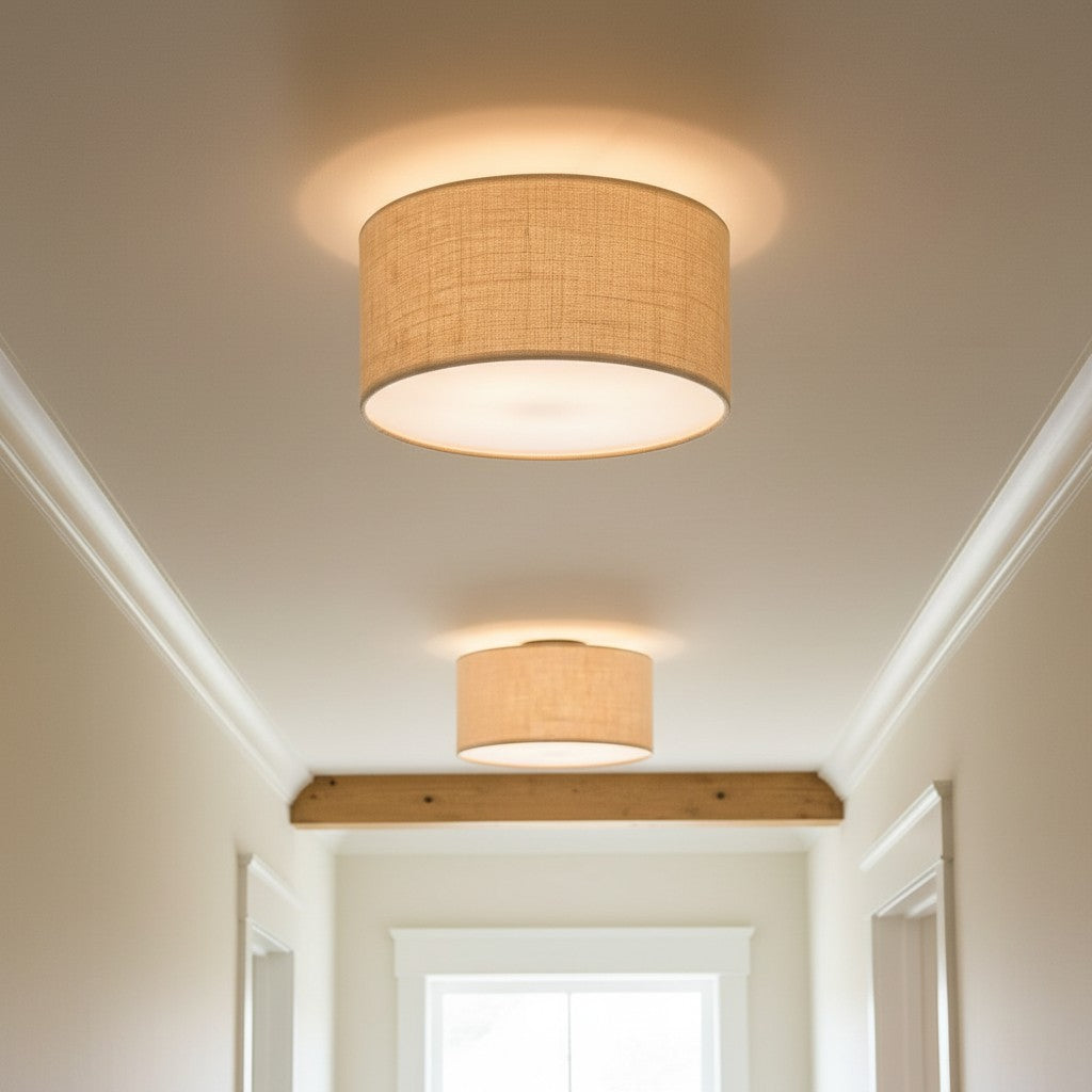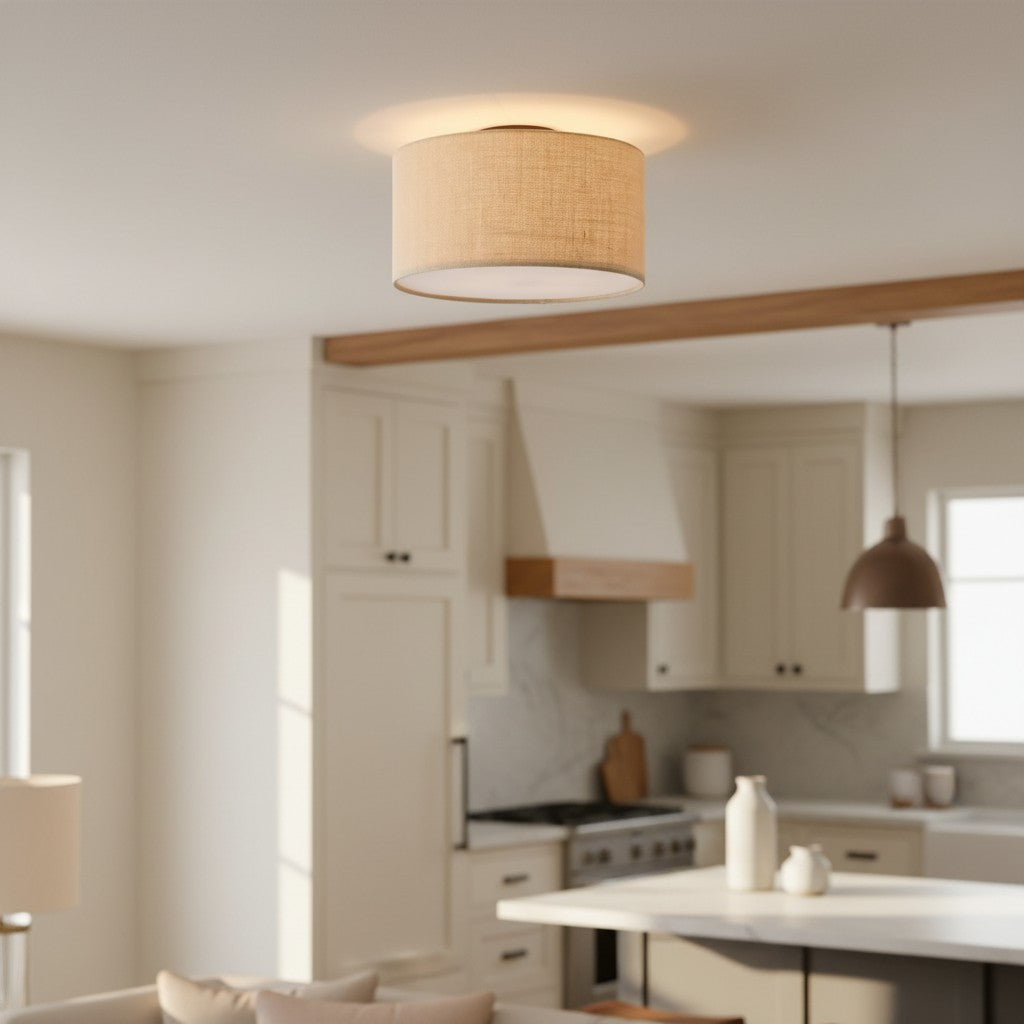 Fabric Natural Linen Drum Shade Flush Mount Ceiling Light