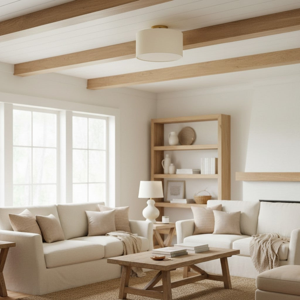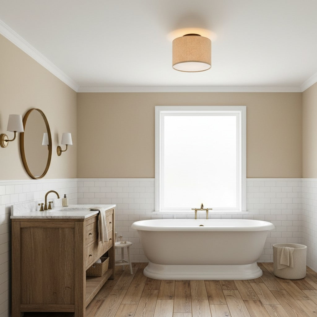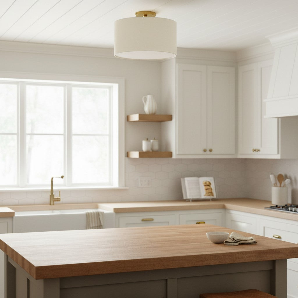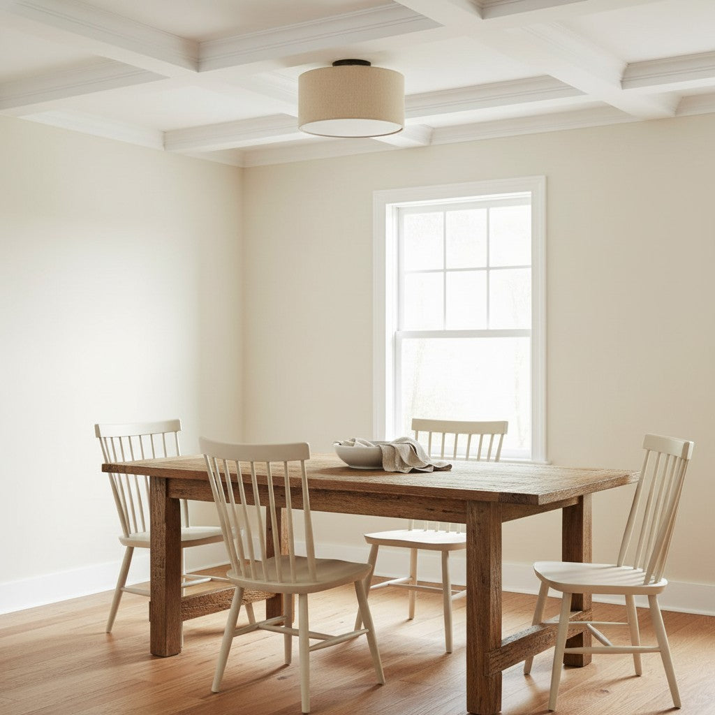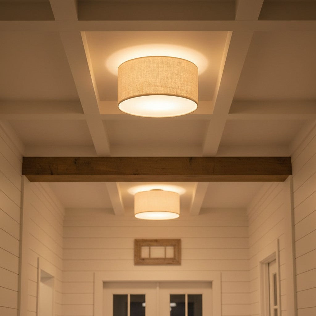 Fabric Natural Linen Drum Shade Flush Mount Ceiling Light