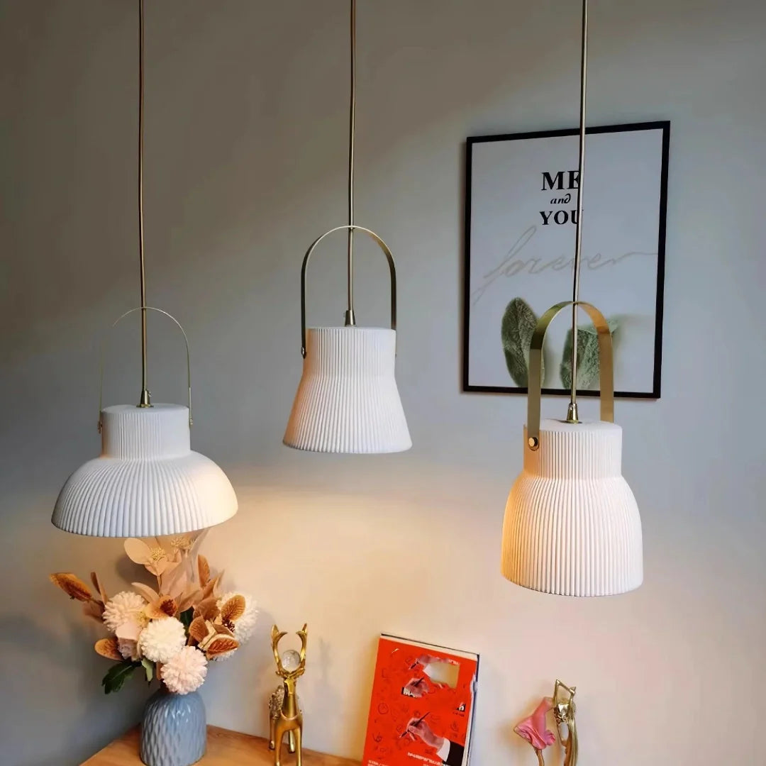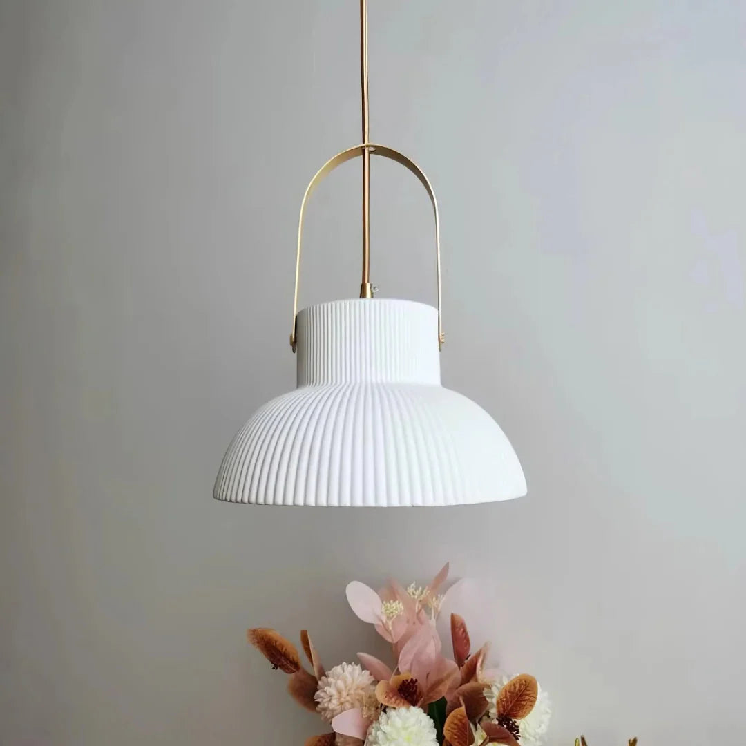 Avery Modern Ribbed Ceramic Bell Pendant Light