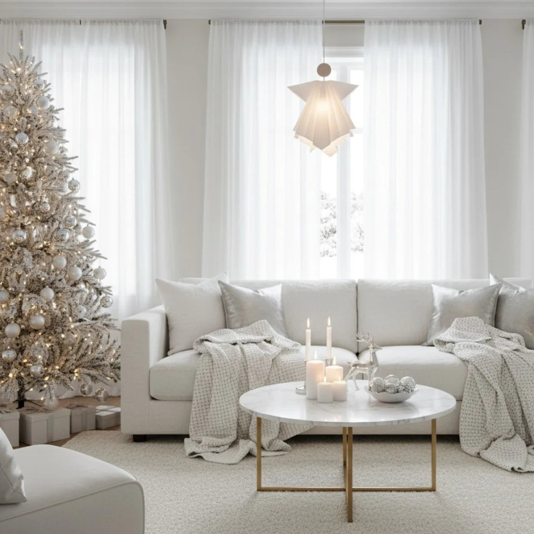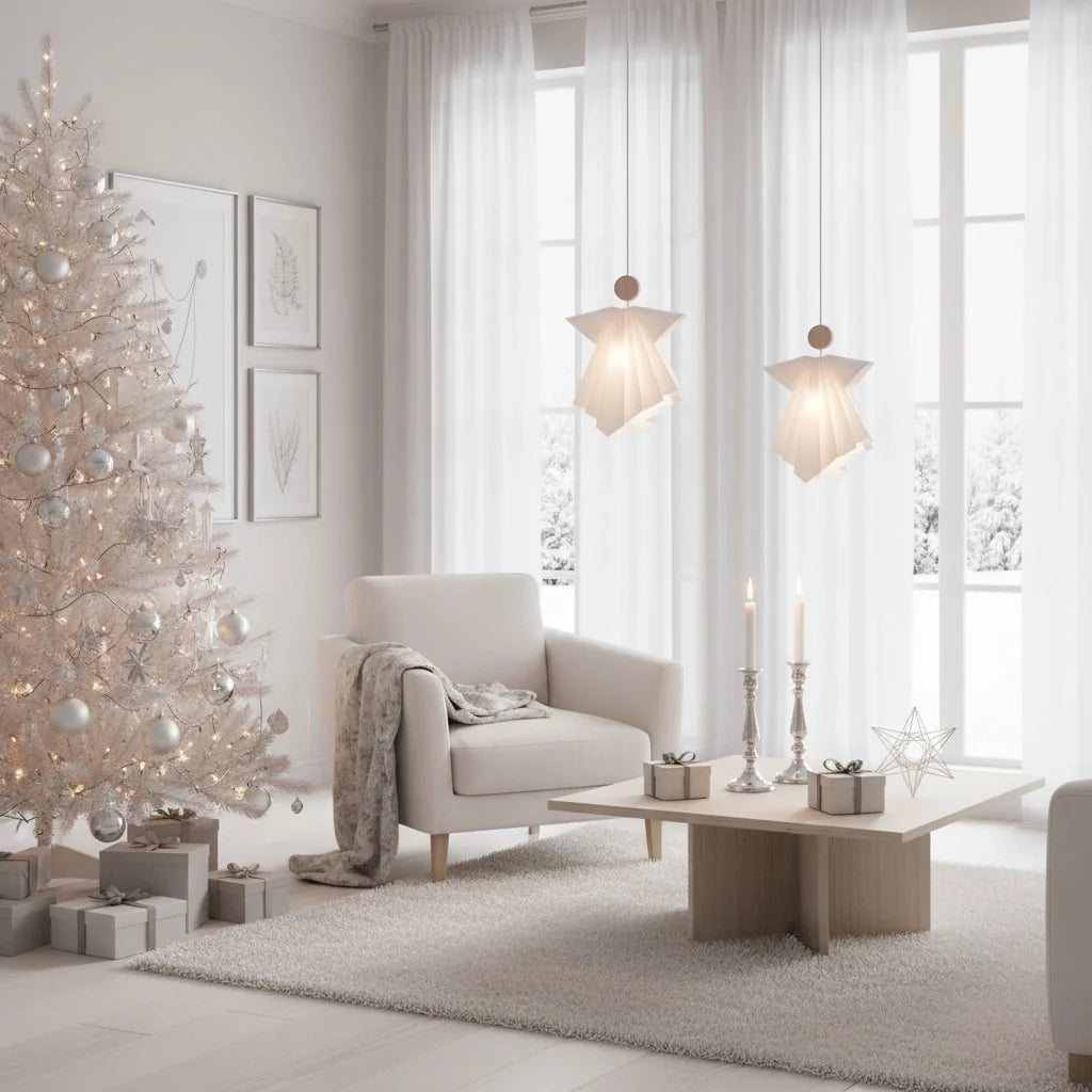 The pleated lampshade creates an interplay of light and shadow as light passes through, bringing a dreamy Christmas atmosphere.