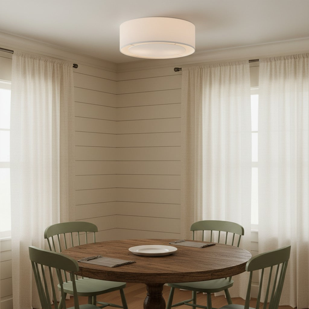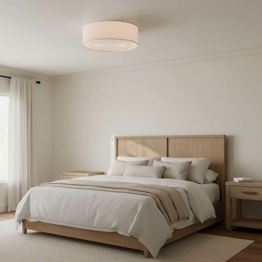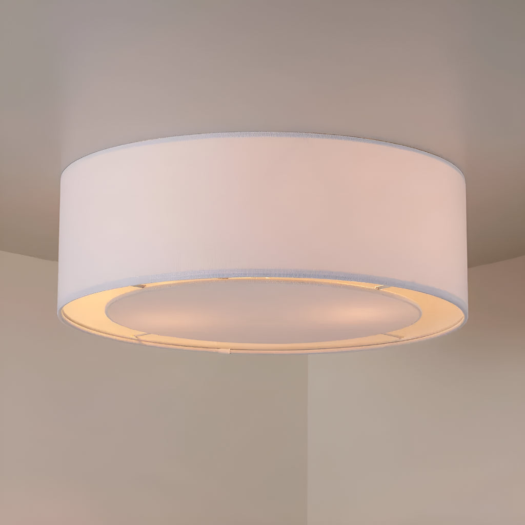 Modern Farmhouse Linen Drum Shade Minimalist Flush Mount Ceiling Light