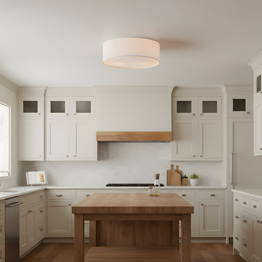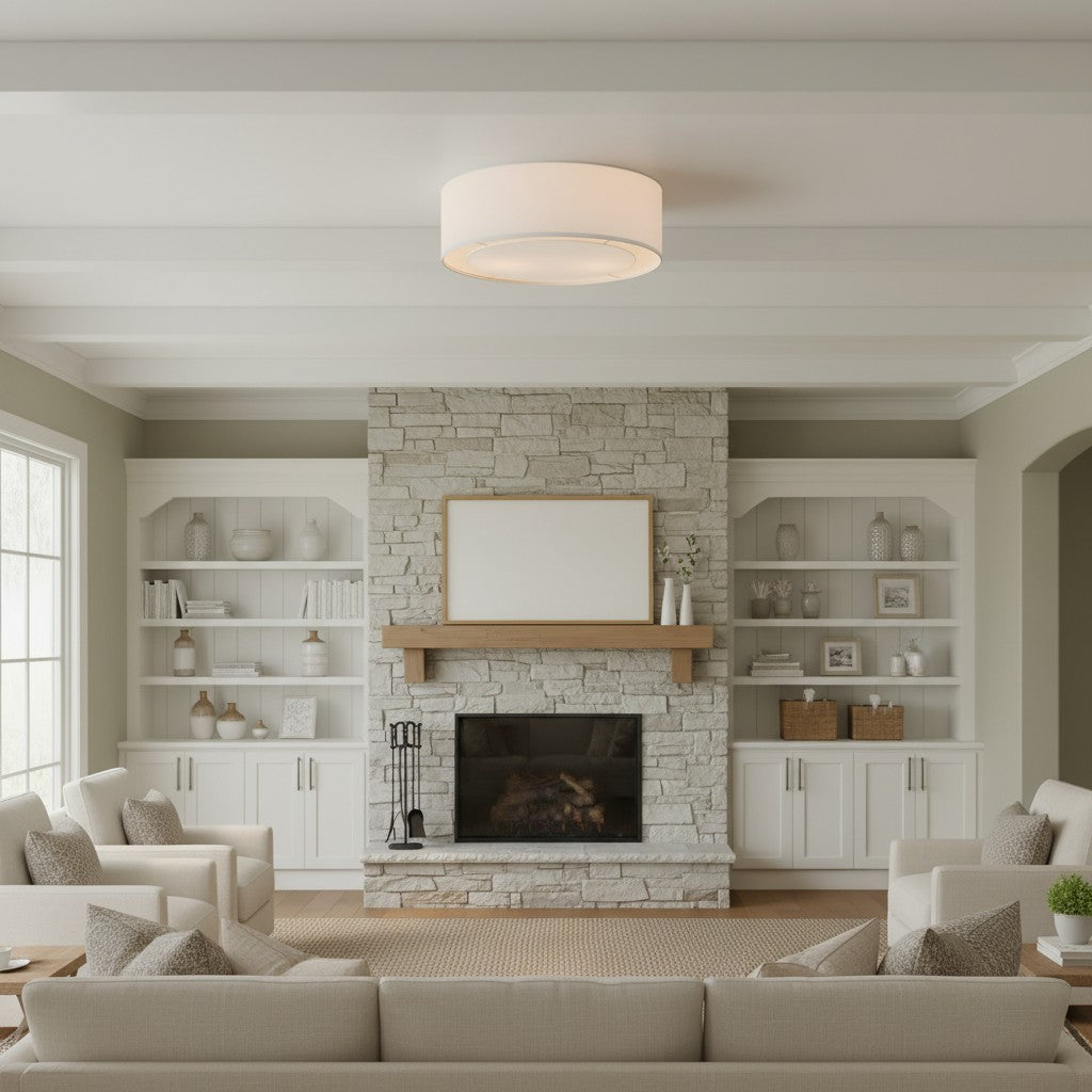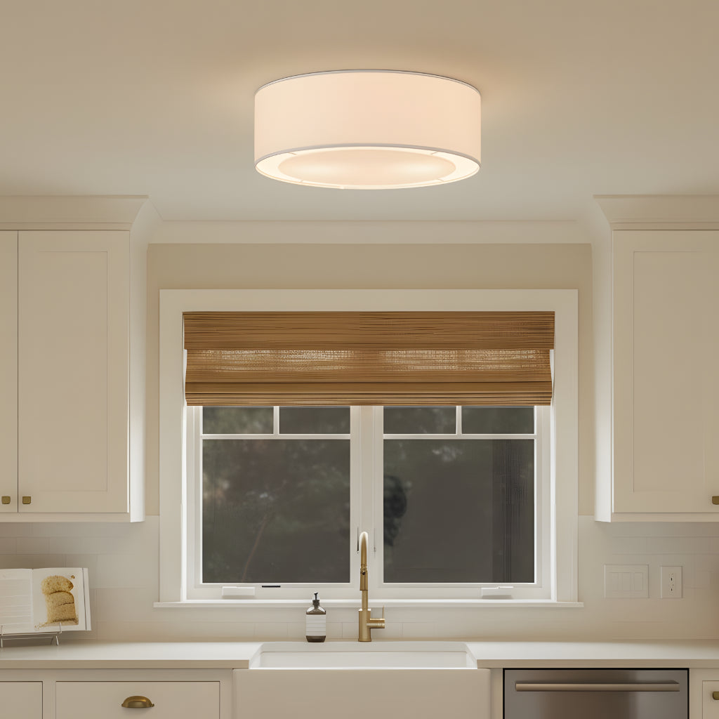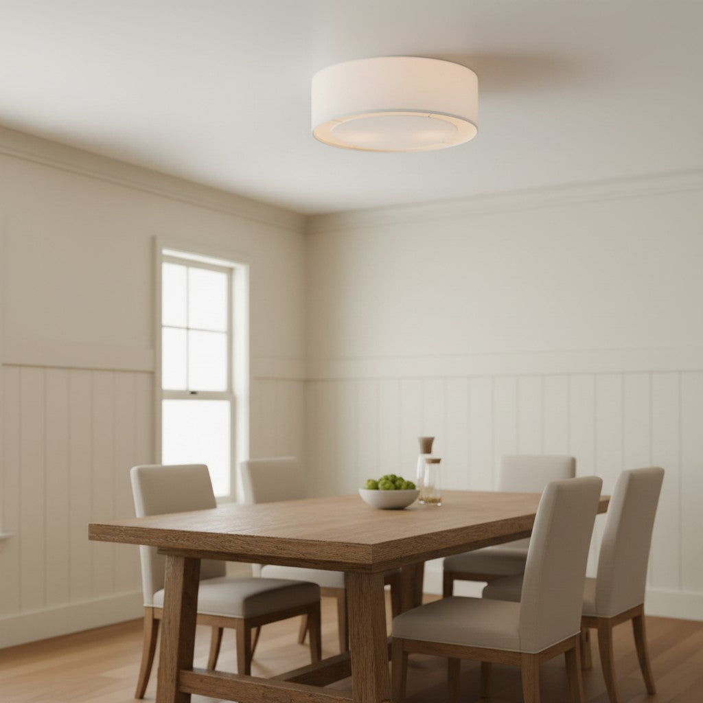 Modern Farmhouse Linen Drum Shade Minimalist Flush Mount Ceiling Light