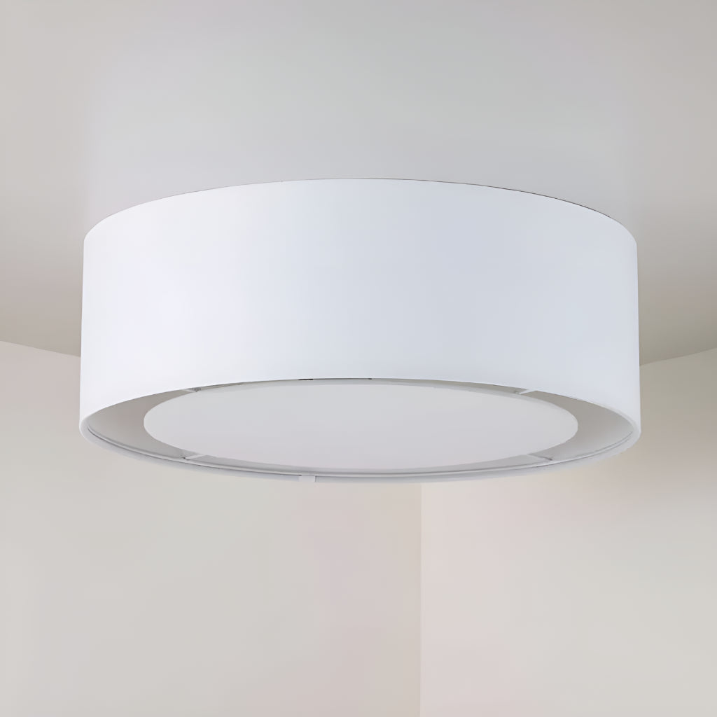 Add Scandinavian charm to your home with this minimalist linen drum ceiling light. Its soft white linen shade and sturdy steel frame cast warm gentle glow.