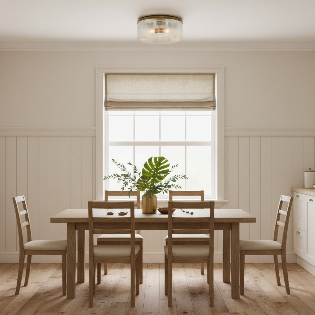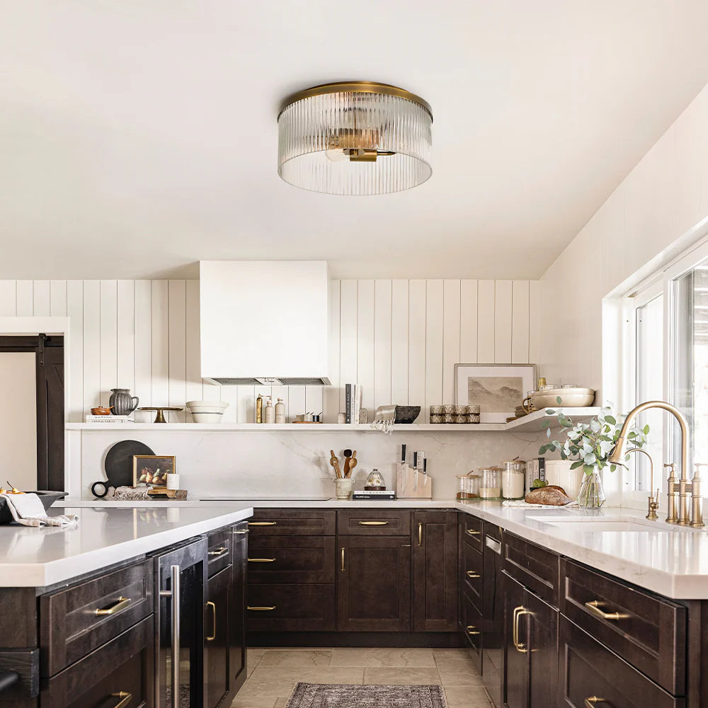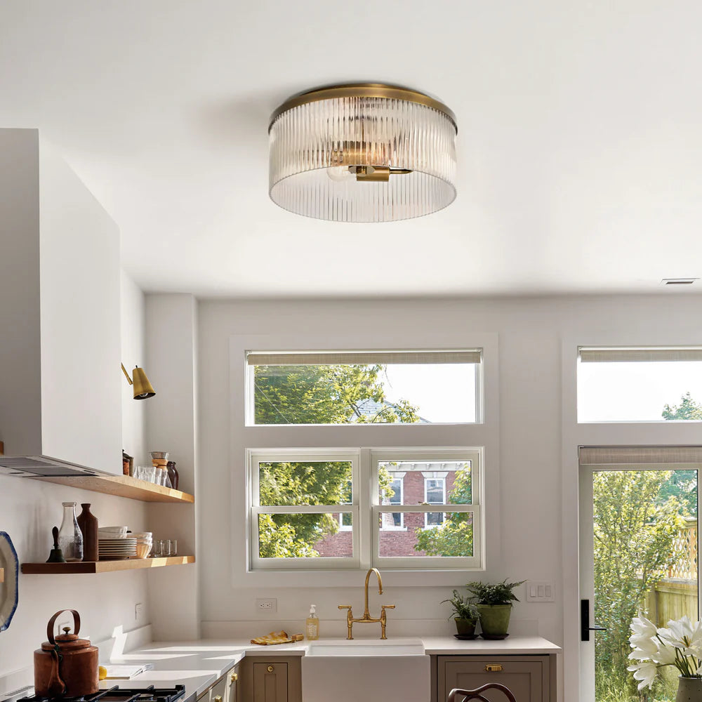 Bring vintage charm and soft ambient light to your space with this ribbed glass flush mount. Its farmhouse-inspired design suits low ceilings and cozy rooms, ideal for kitchens, bedrooms, or living areas